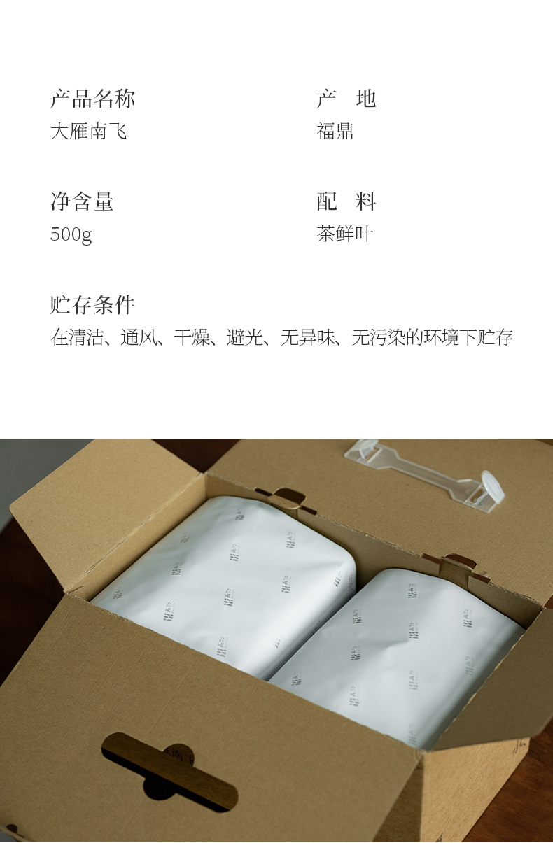 「北路白茶」大雁南飞 福鼎白茶秋寿眉2018散茶六年陈老白茶500g