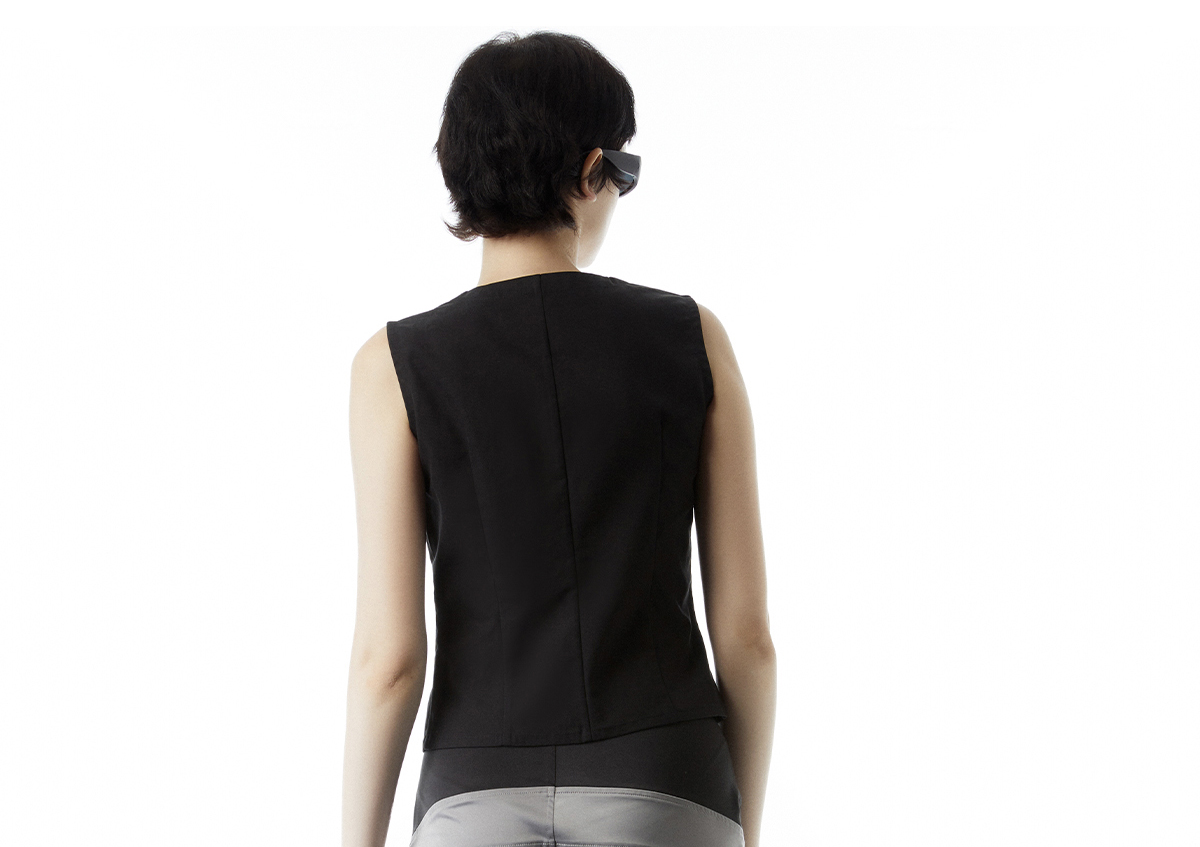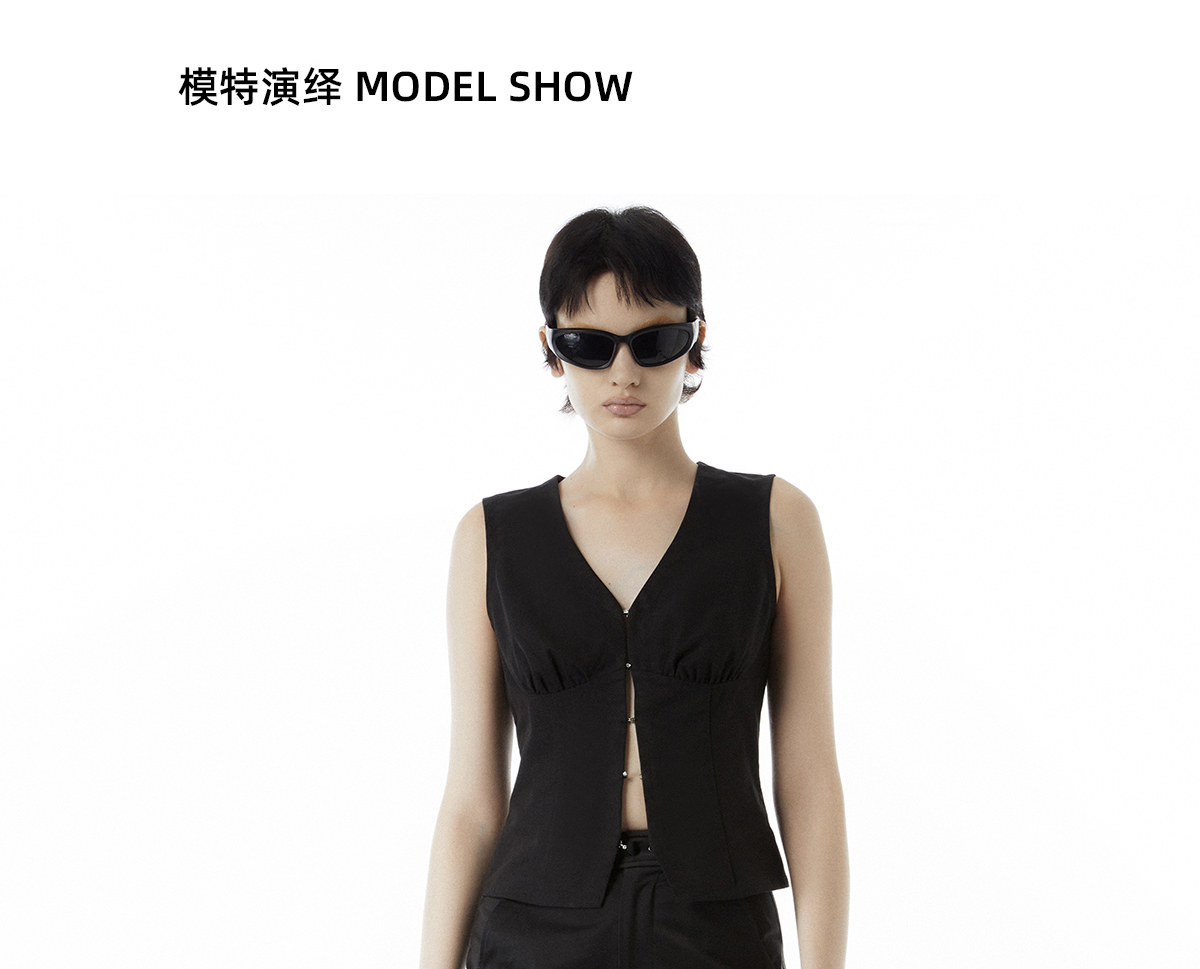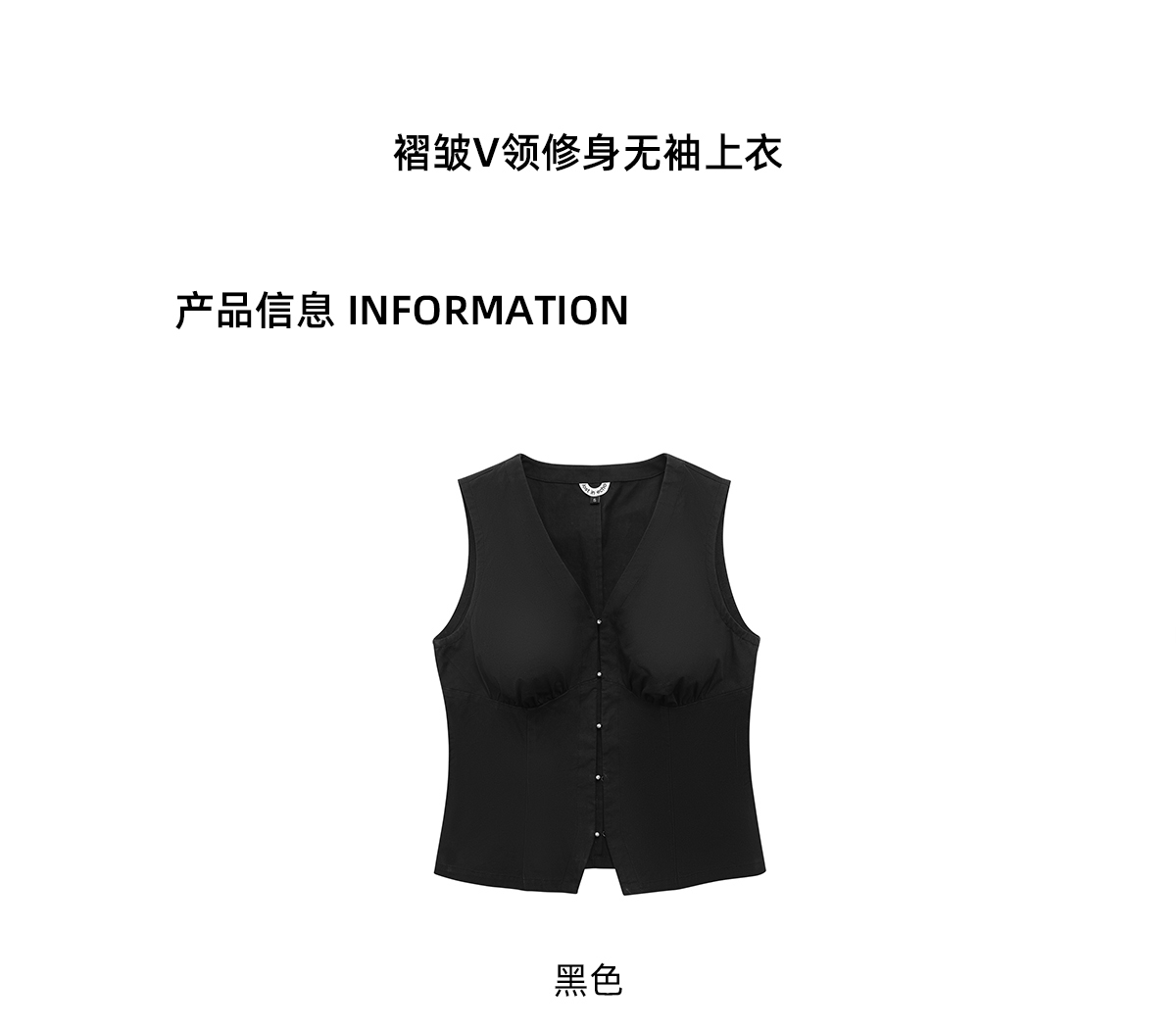 lost in echo设计师品牌Ari系列褶皱V领修身黑色无袖上衣马甲甜酷