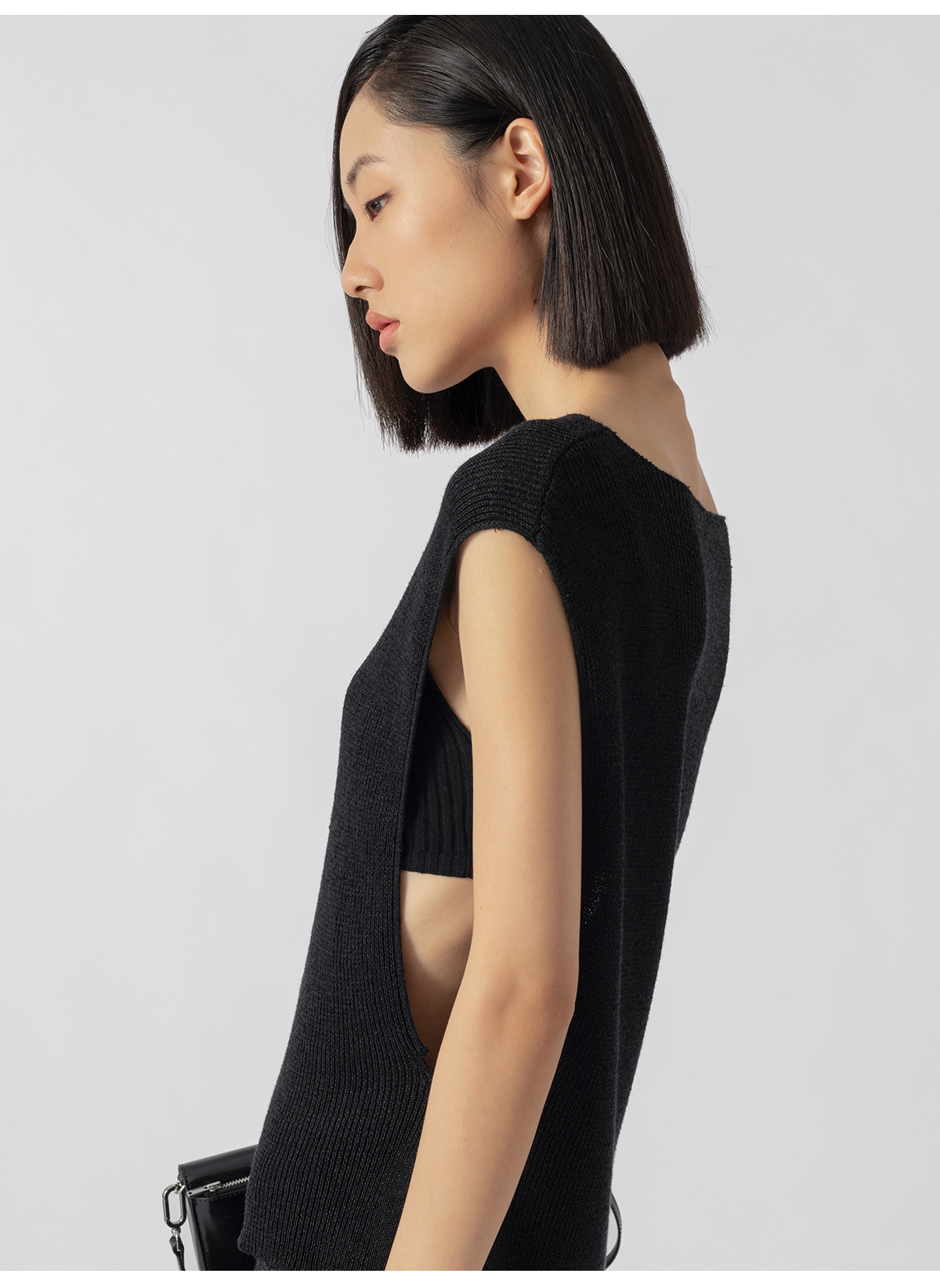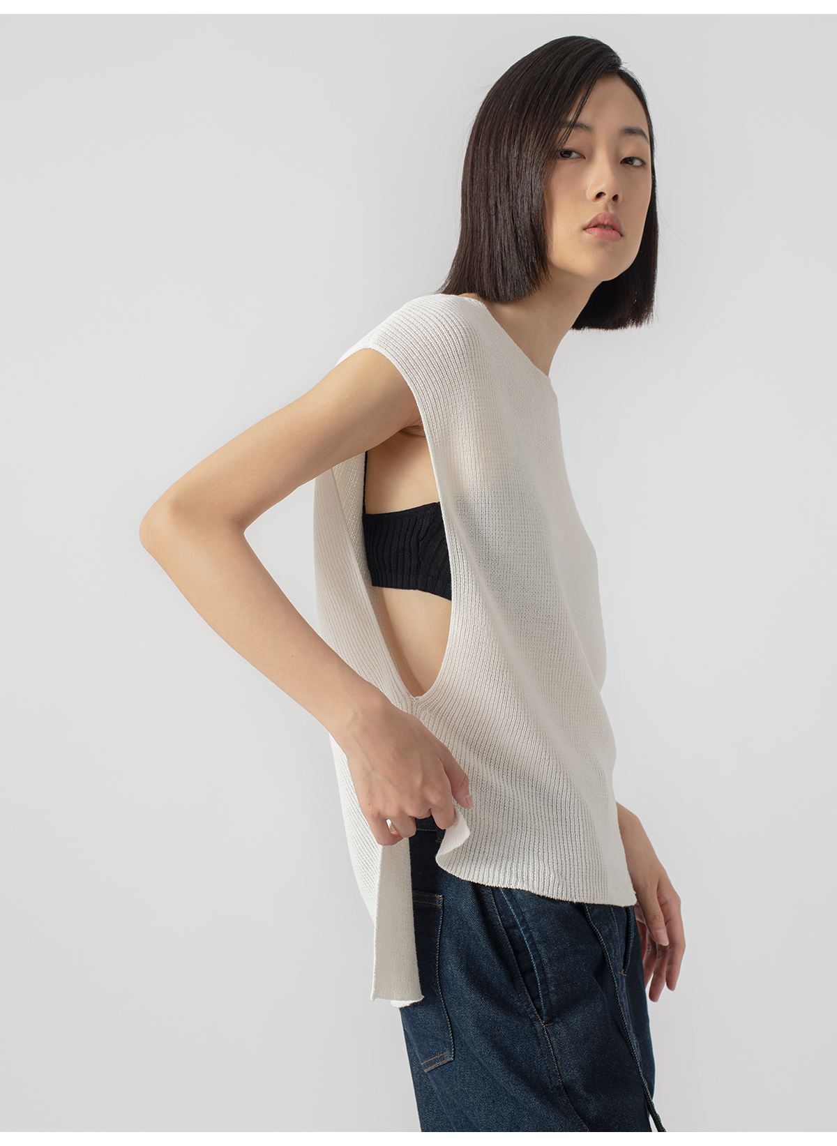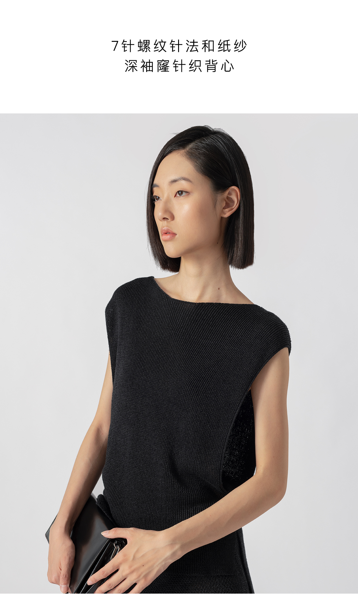322工房重塑经典和纸纱深袖窿针织背心2023春夏叠穿马甲上衣B056