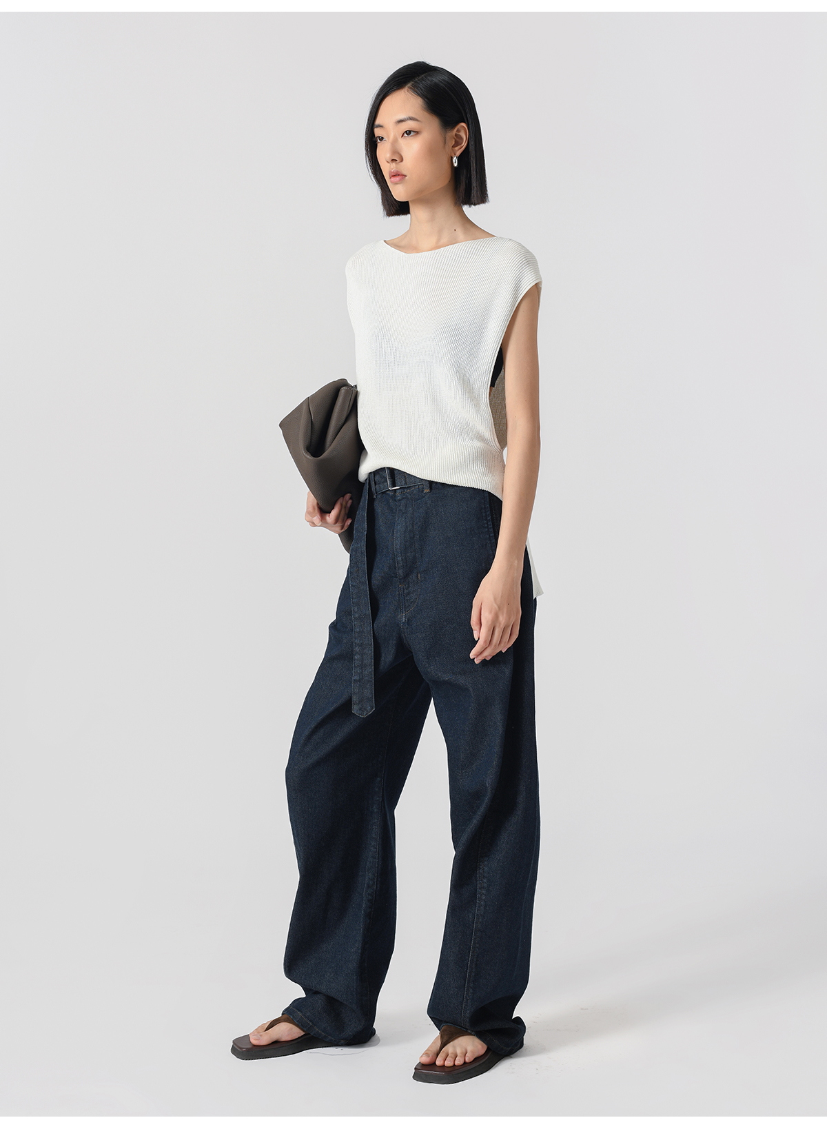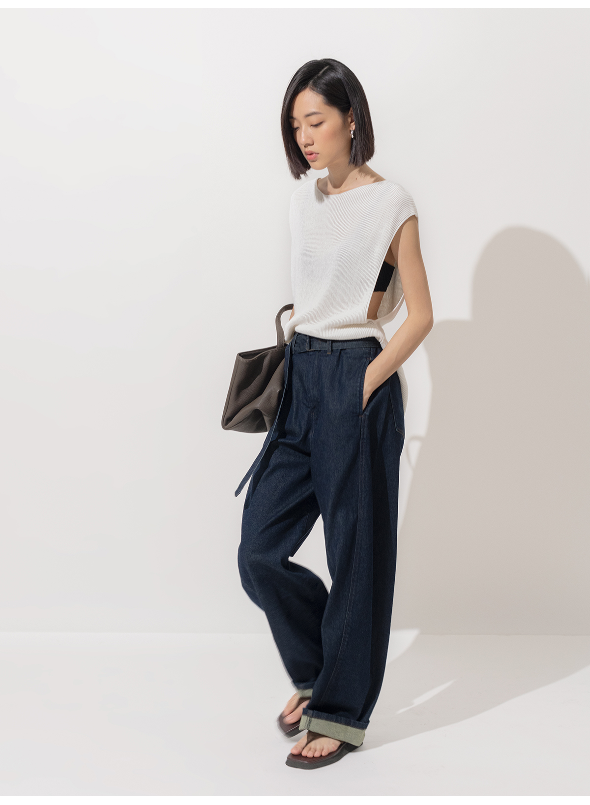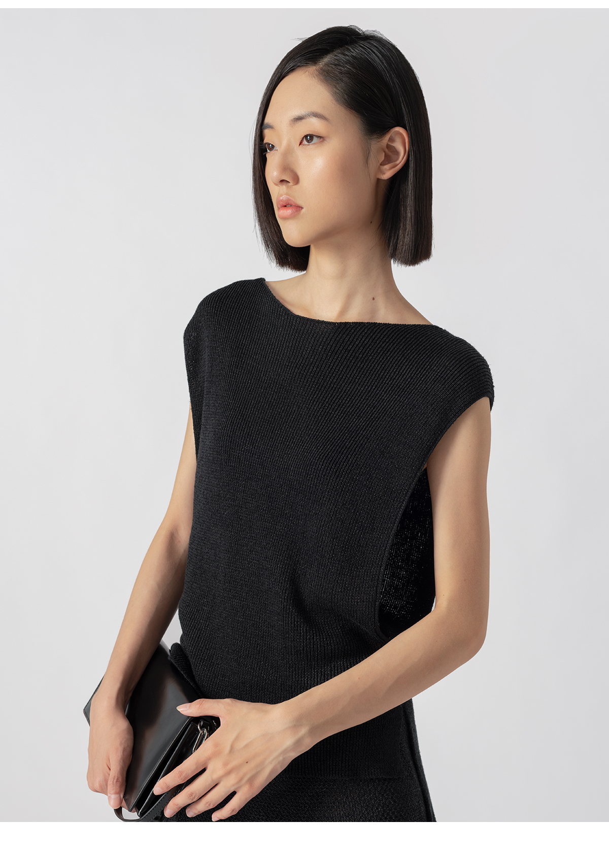 322工房重塑经典和纸纱深袖窿针织背心2023春夏叠穿马甲上衣B056
