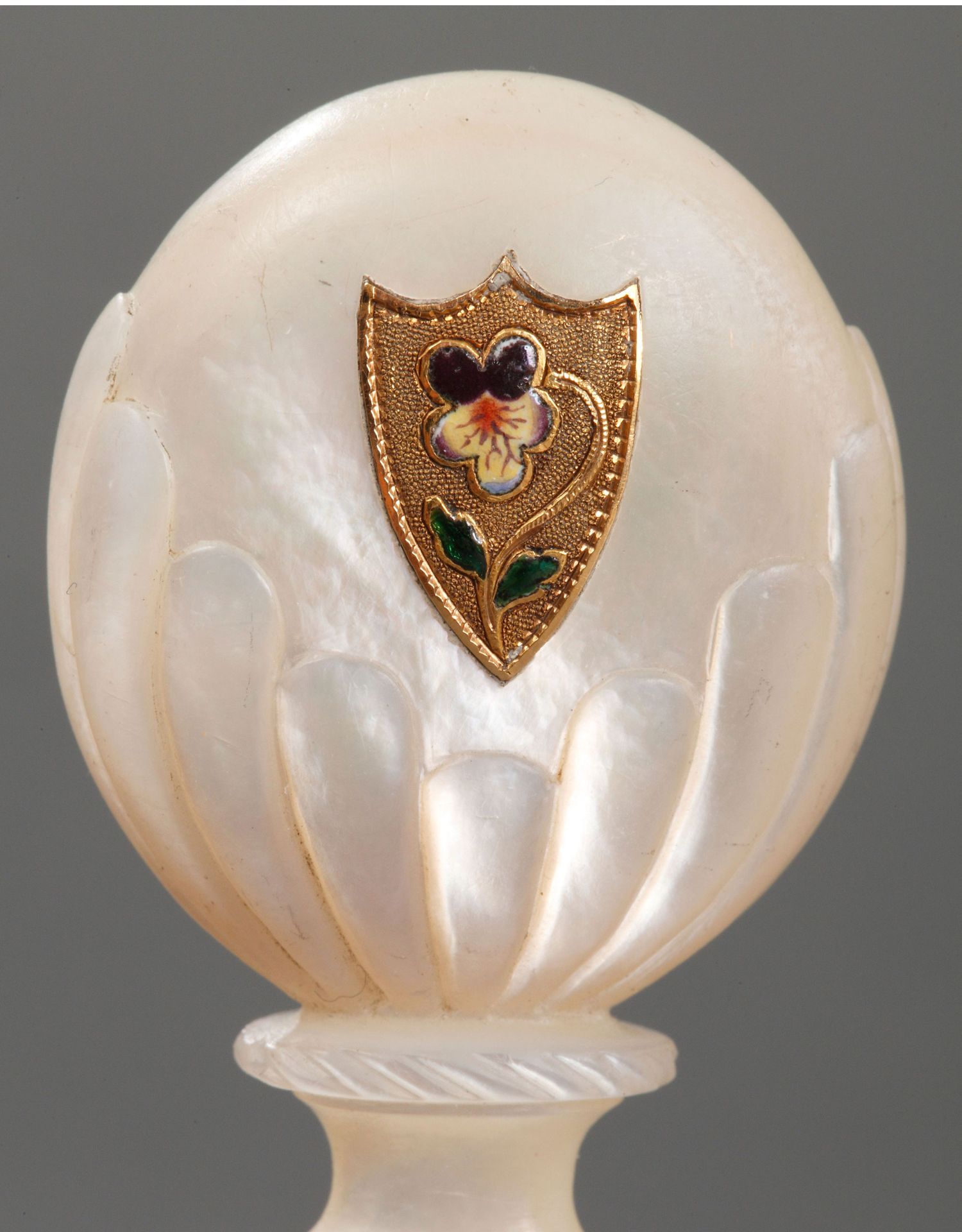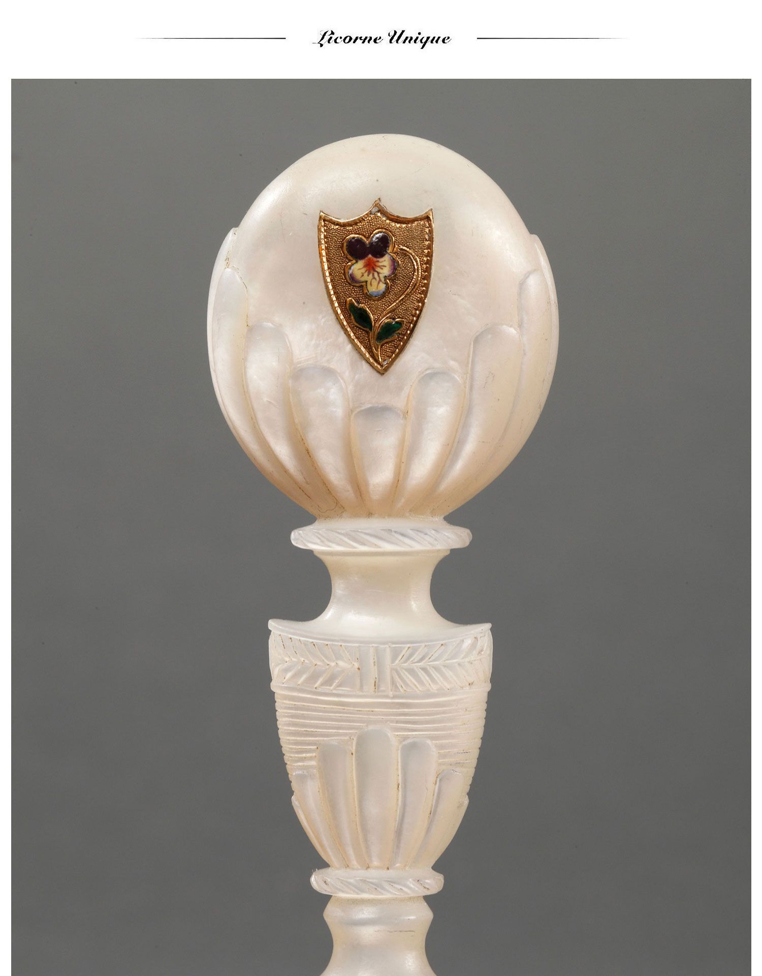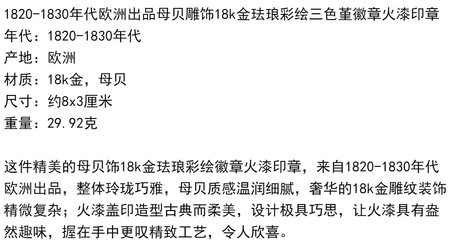 独角鹿西洋古董欧洲母贝雕饰18K金珐琅彩绘三色堇徽章火漆印章