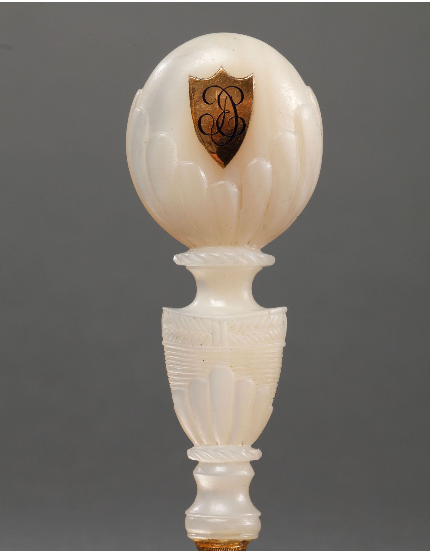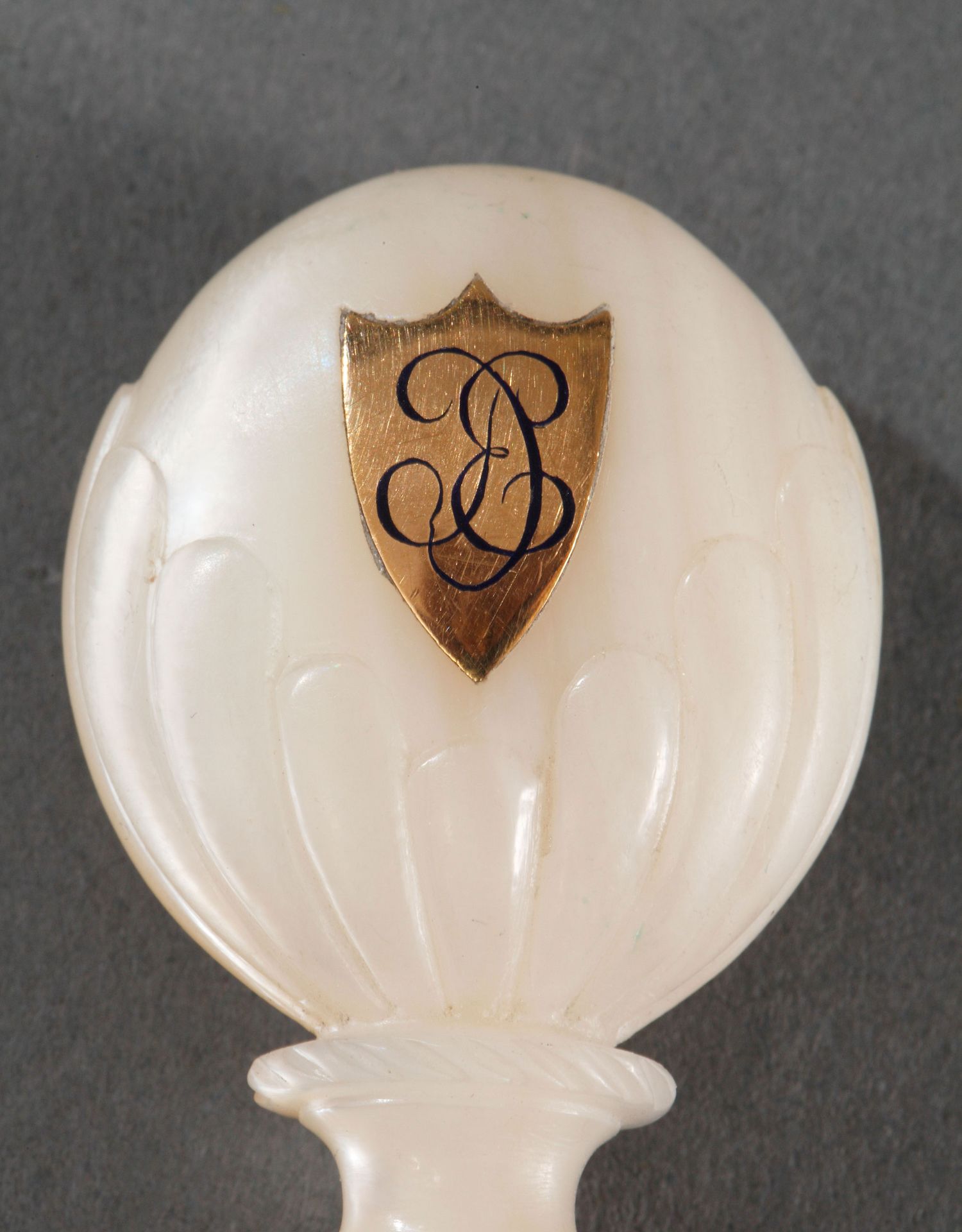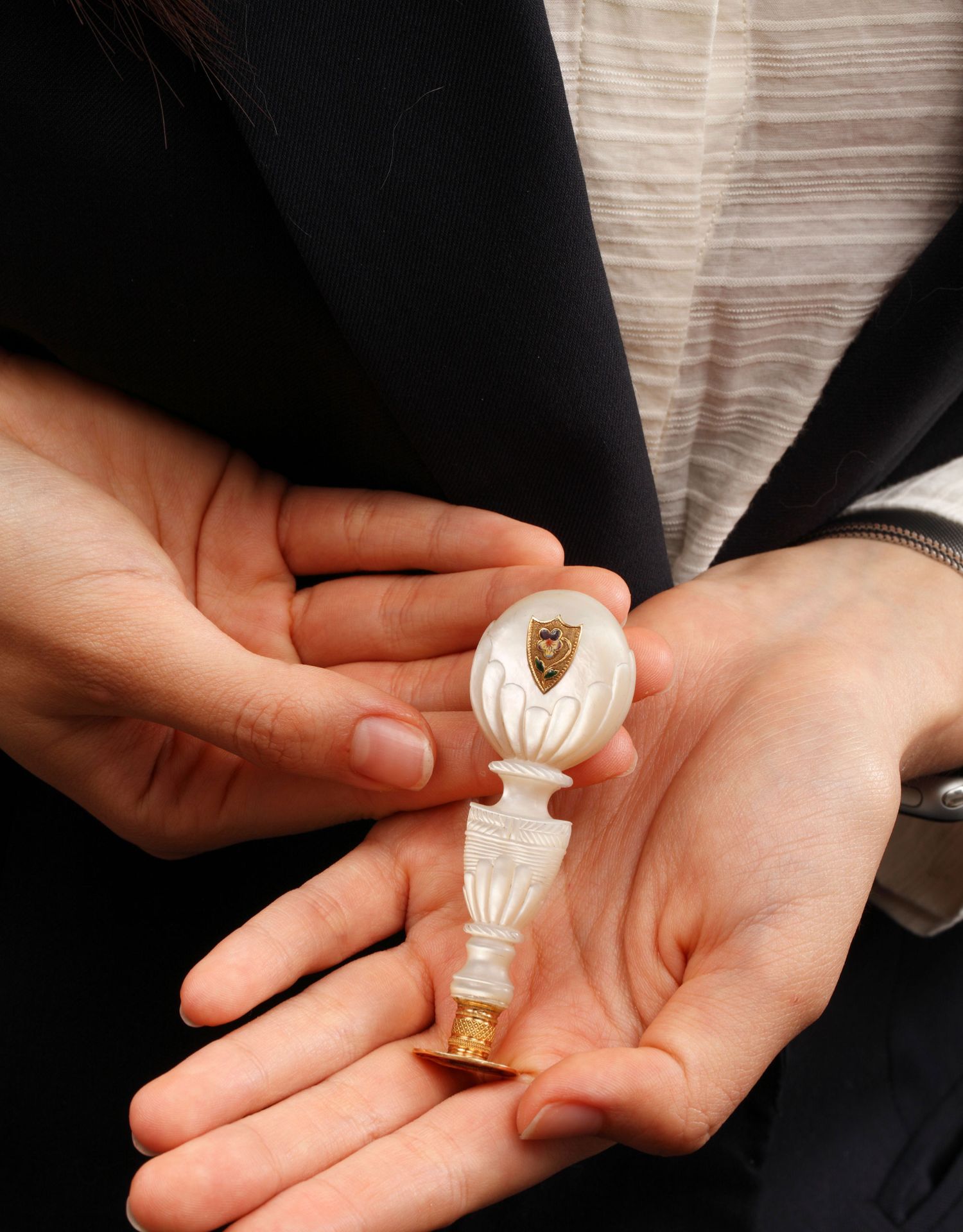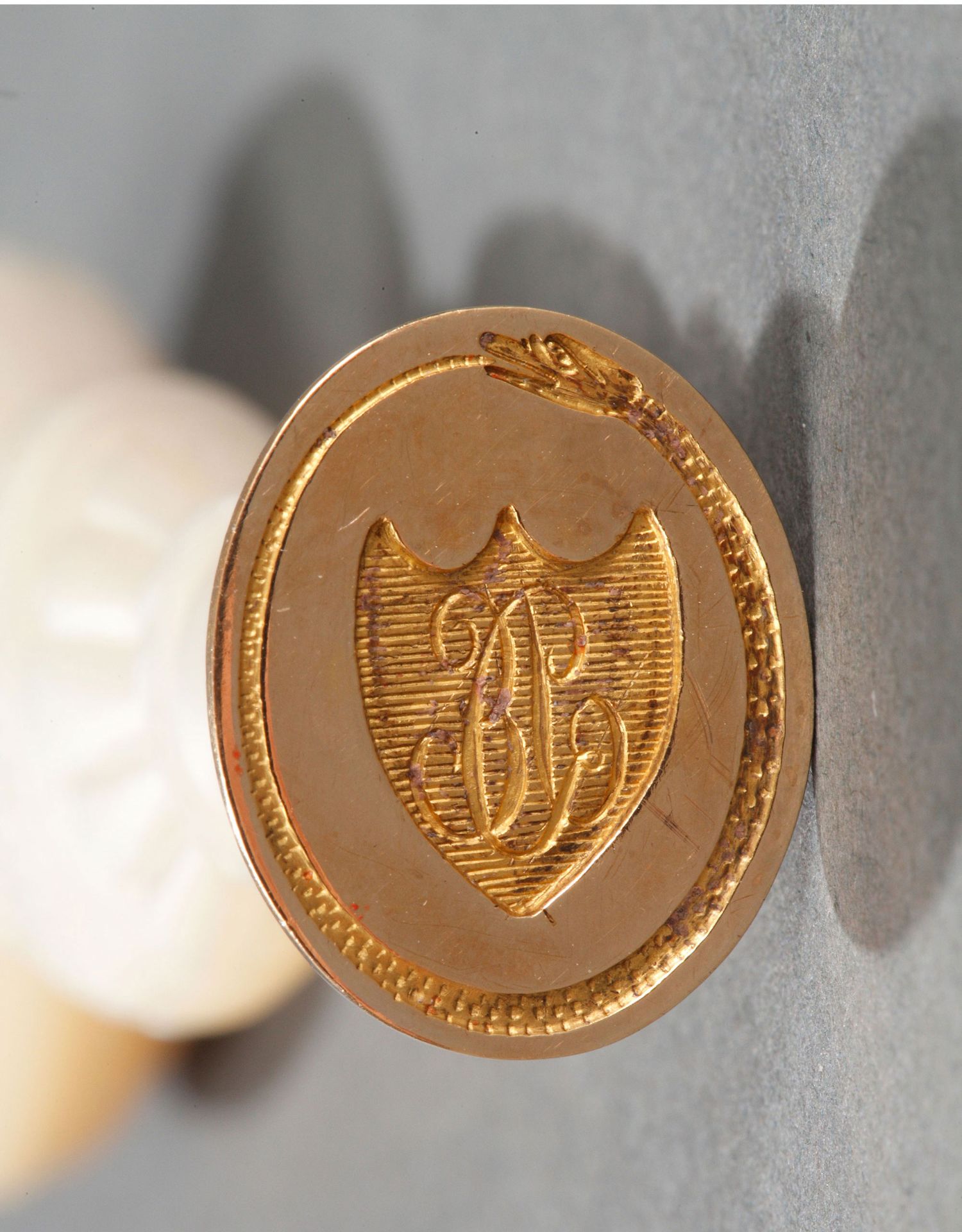 独角鹿西洋古董欧洲母贝雕饰18K金珐琅彩绘三色堇徽章火漆印章
