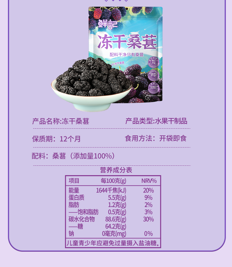 鲜记冻干桑葚80g