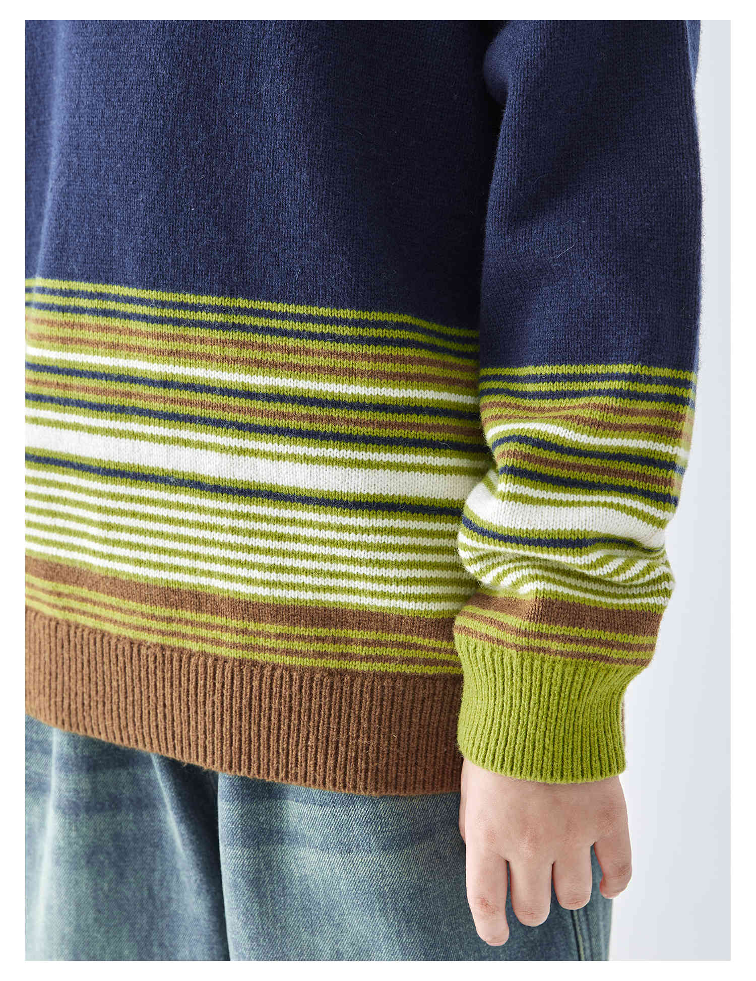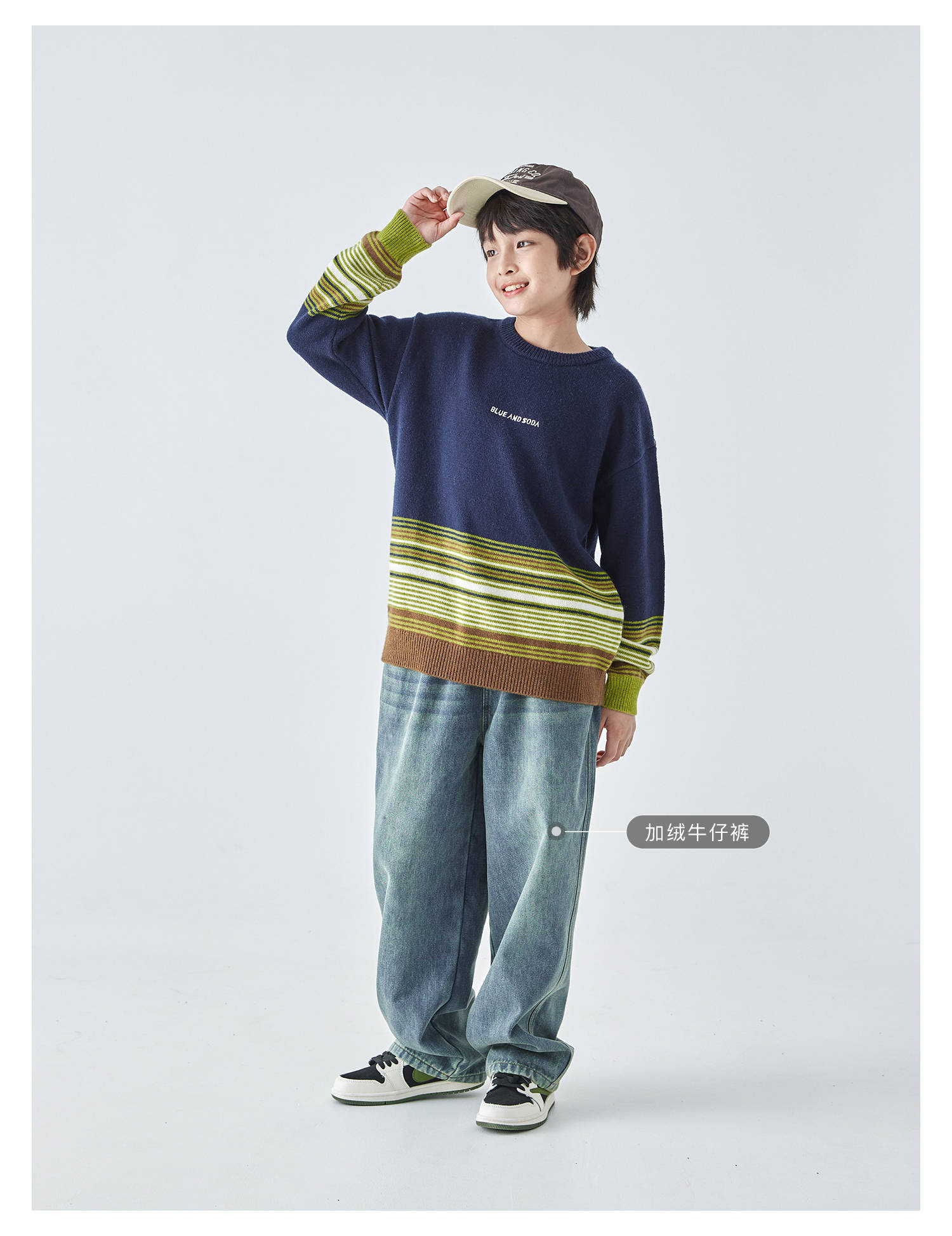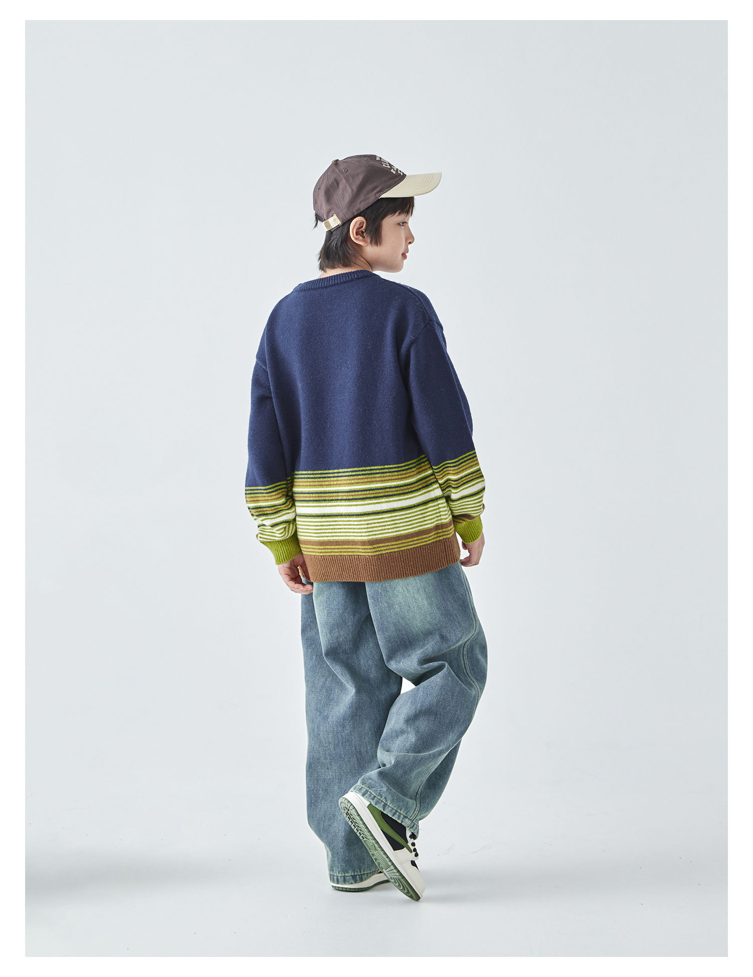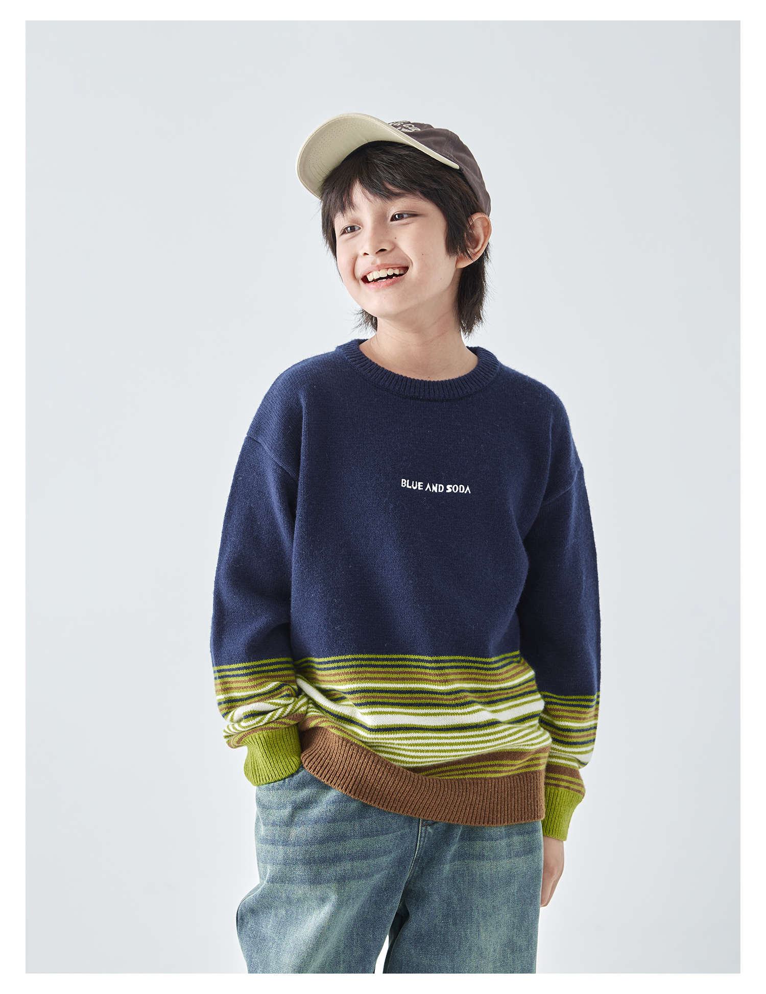 蓝汽水25年秋冬季新款亲子中大男童渐变条纹毛衣简约撞色针织衫