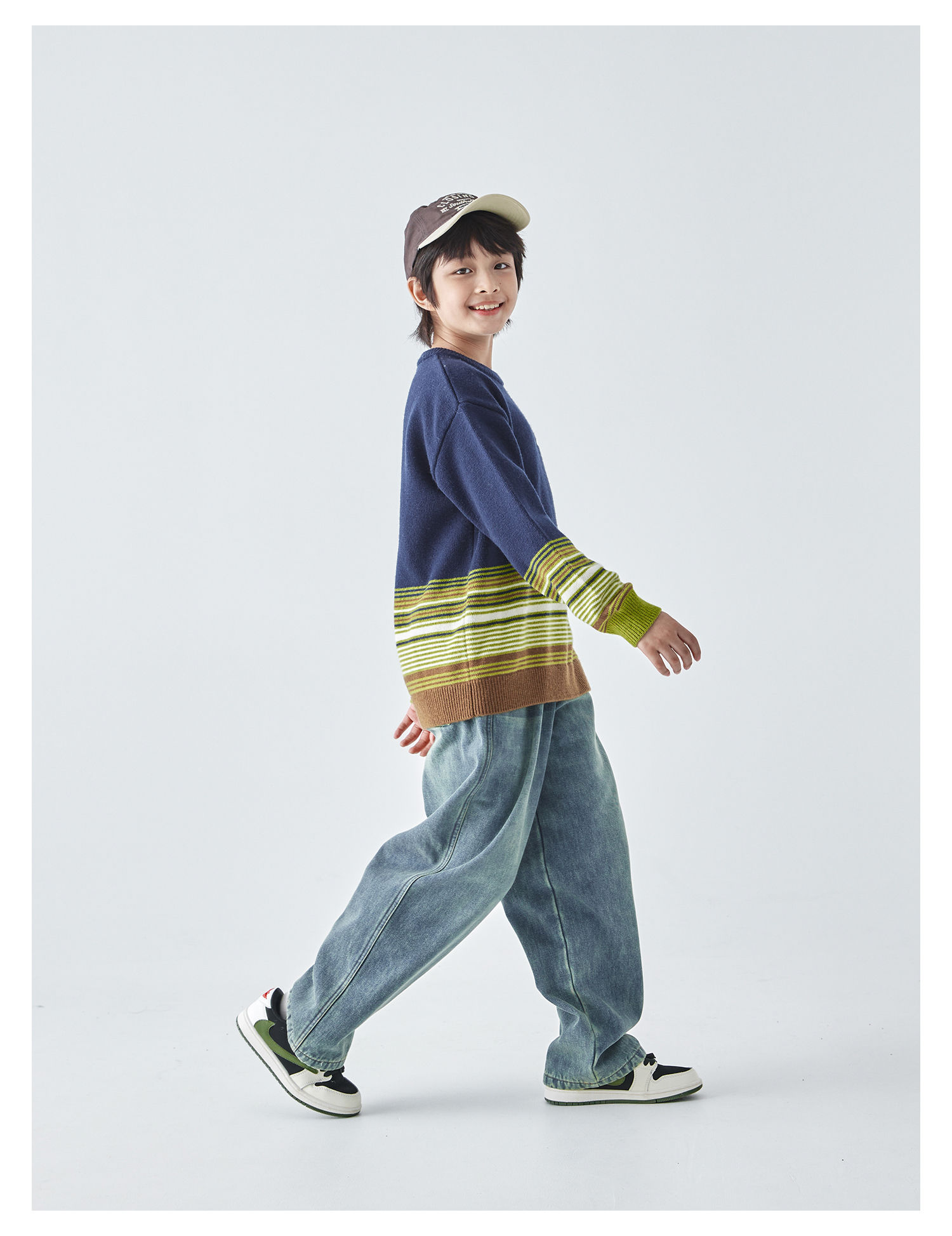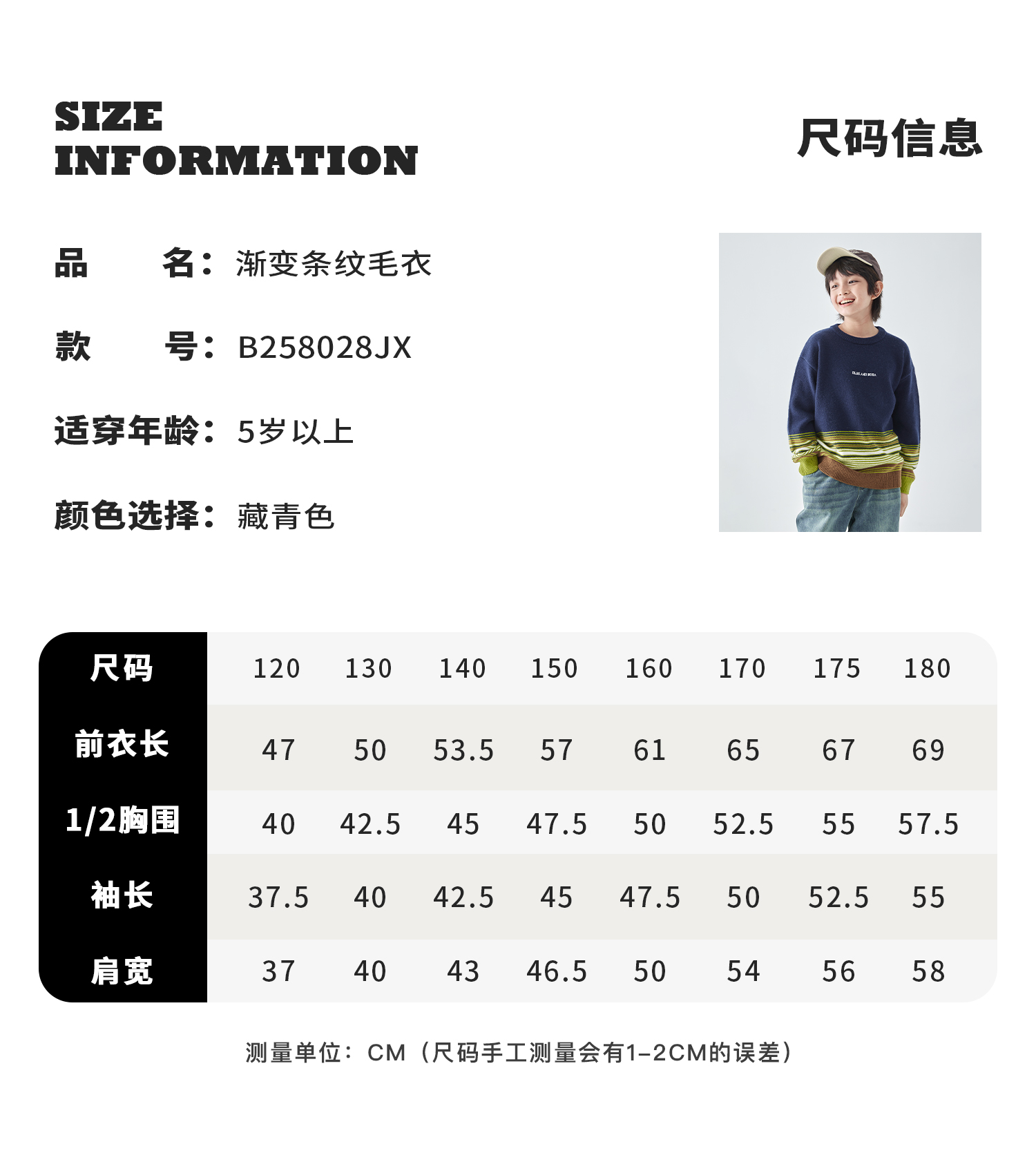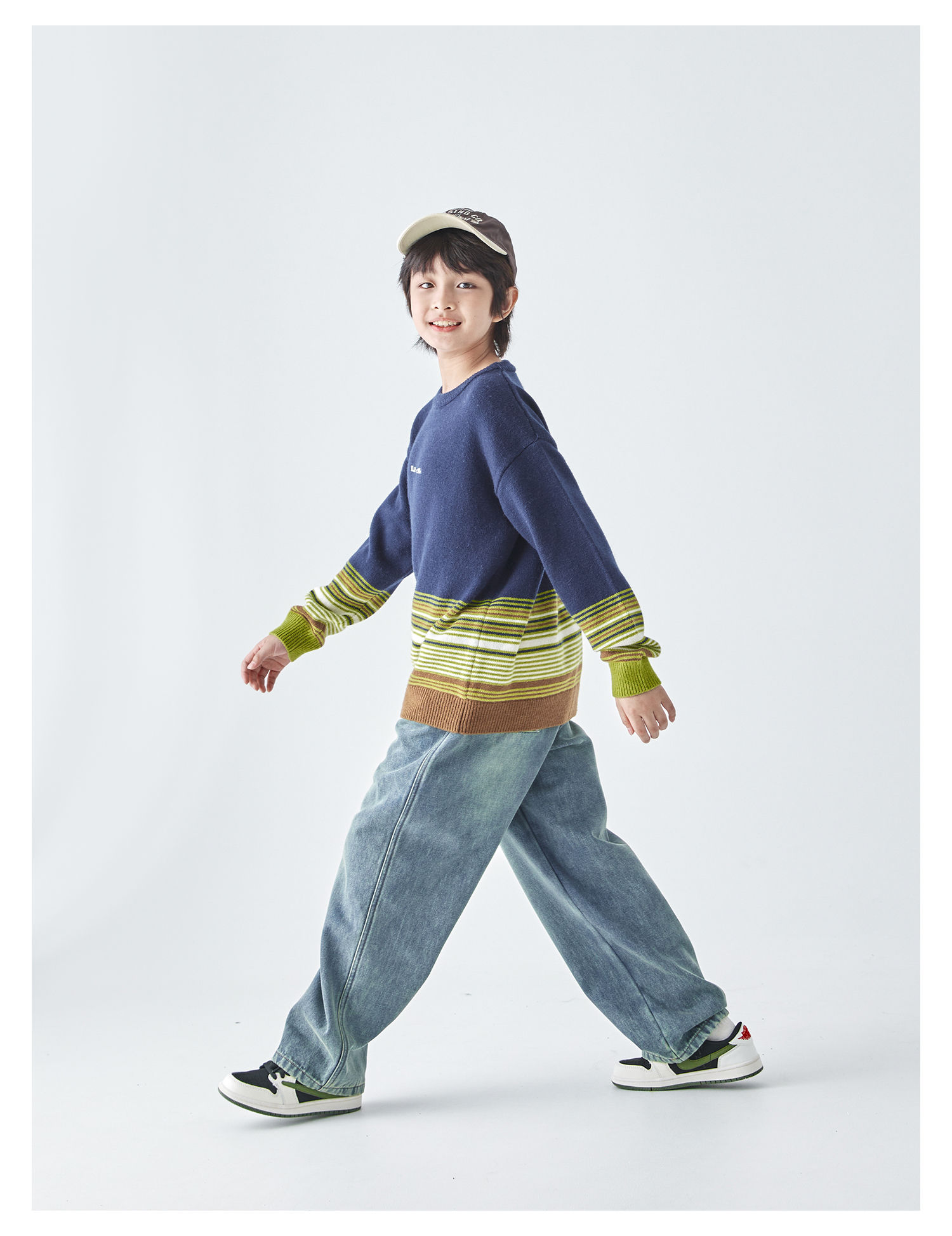 蓝汽水25年秋冬季新款亲子中大男童渐变条纹毛衣简约撞色针织衫