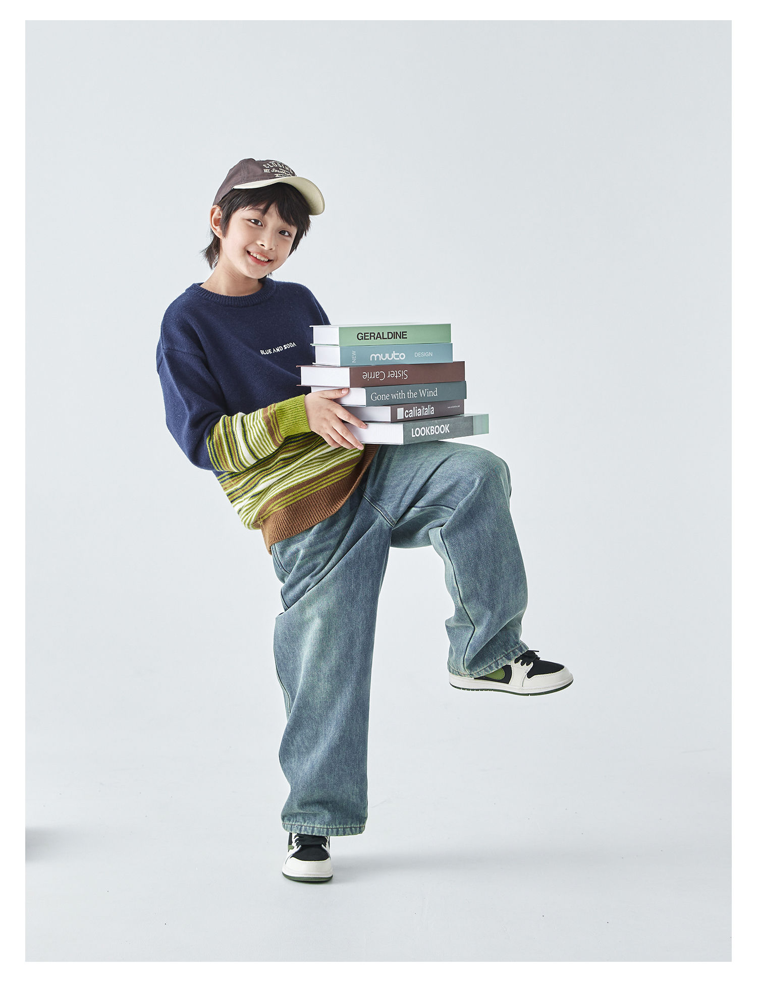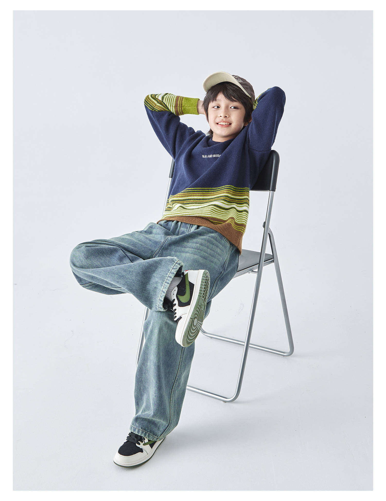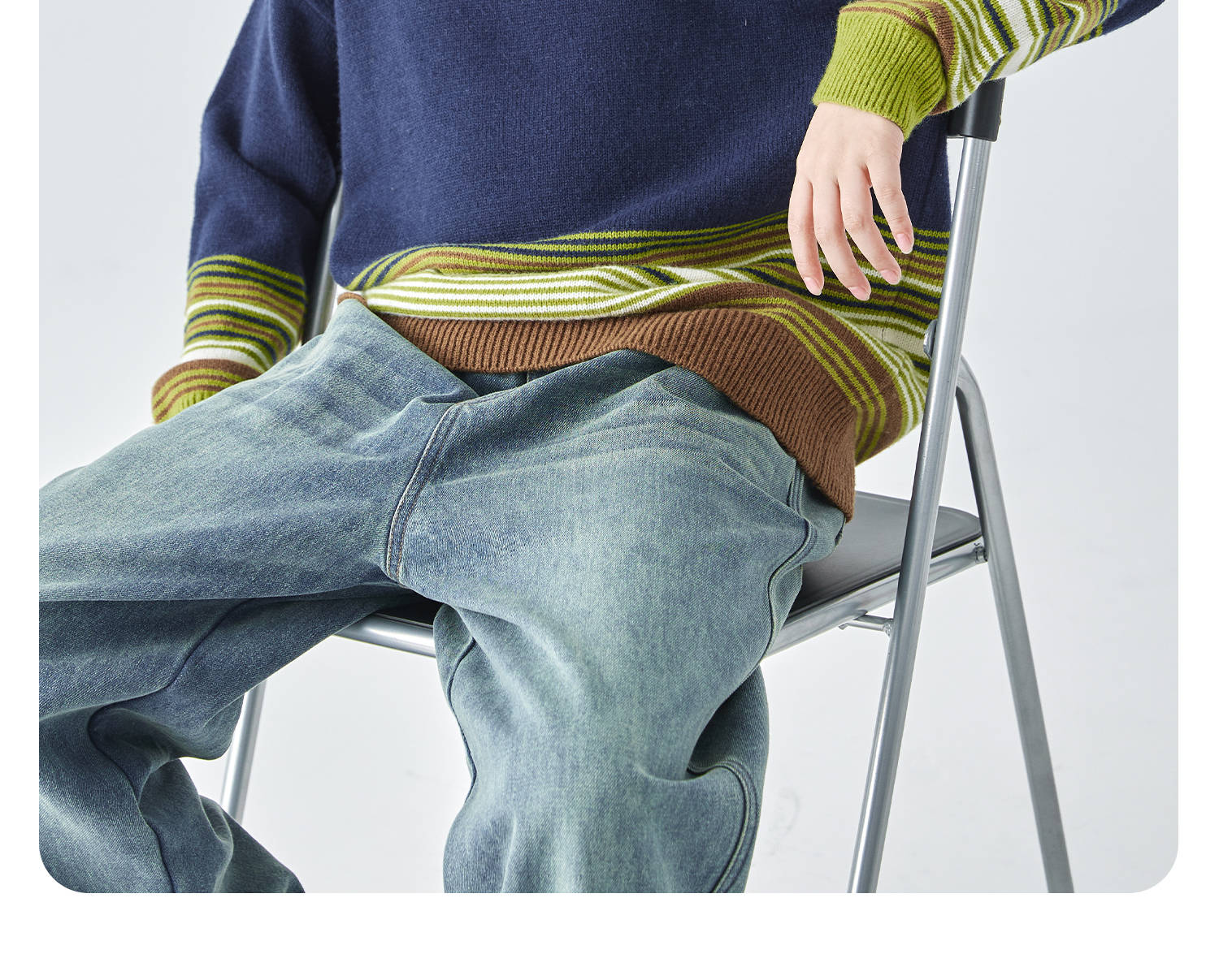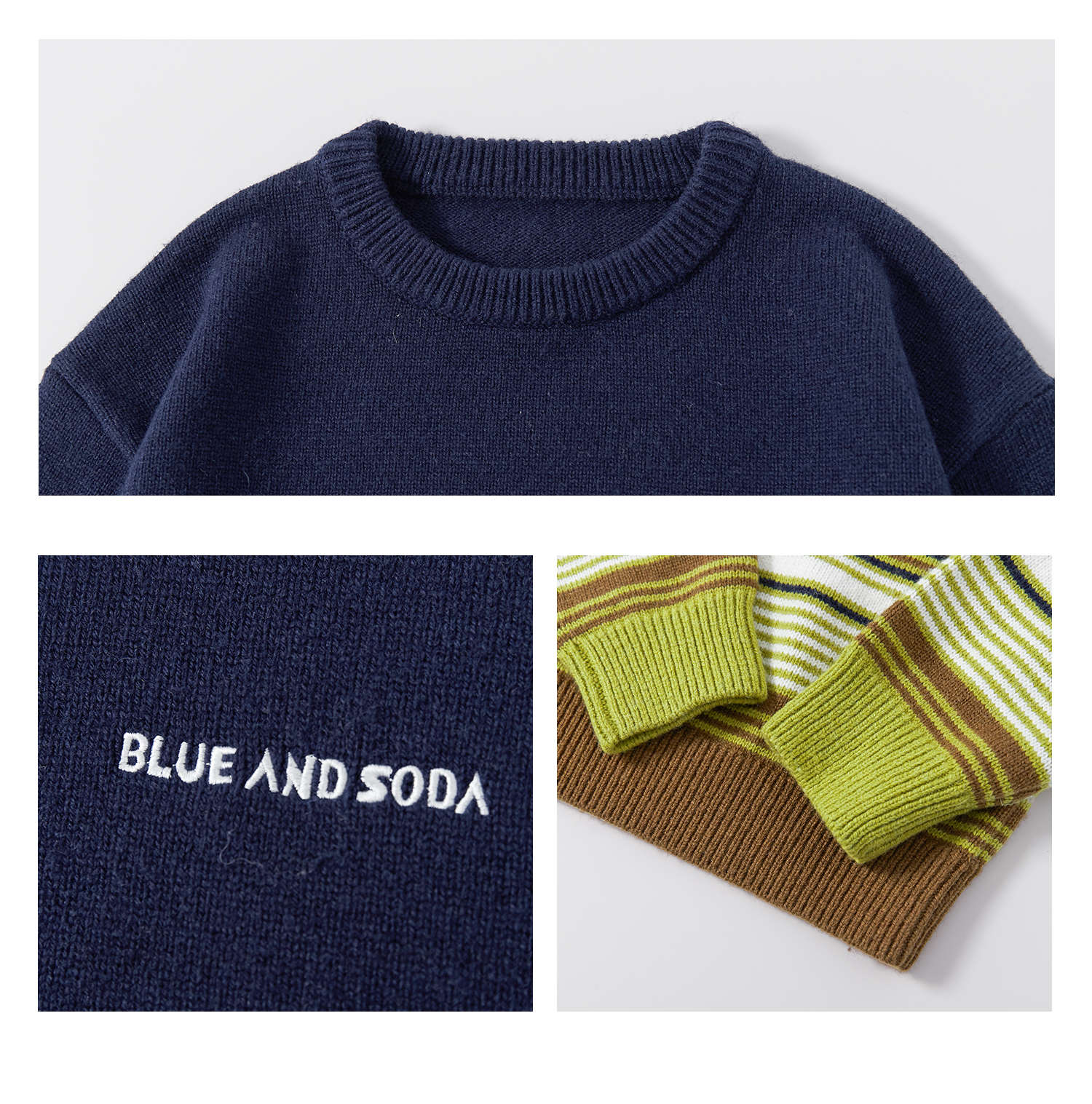蓝汽水25年秋冬季新款亲子中大男童渐变条纹毛衣简约撞色针织衫