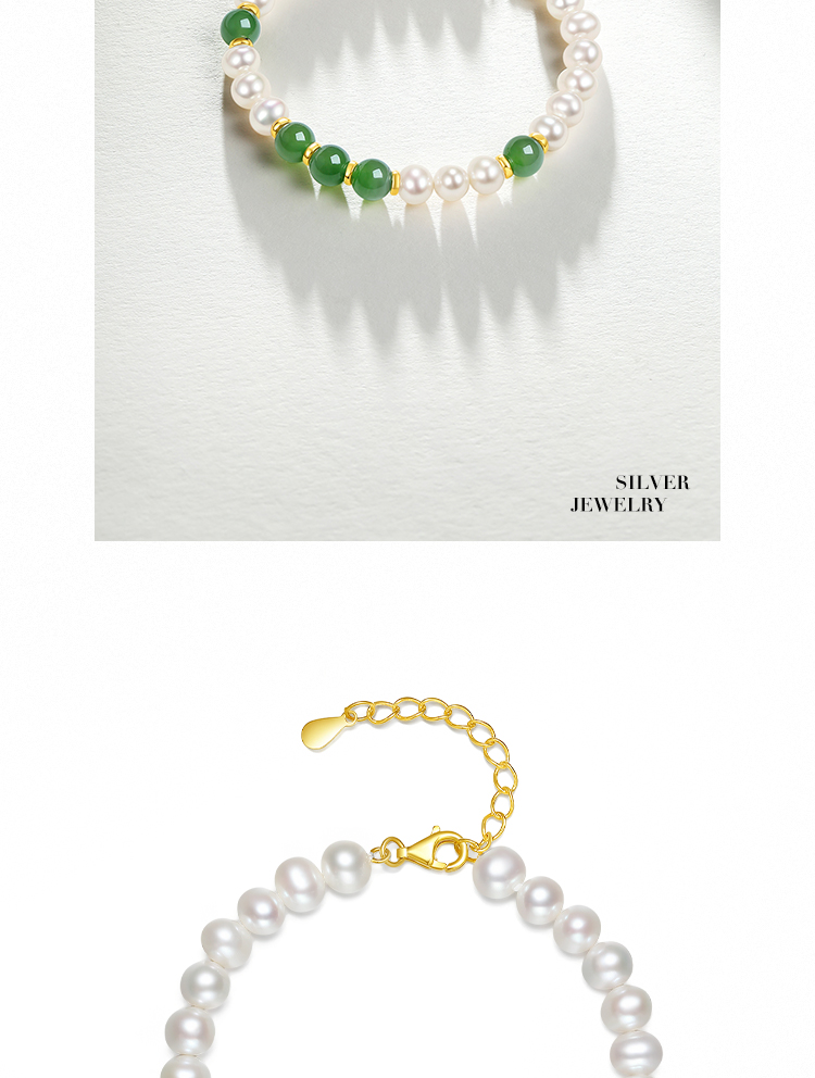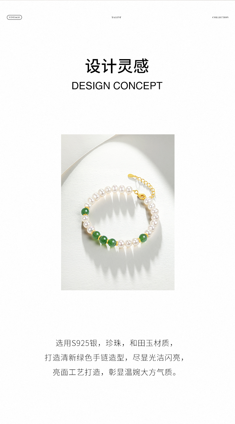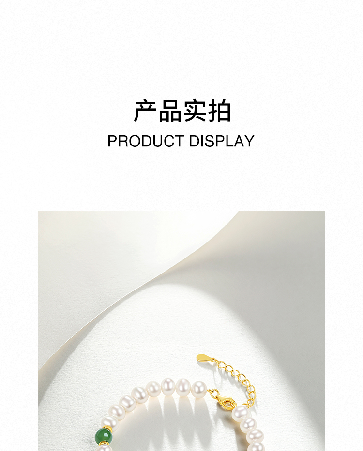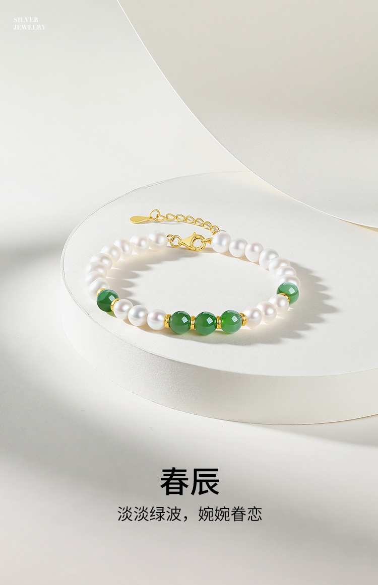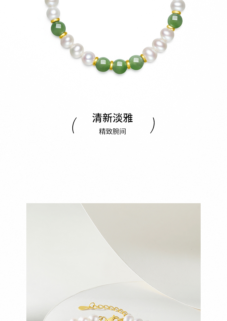 周六福淡水珍珠手链女S925银和田碧玉手饰优雅送女友送女友礼物