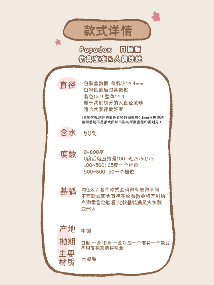 Papadox旗下 ·仿真宝宝&人偶娃娃|14.4mm白狮参考着色大直径|日抛 一盒十片装