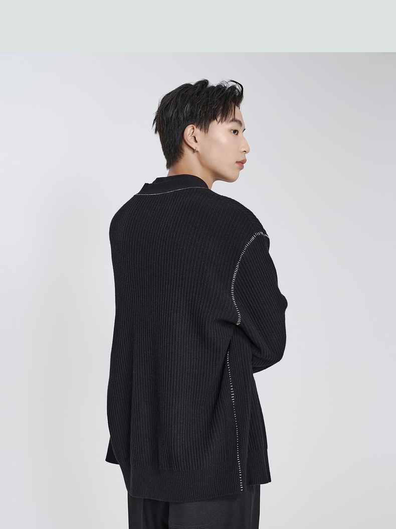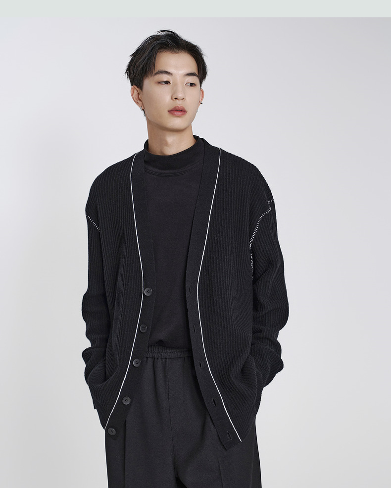 MODE COMMUTER | MC冬季高支细腻纱线抽绳开襟毛衫男MCE130060D