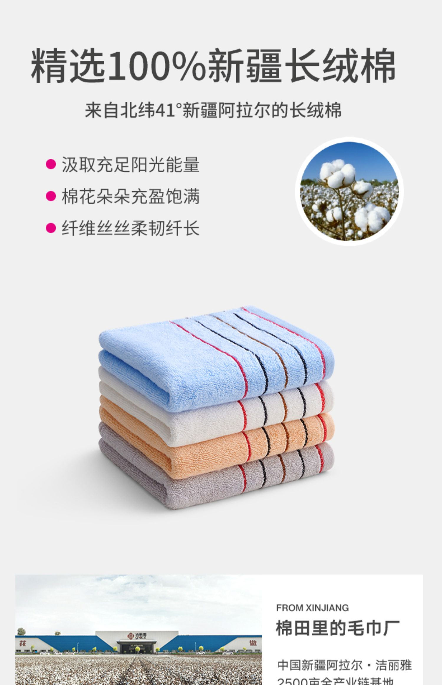 洁丽雅毛巾4条装 纯棉加厚洗脸巾吸水 多规格选择
