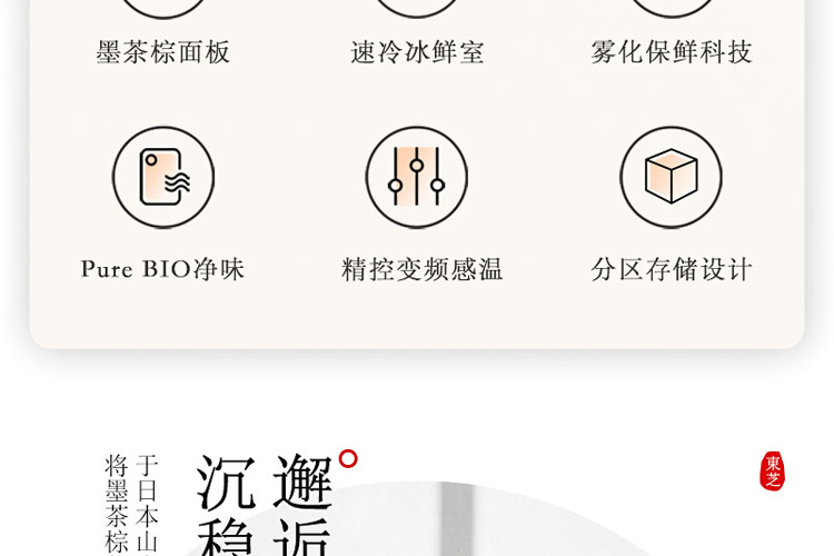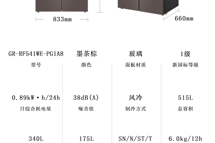 东芝(Toshiba)515升 速冷冰鲜 雾化保鲜 PureBIO空间净味 精控感温 GR-RF541WE-PG1A8墨茶棕