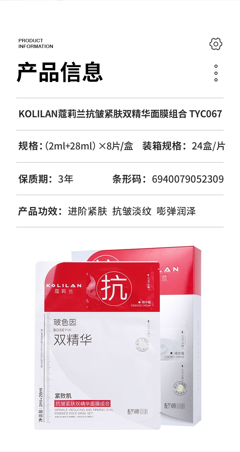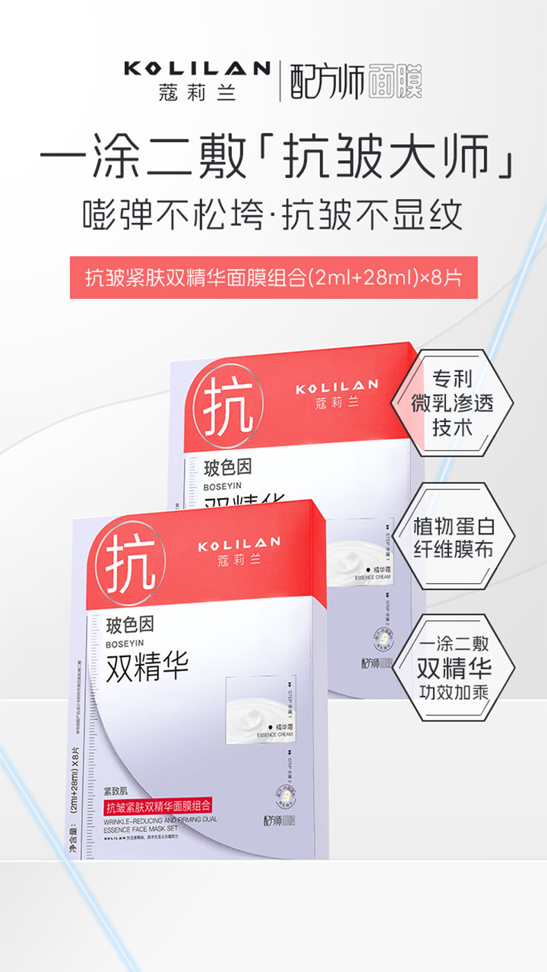 蔻莉兰(配方师系列)抗皱紧肤双精华面膜组合(2ml+28ml)×8片 TYC067