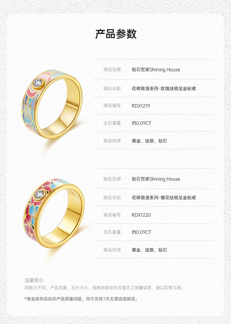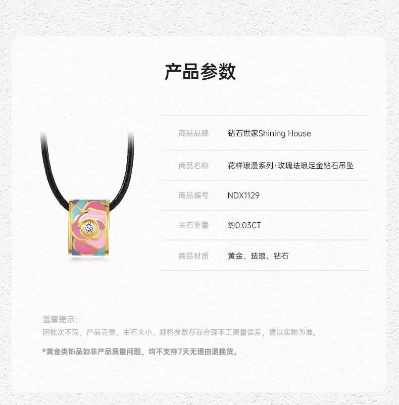 【玫瑰】【花样琅漫】钻石世家 花样琅漫·玫瑰系列 足金镶钻挂坠 足金镶钻戒指 足金耳饰 以德国黄金工艺与手工拍平珐琅结合【不含链子】【黄金产品不支持无理由退换货】预计3天发货