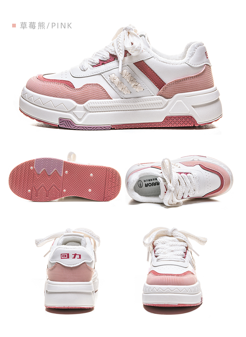 回力秋冬季草莓熊白色休闲鞋季百搭学生潮流加绒麦穗低帮运动板鞋