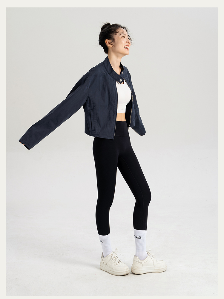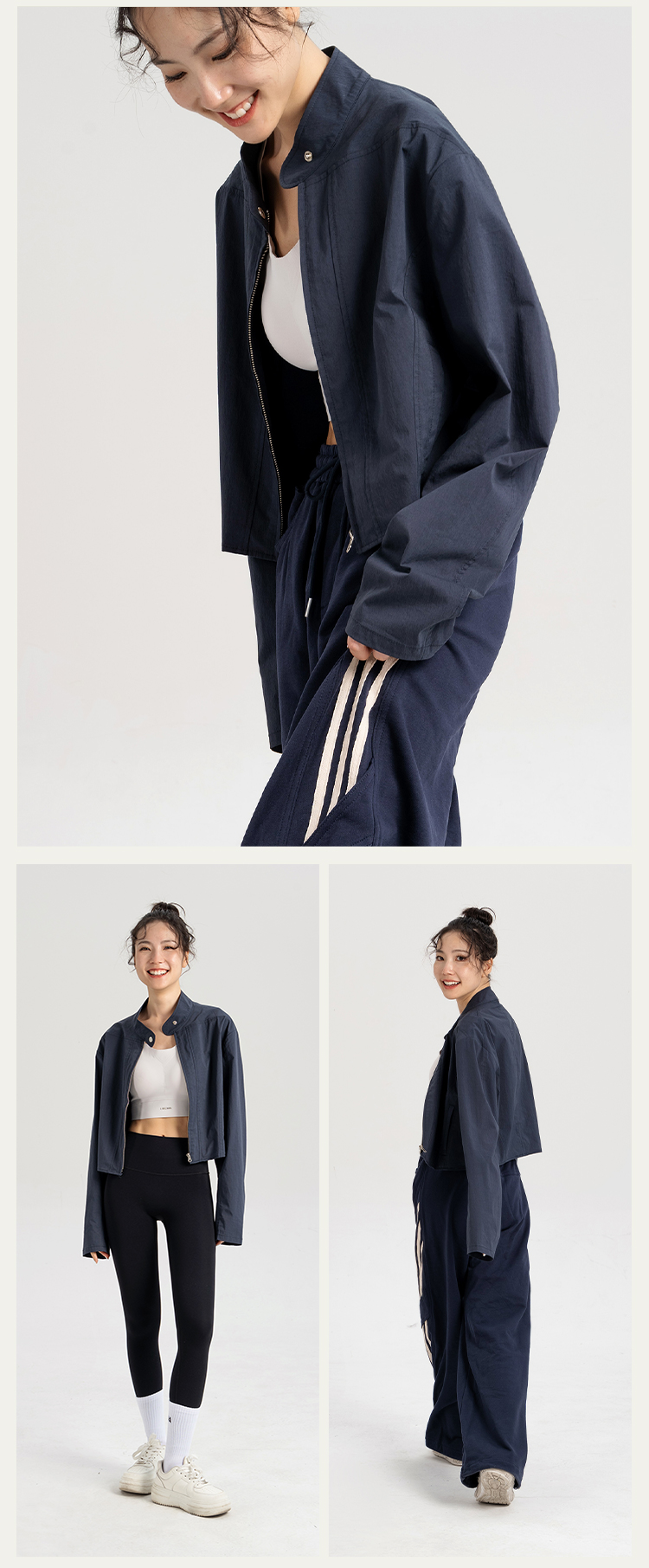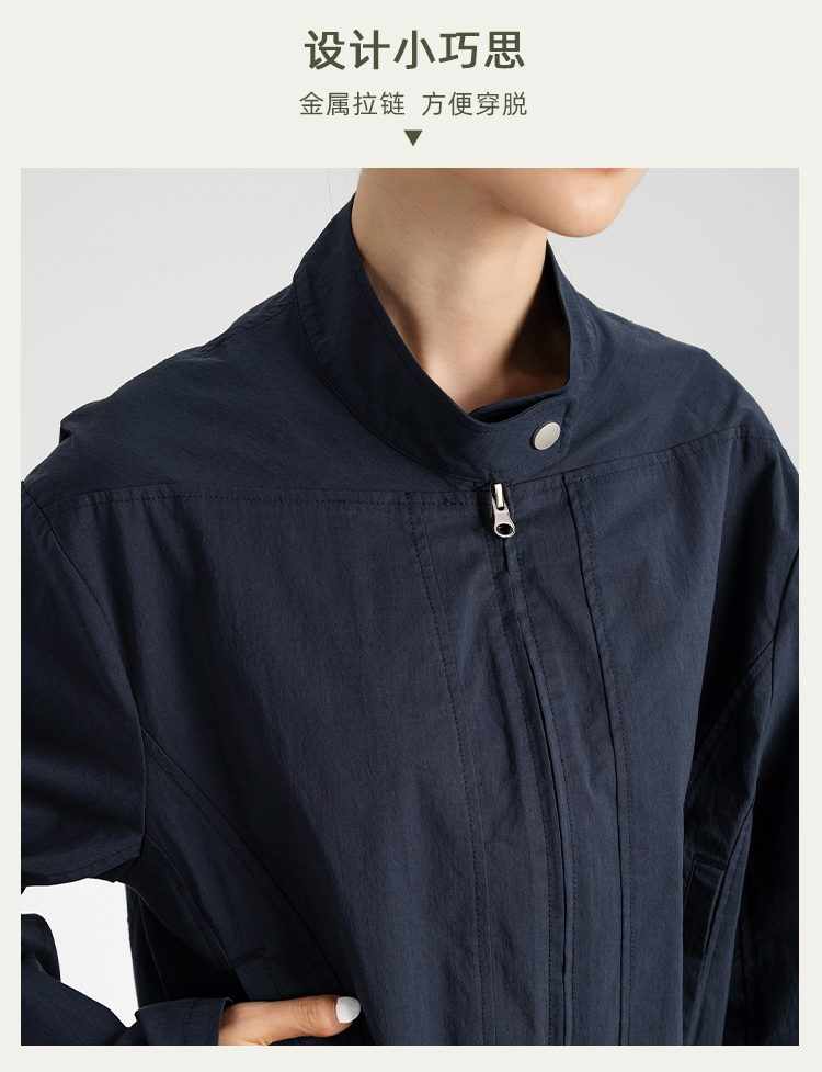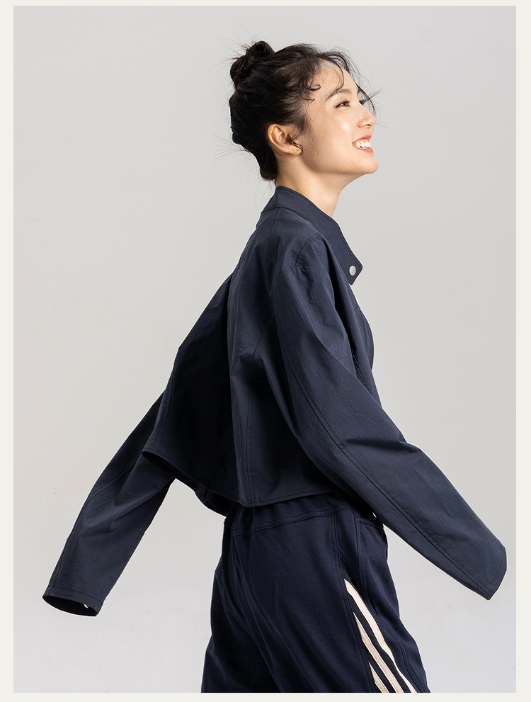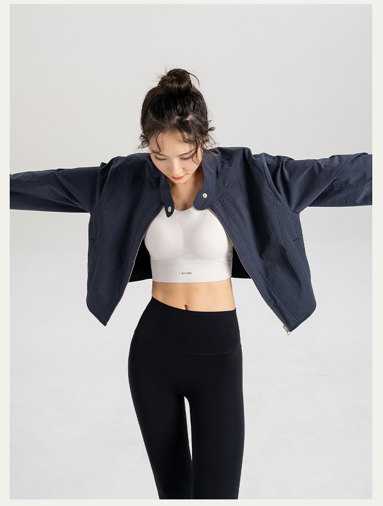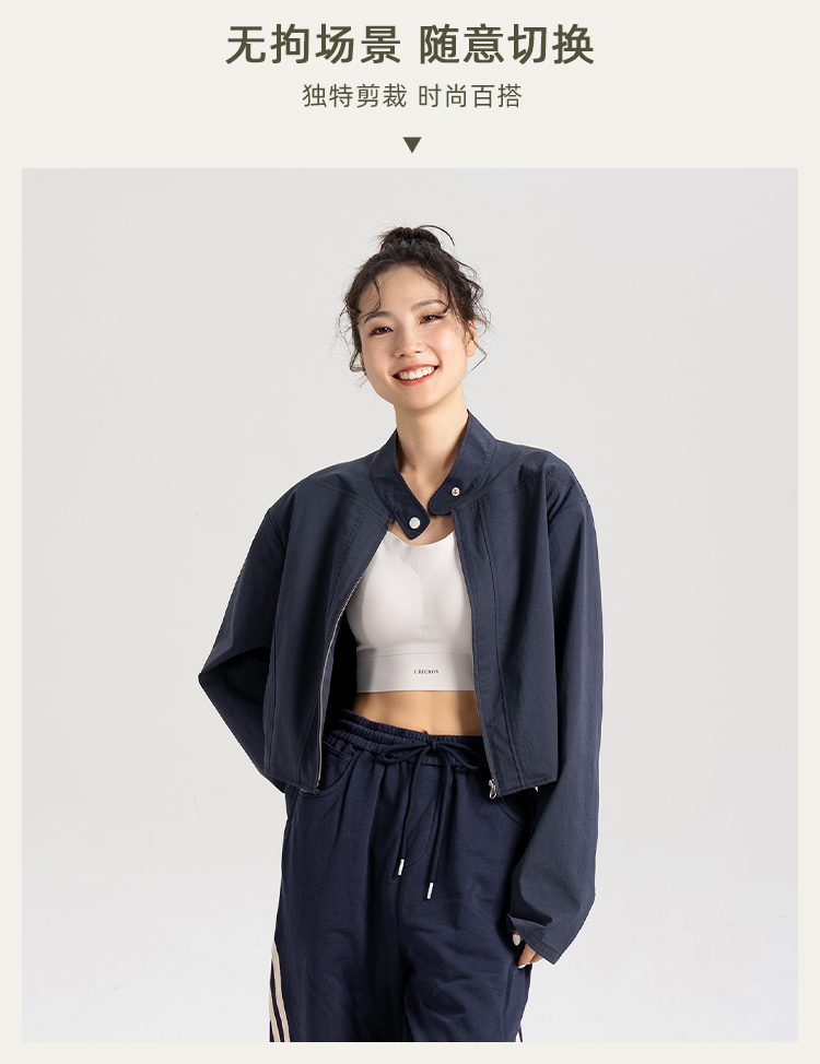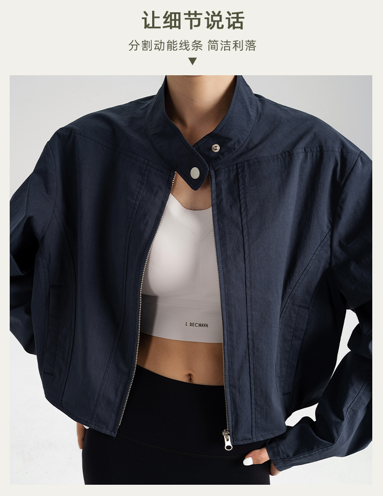 L RECNAVA 小立领带拉链宽松上衣 机能风工装外套 高腰款显腿长