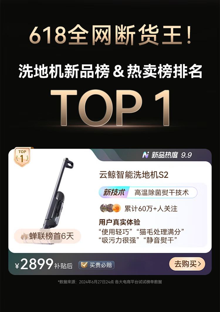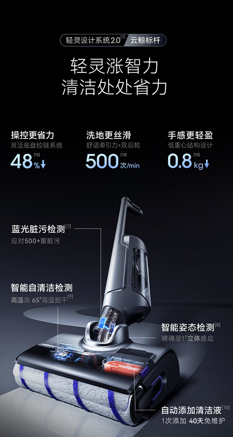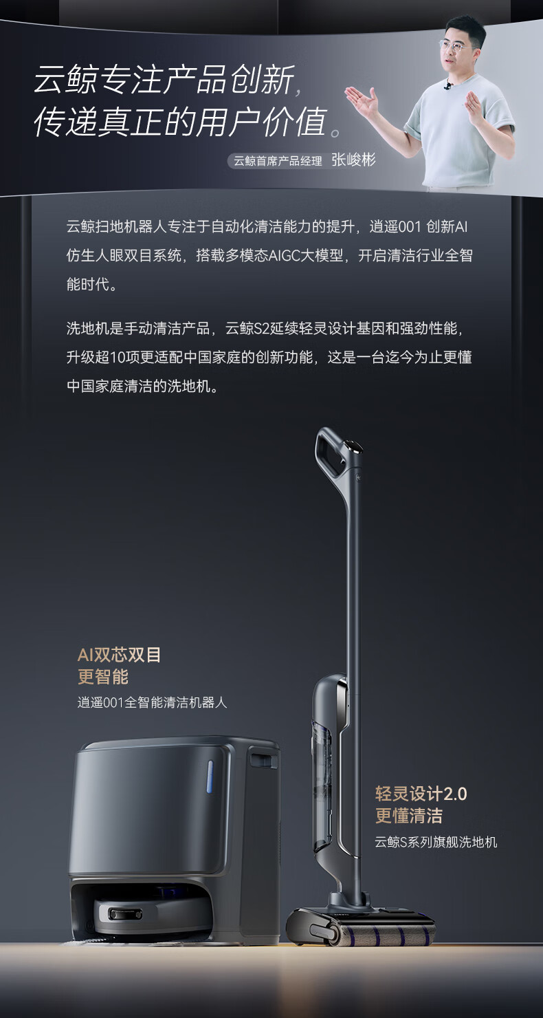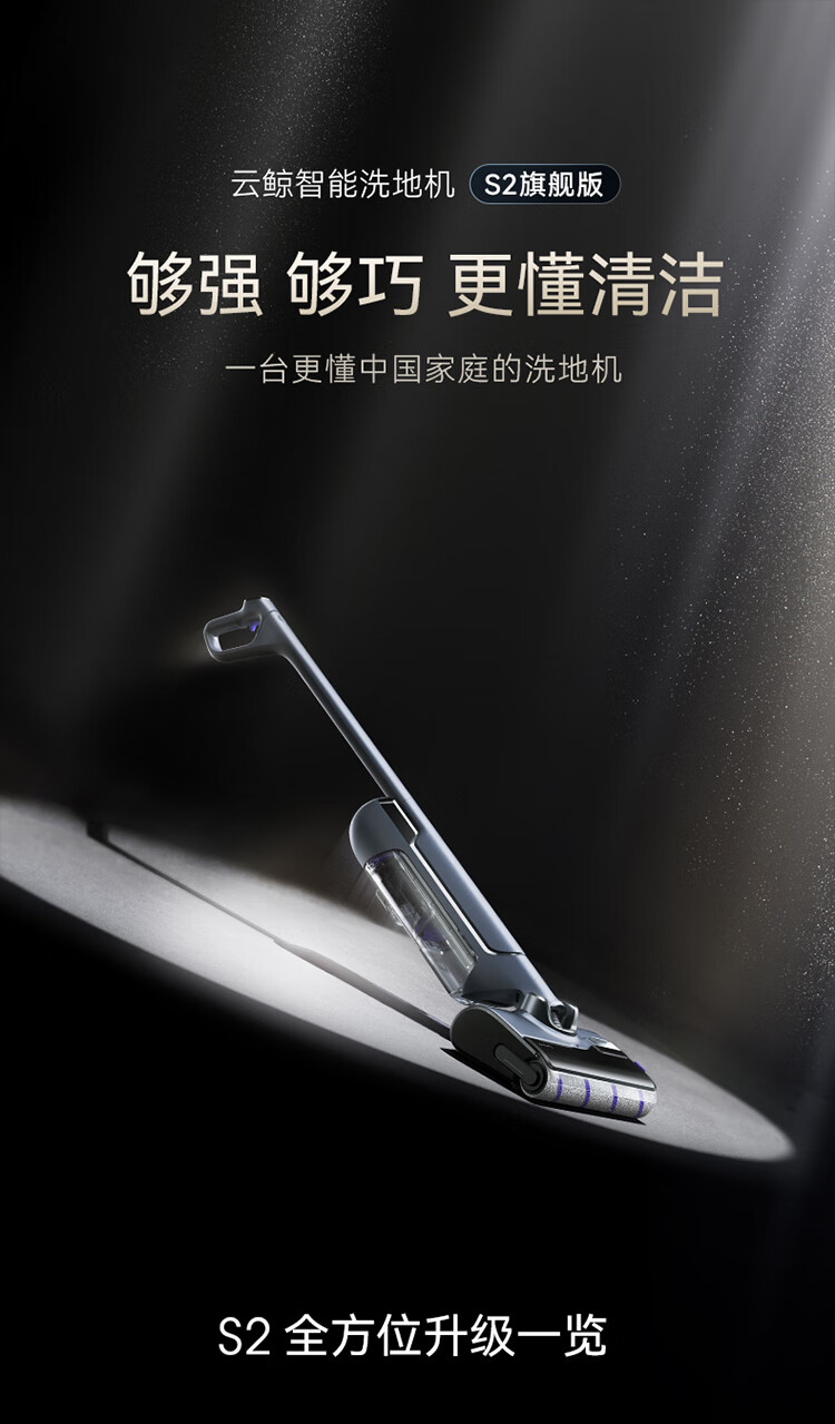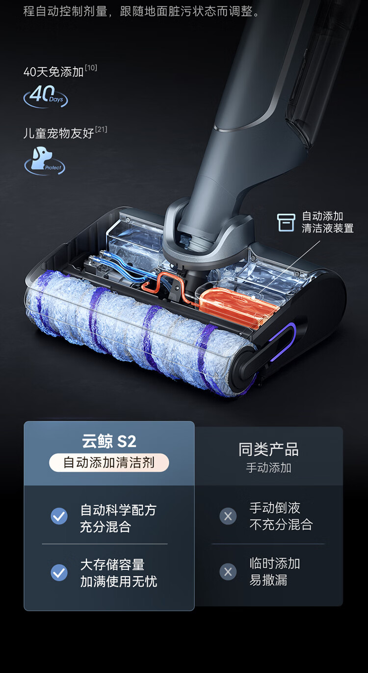 云鲸智能洗地机S2_180躺平自动智能投放清洁液_家用手持吸尘器高温熨干吸拖一体拖地机器人【新】