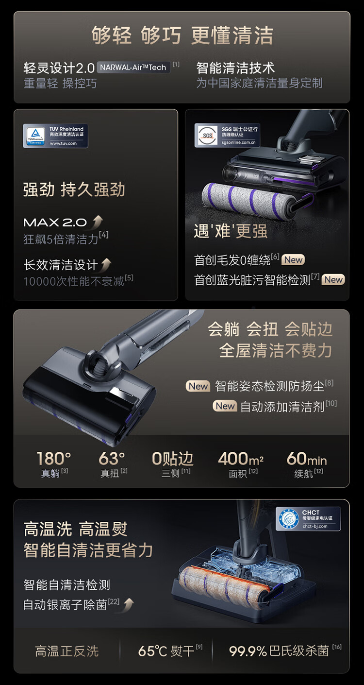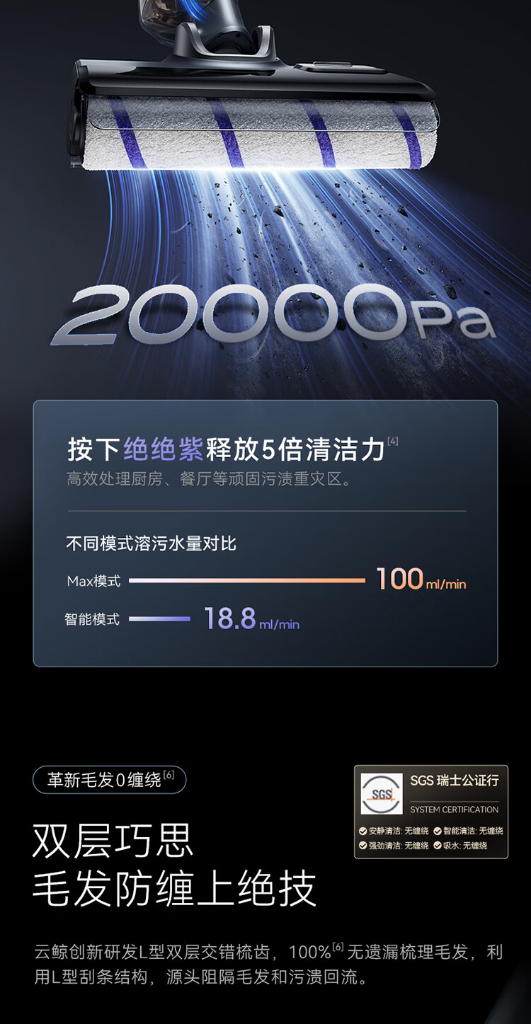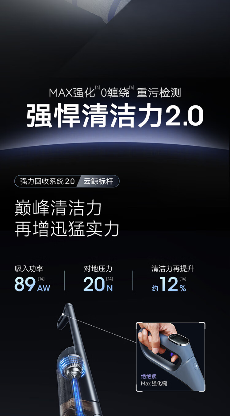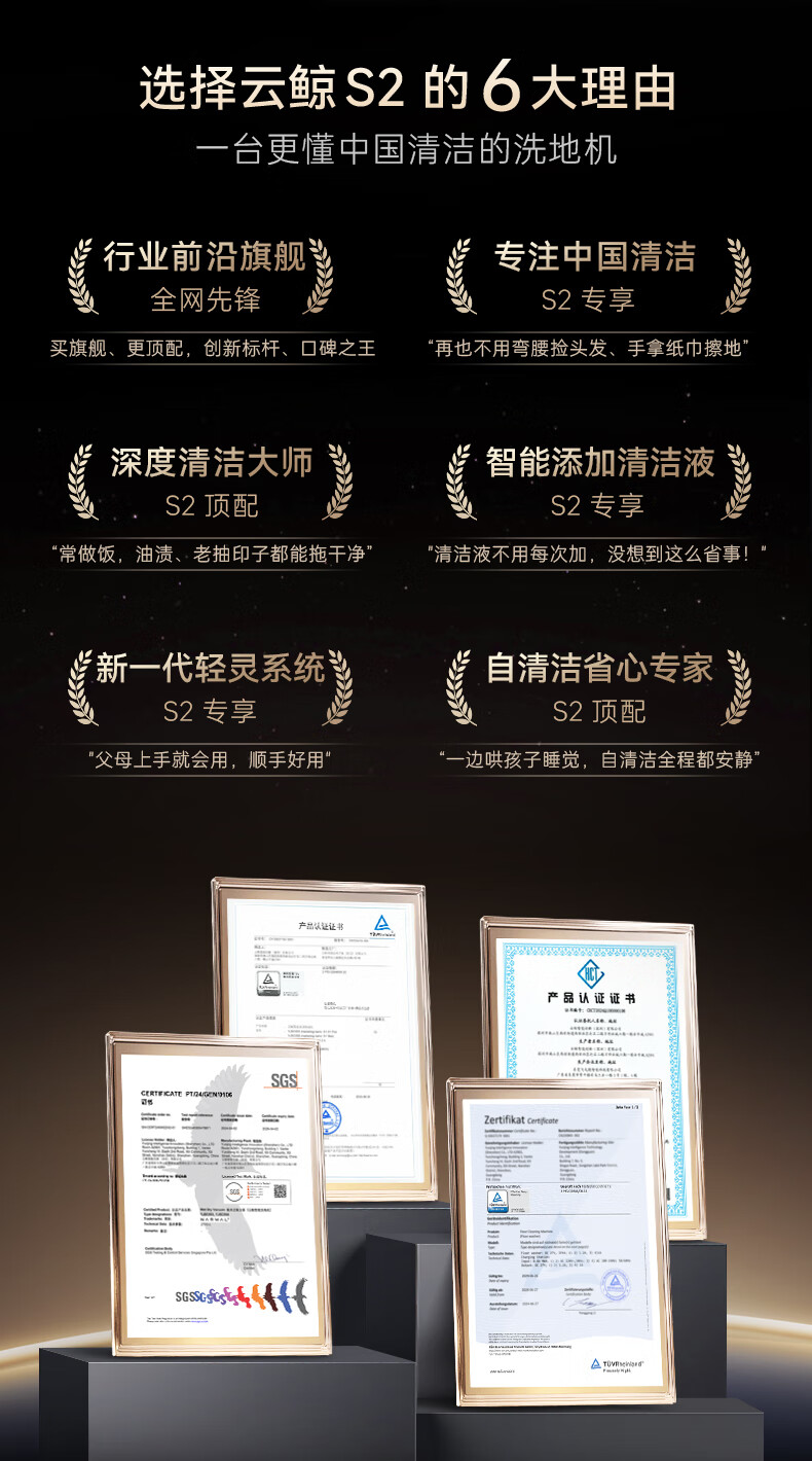 云鲸智能洗地机S2_180躺平自动智能投放清洁液_家用手持吸尘器高温熨干吸拖一体拖地机器人【新】