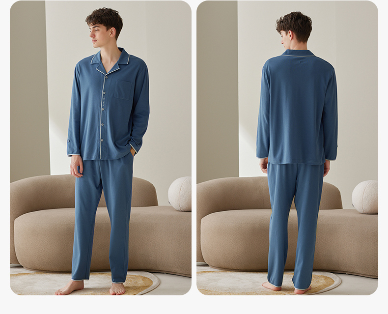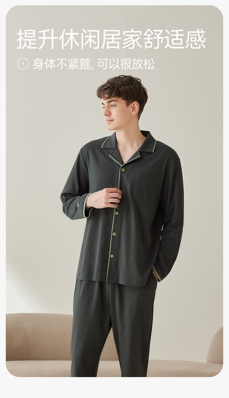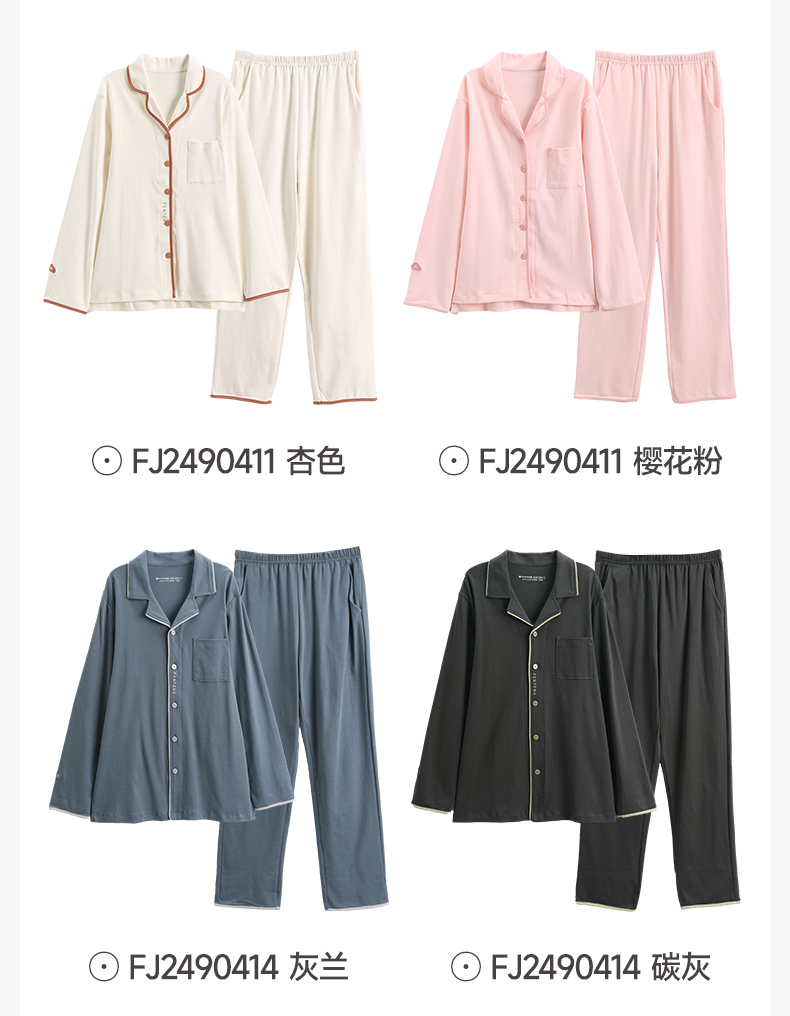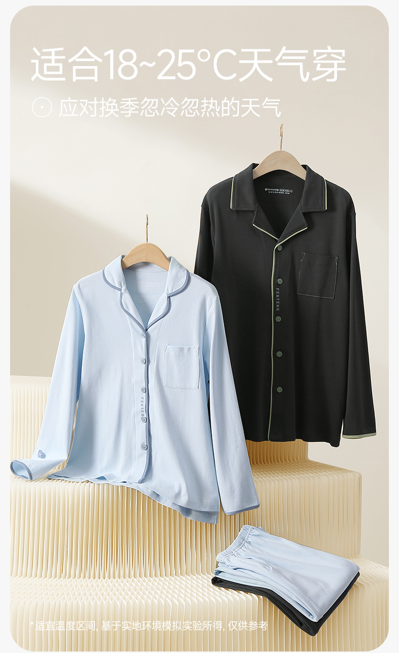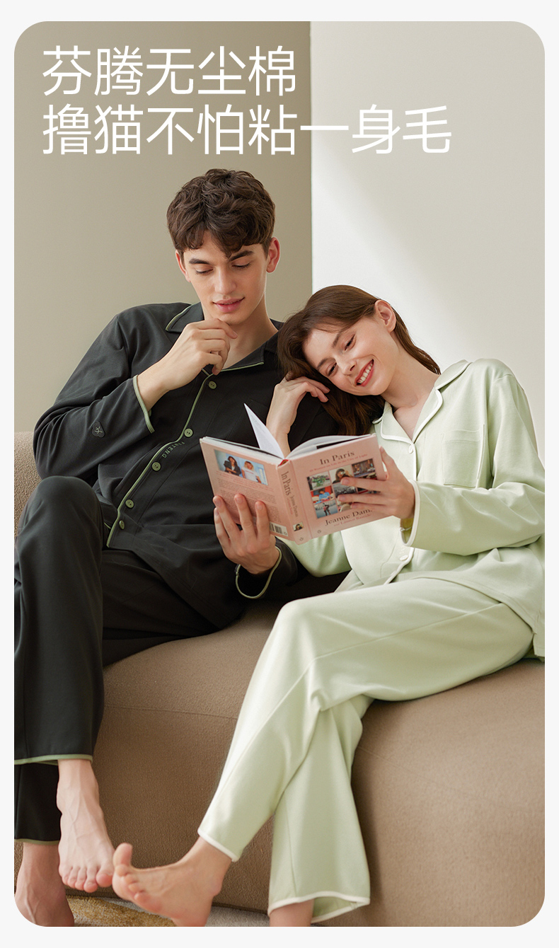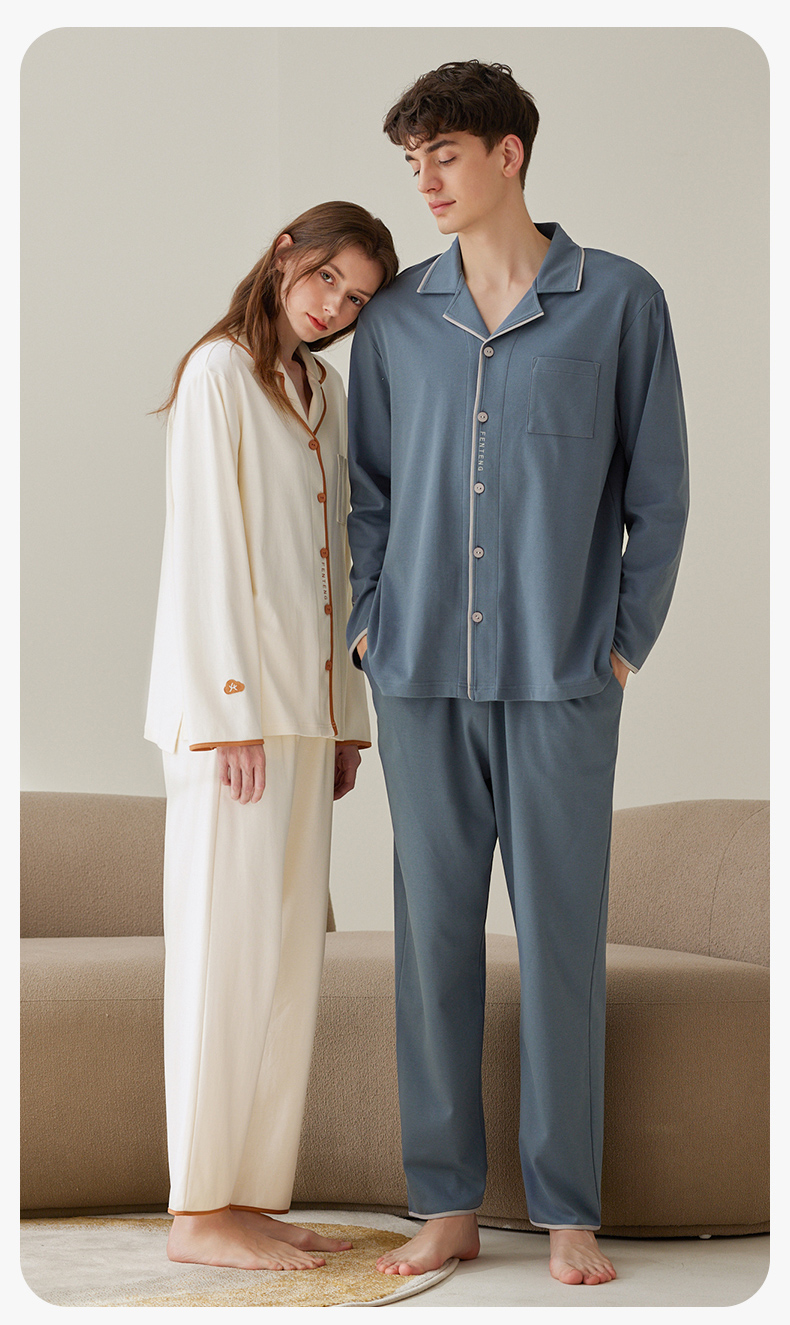 芬腾情侣睡衣春秋季纯棉长袖套装女士青年宽松休闲加大码男家居服