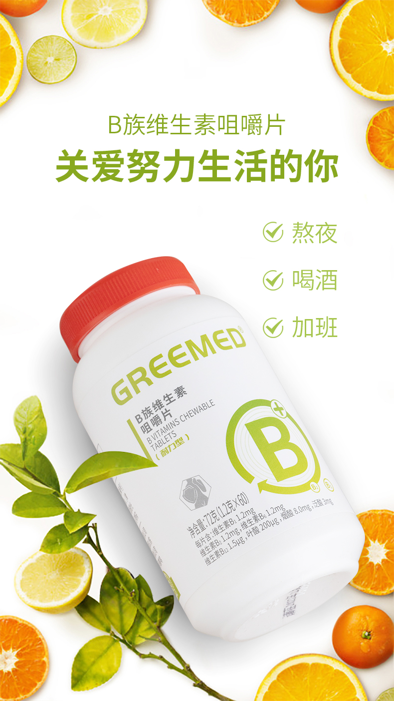 【粮药LY】 GreeMed维生素B族1.2g*60片/瓶