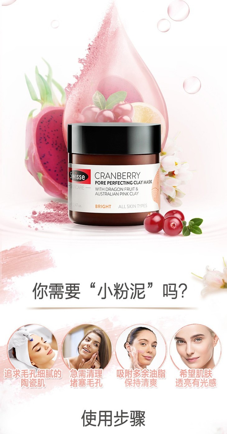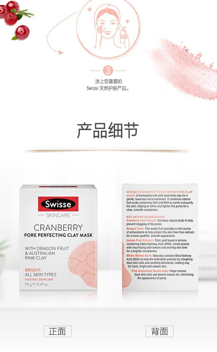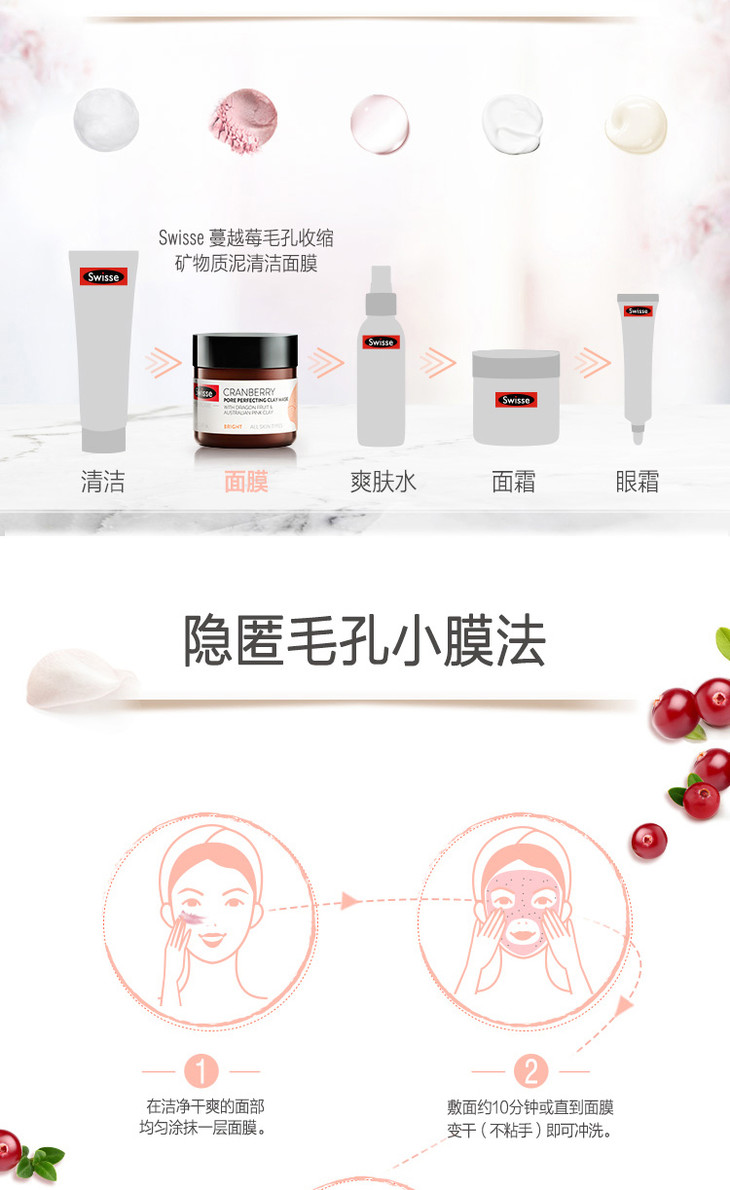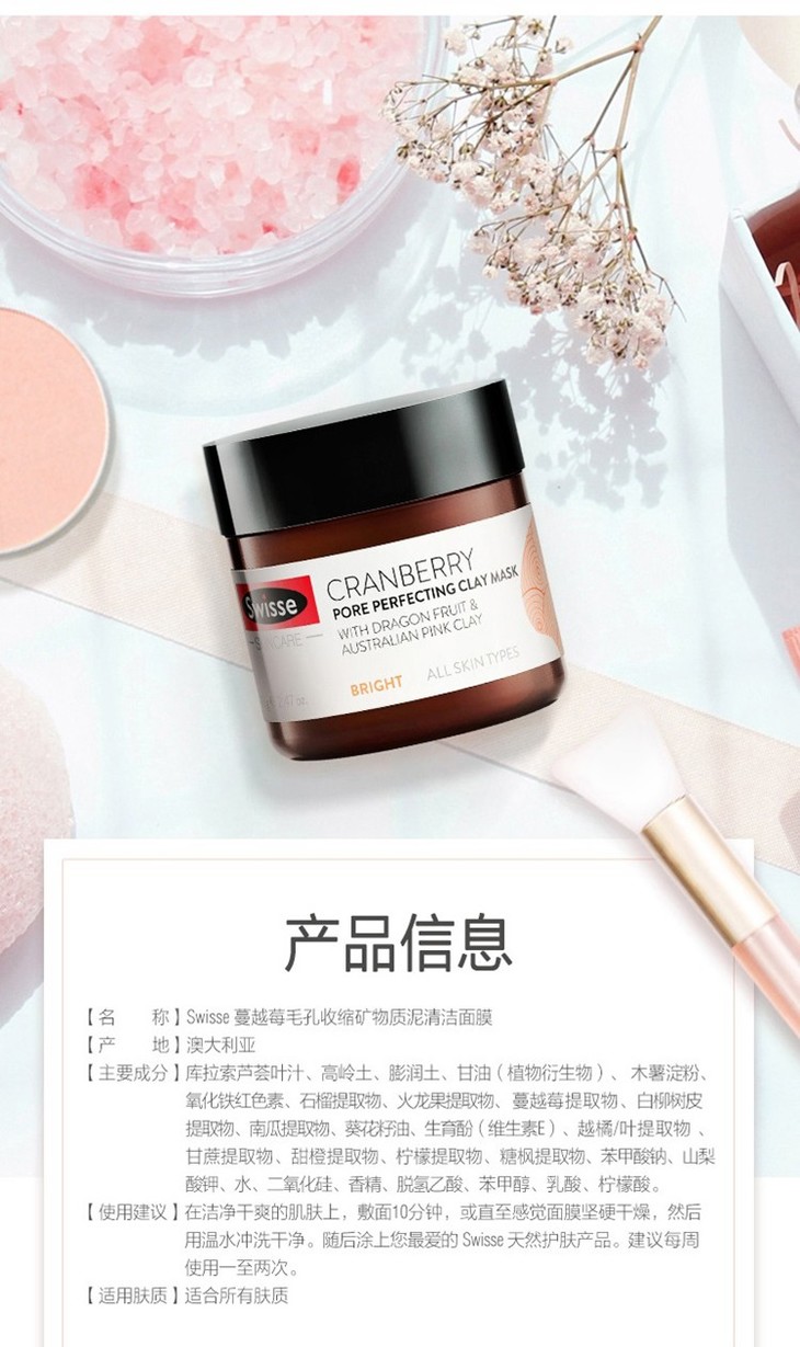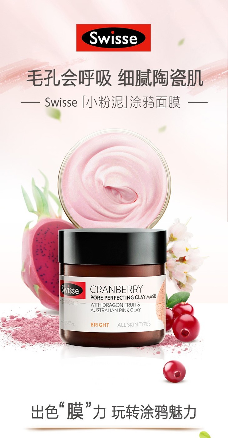 【新西兰直邮】Swisse 蔓越莓 小粉泥 涂鸦面膜 收缩毛孔深层清洁保湿提亮