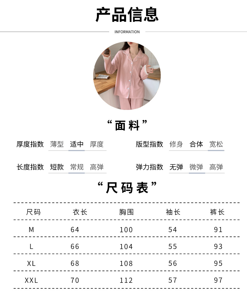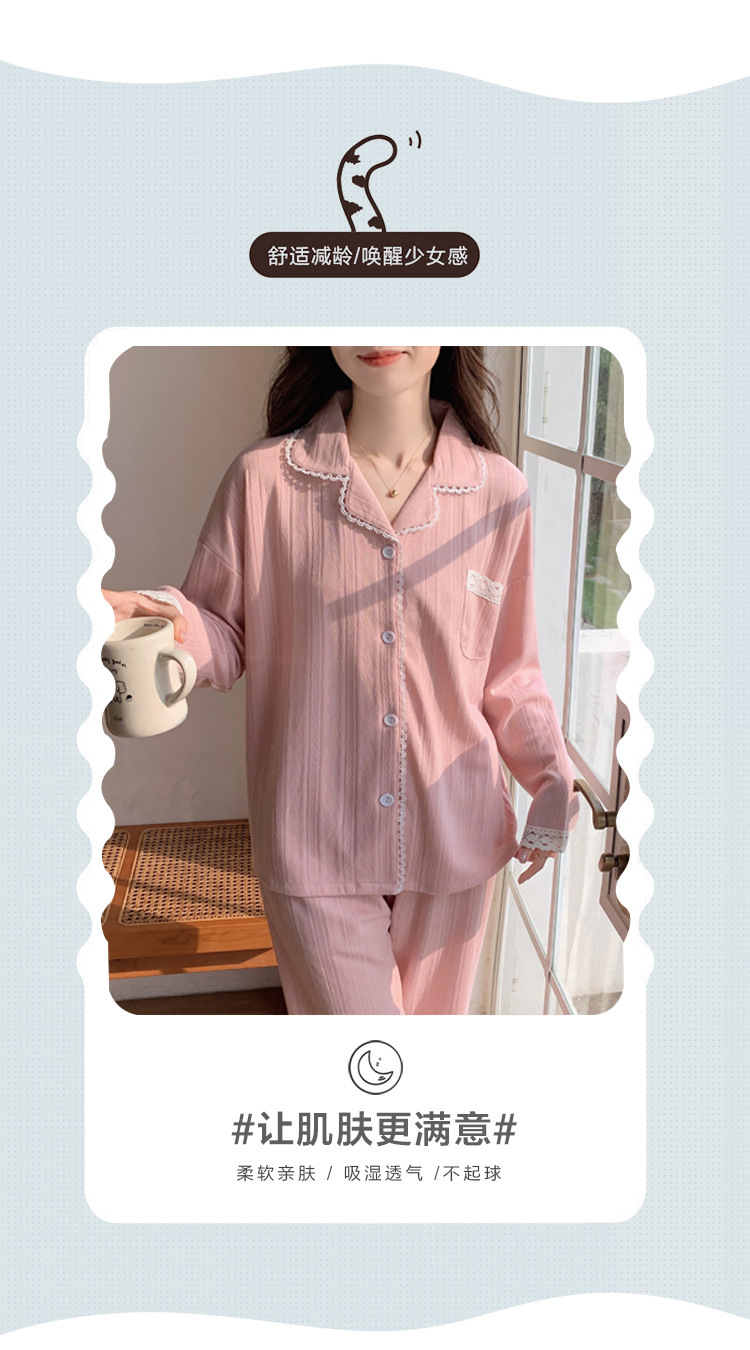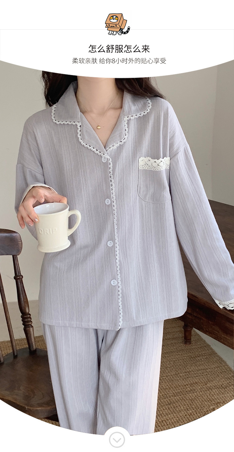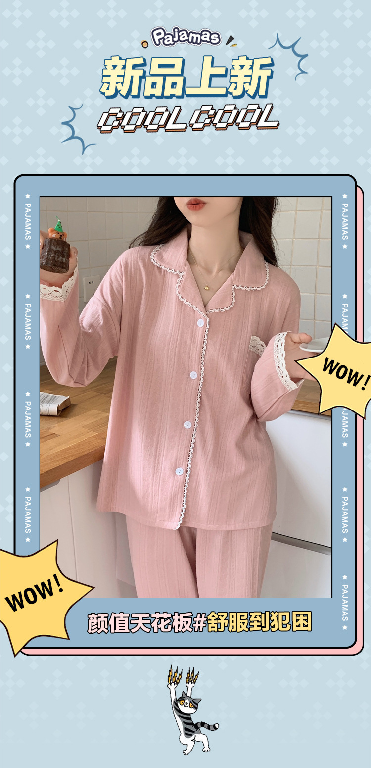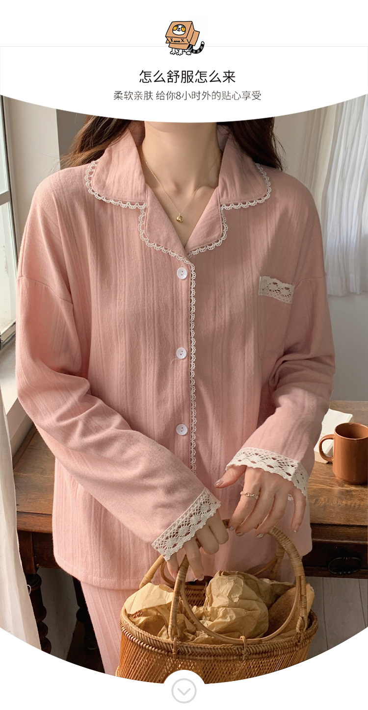 秋冬【棉质纯色睡衣】 可外穿休闲家居服套装 边边点缀蕾丝 满满少女心