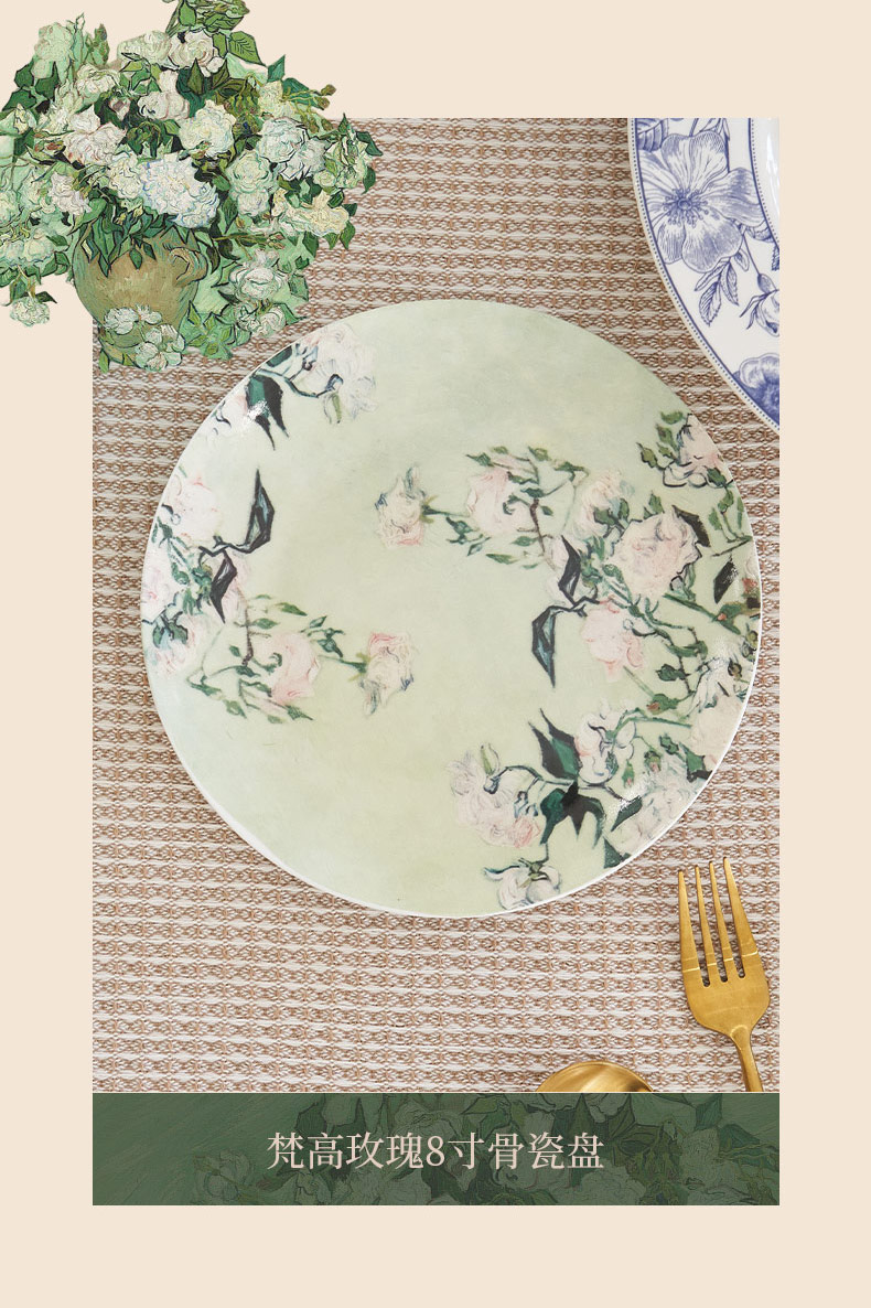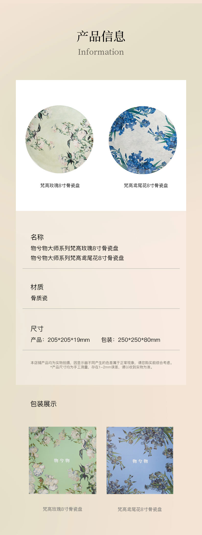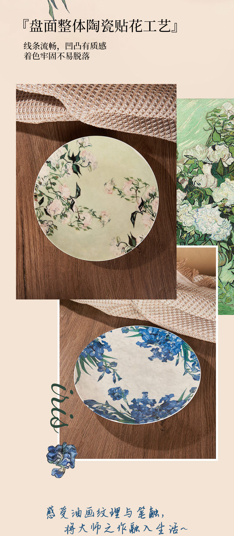 物兮物大师系列 梵高 玫瑰/鸢尾花 8寸骨瓷盘