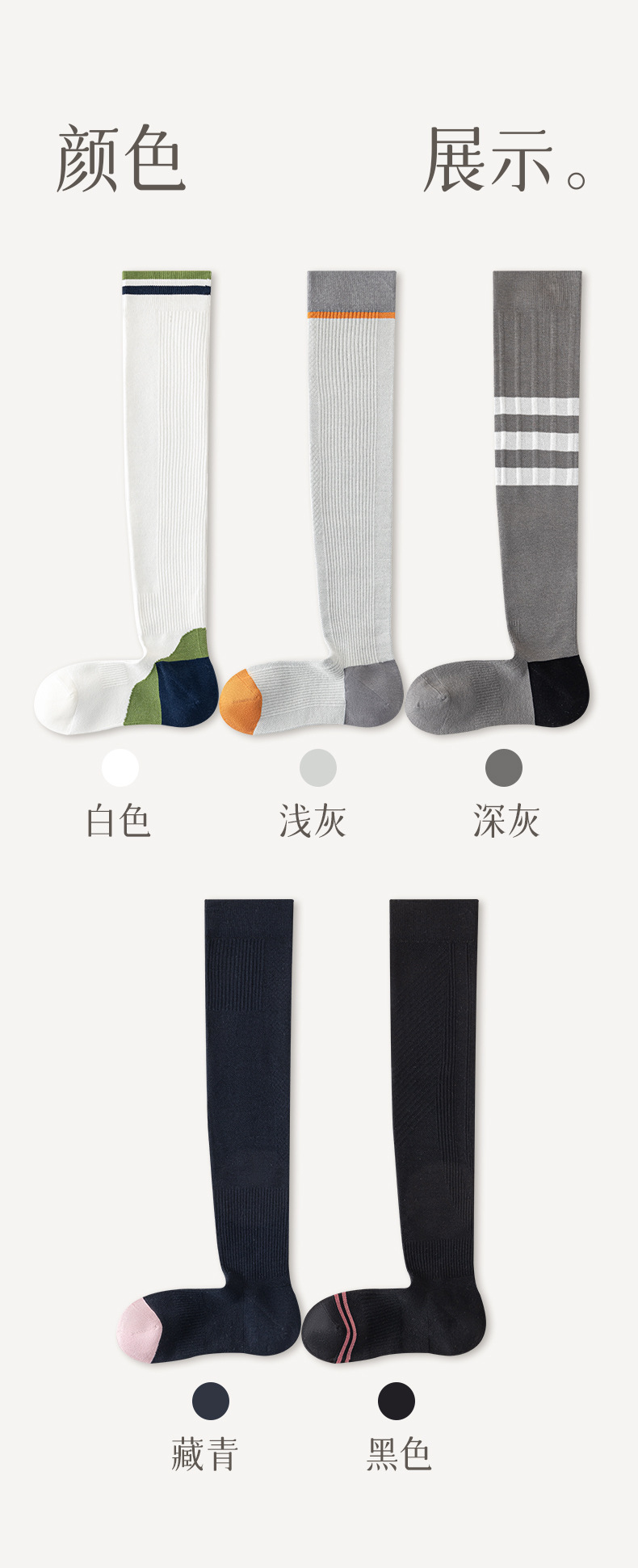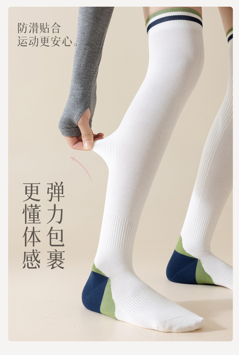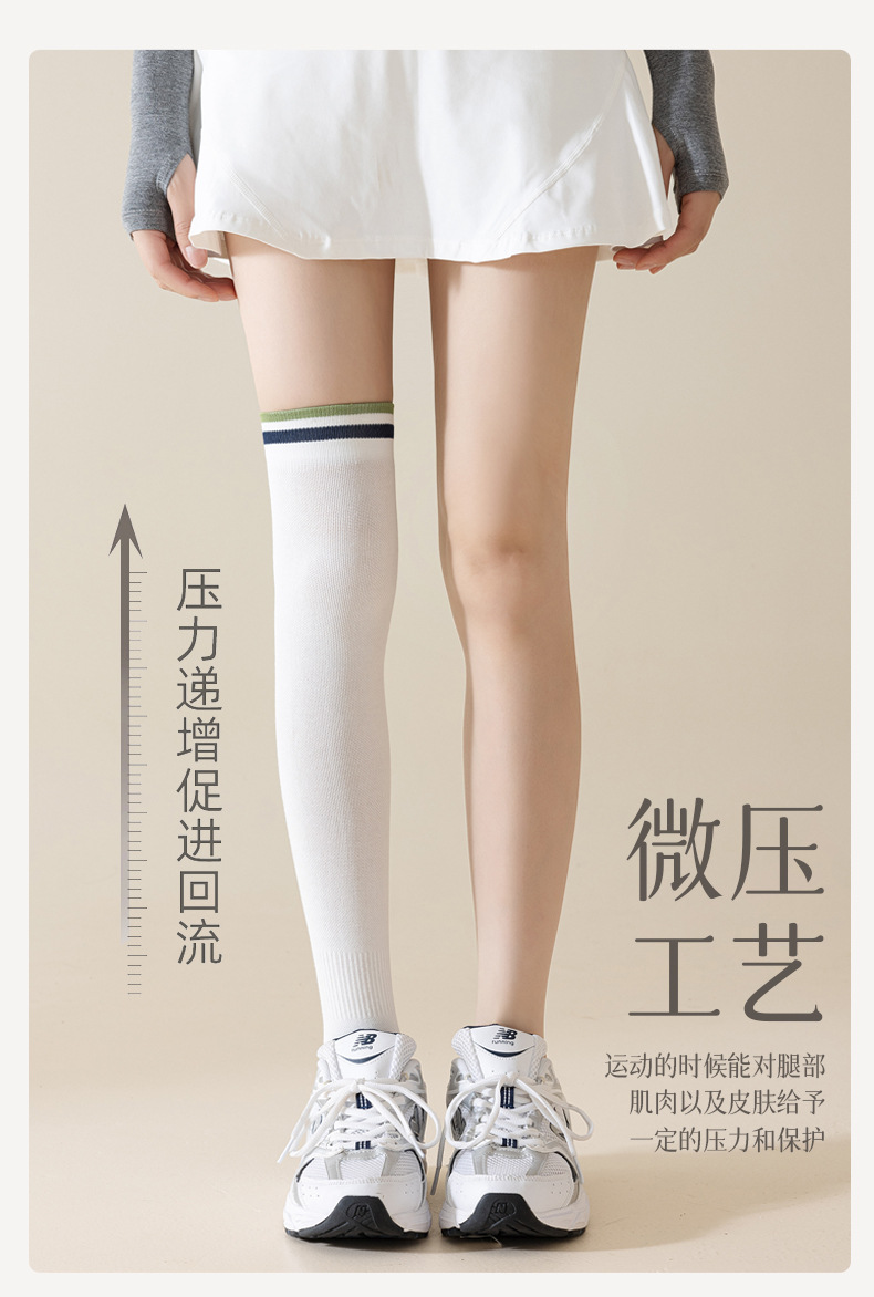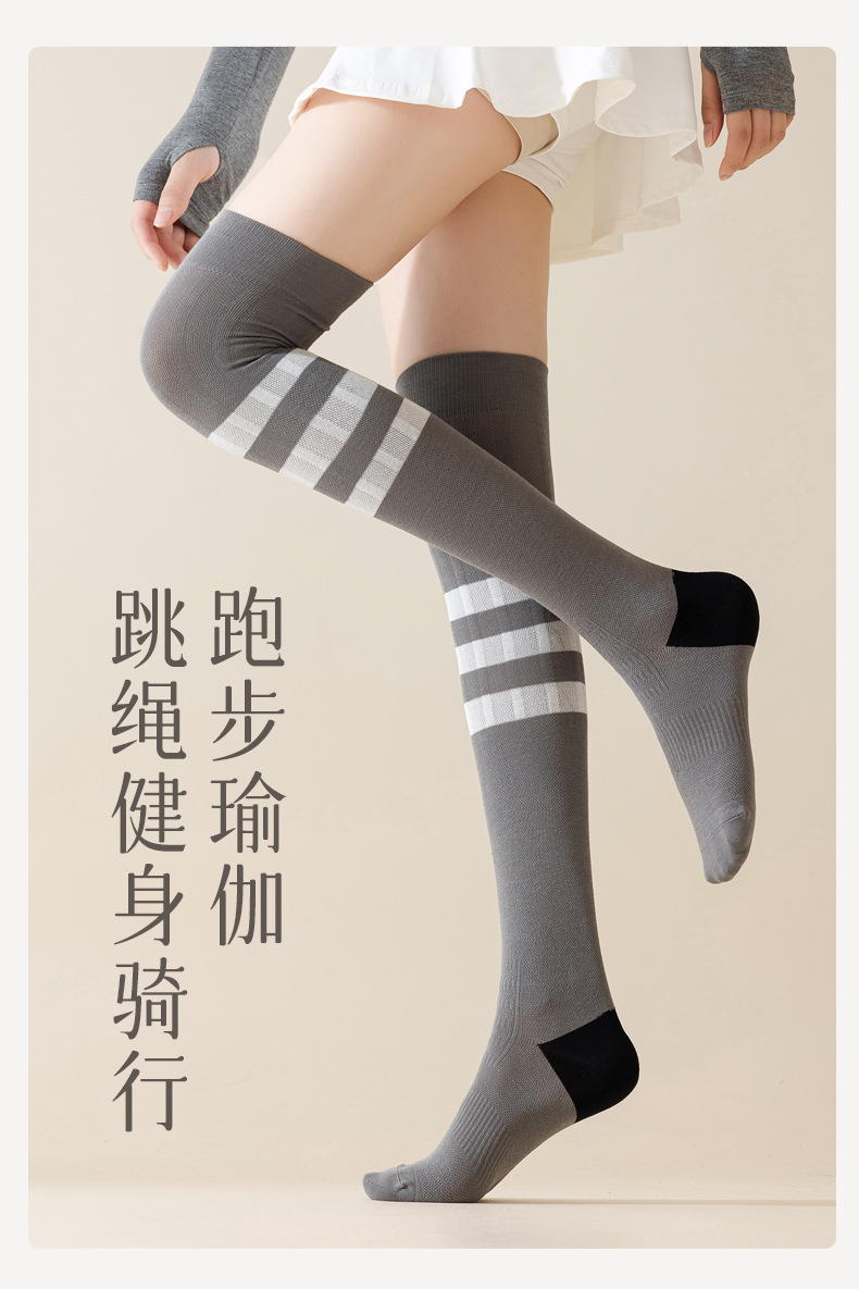 【过膝袜女士长筒棉袜】条纹撞色健身跳绳瘦腿袜 纯色休闲运动专业压力袜