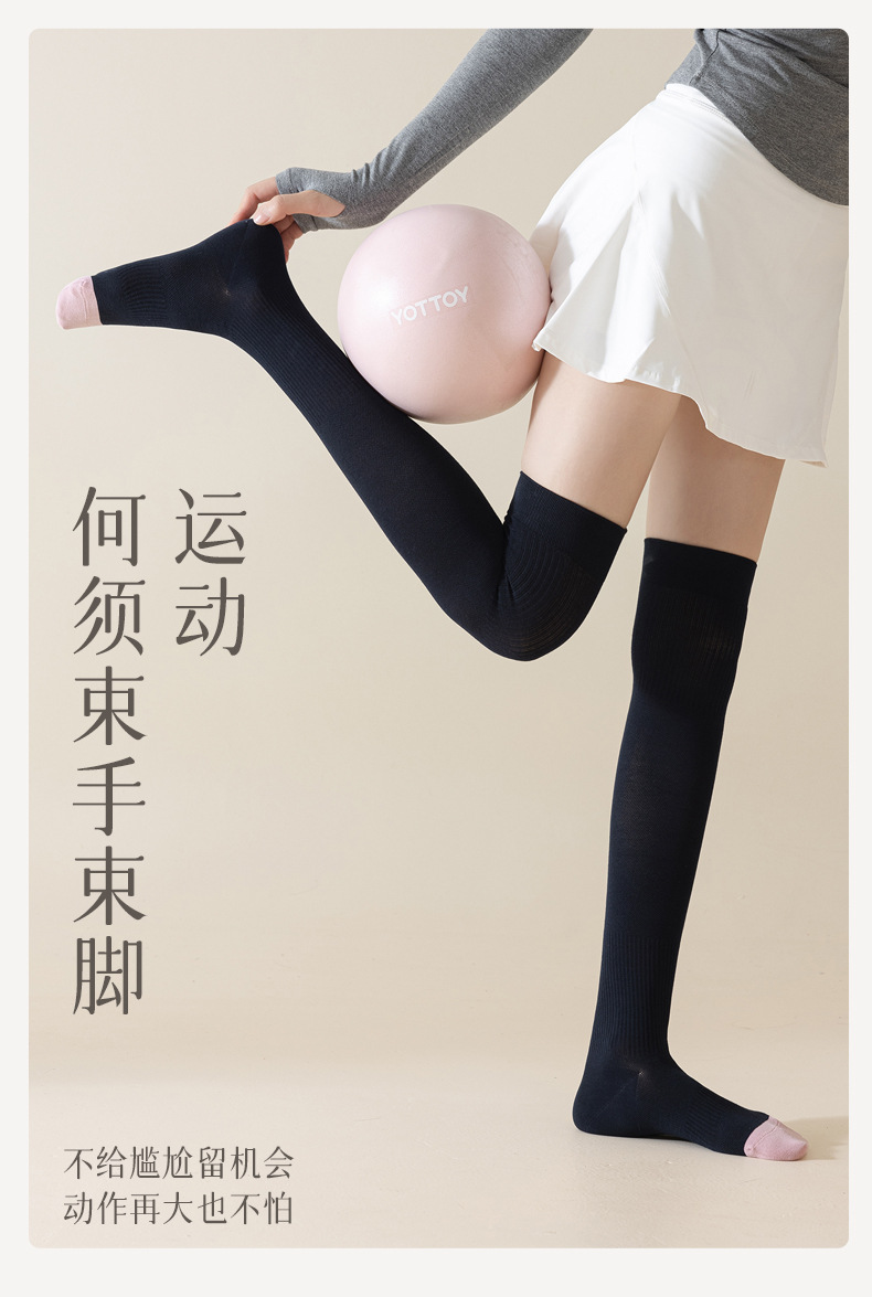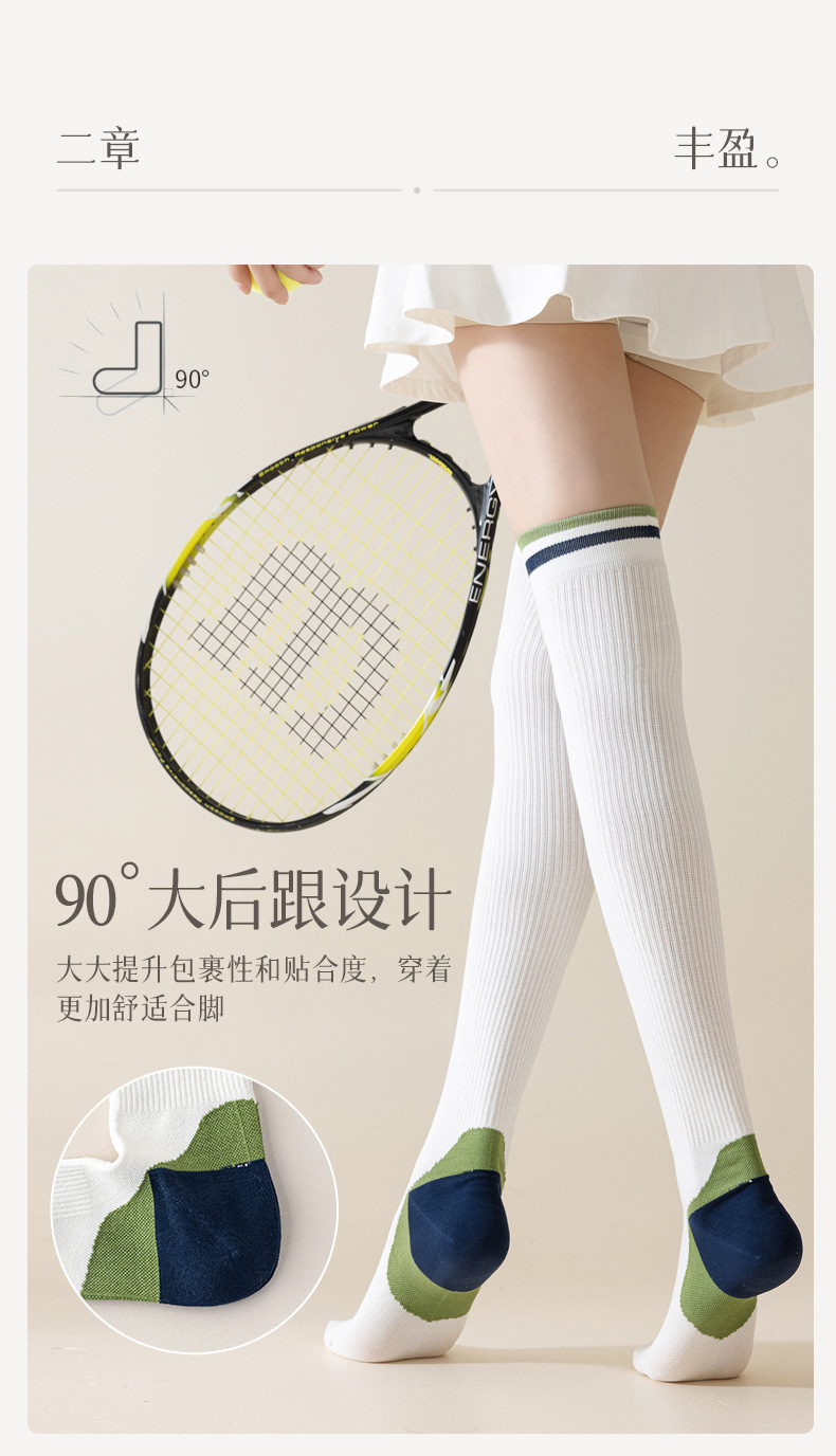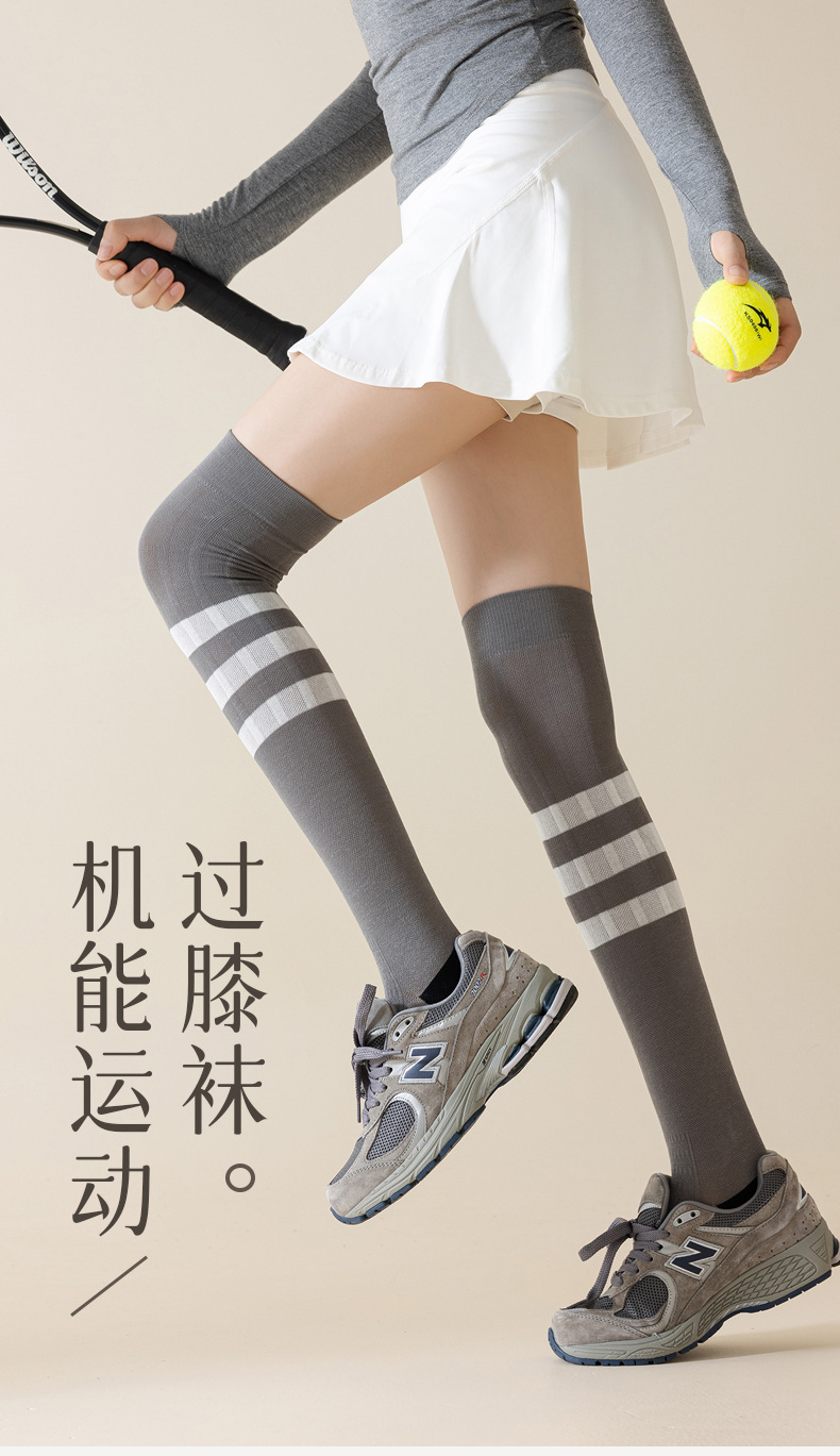 【过膝袜女士长筒棉袜】条纹撞色健身跳绳瘦腿袜 纯色休闲运动专业压力袜