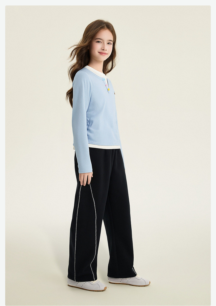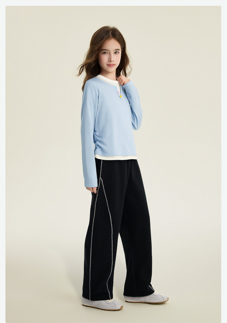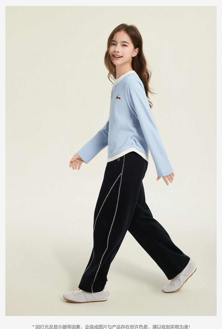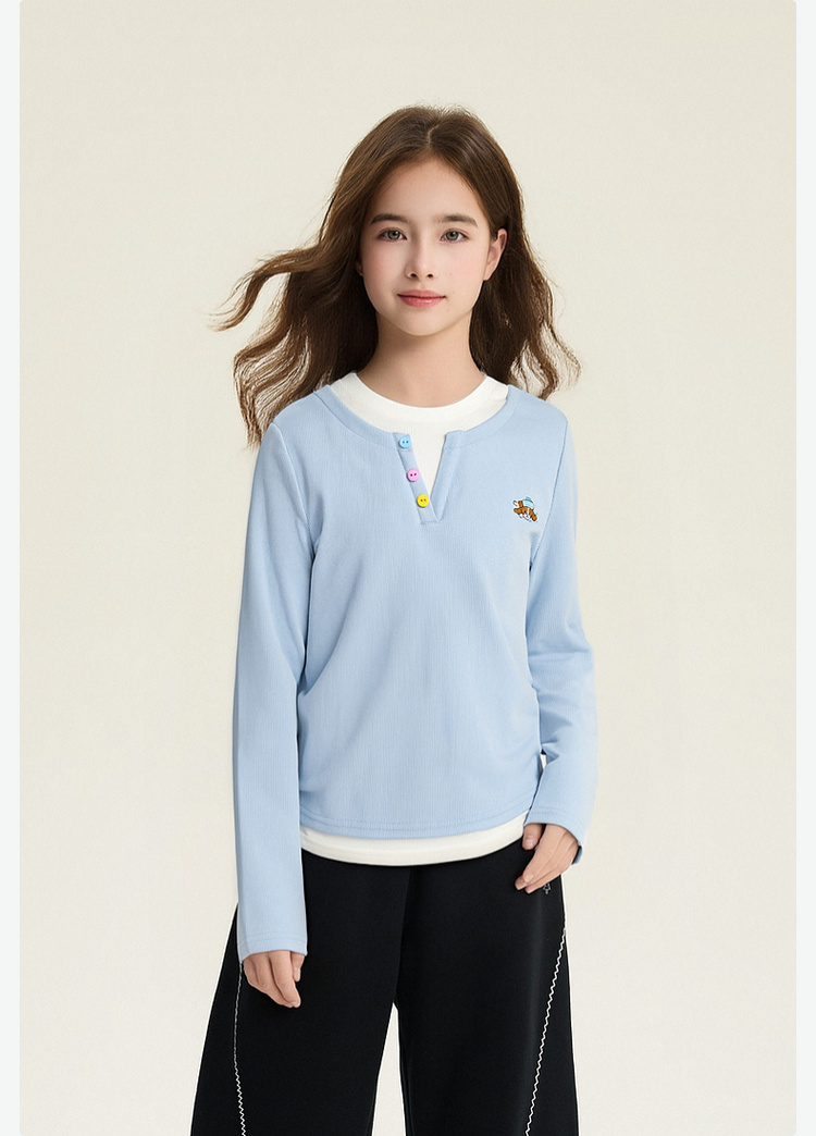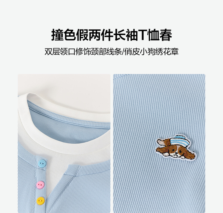 笛莎Deesha 童装女童T恤2026春新款撞色假两件长袖T恤