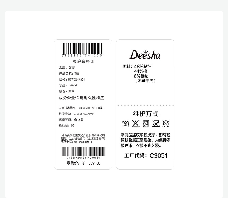 笛莎/Deesha 2026年夏季新款中童T恤撞色T恤