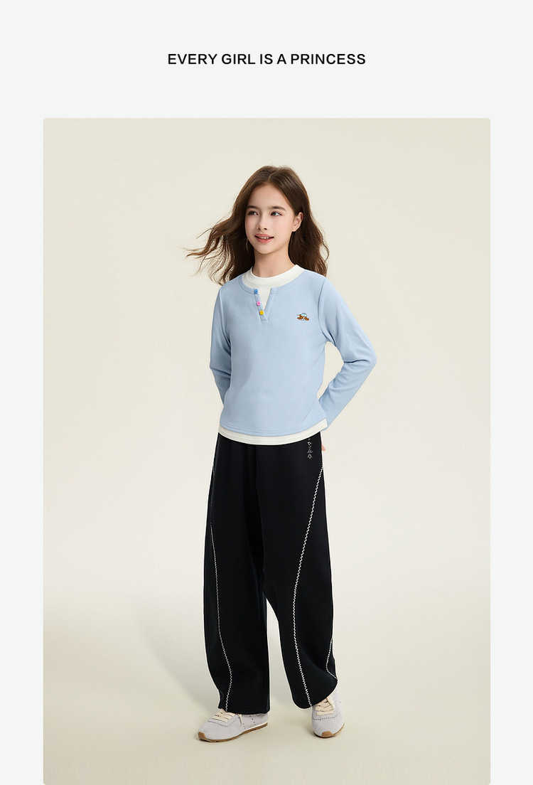 笛莎Deesha 童装女童卫衣2026春新款精致小图案圆领卫衣