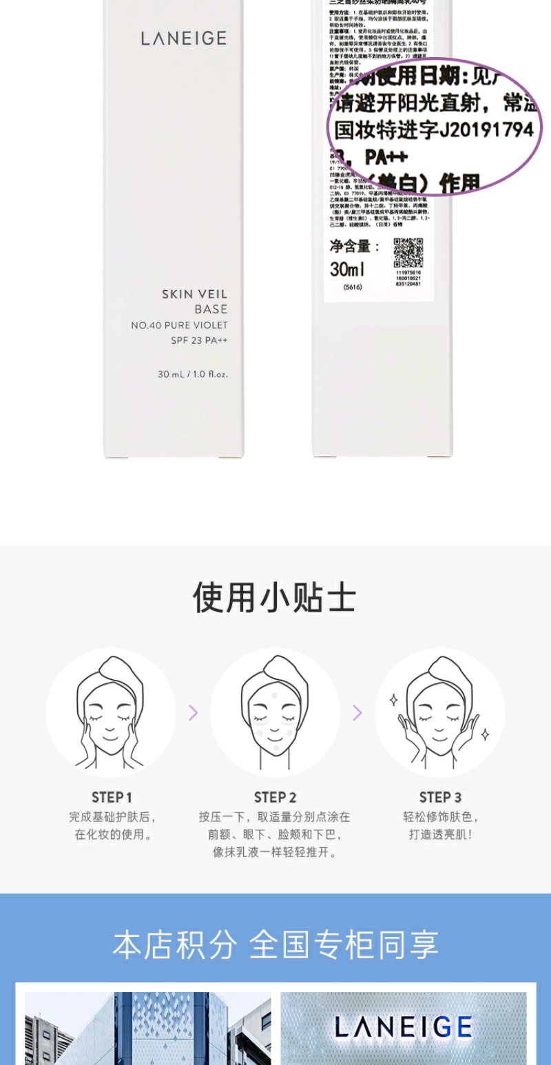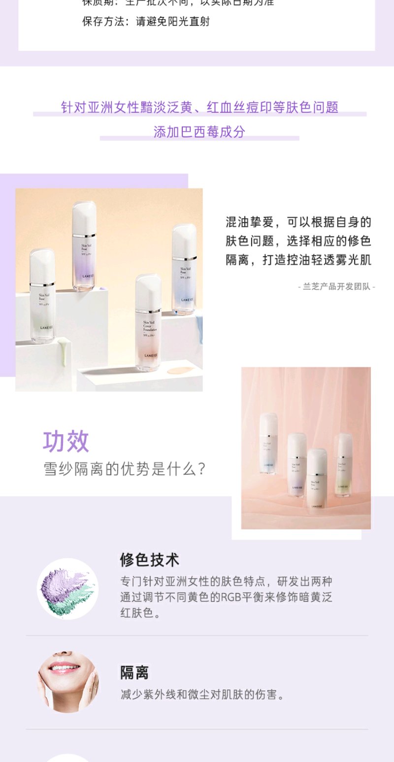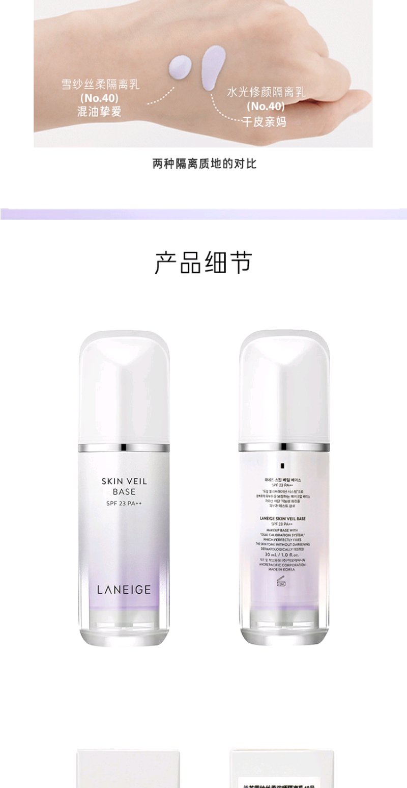 兰芝雪纱丝柔防晒隔离霜40号SPF22/PP++30ml(紫色)