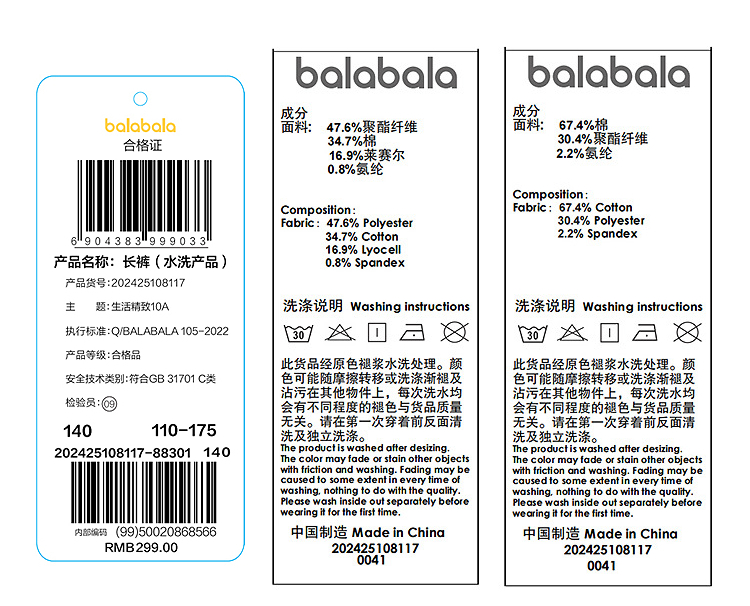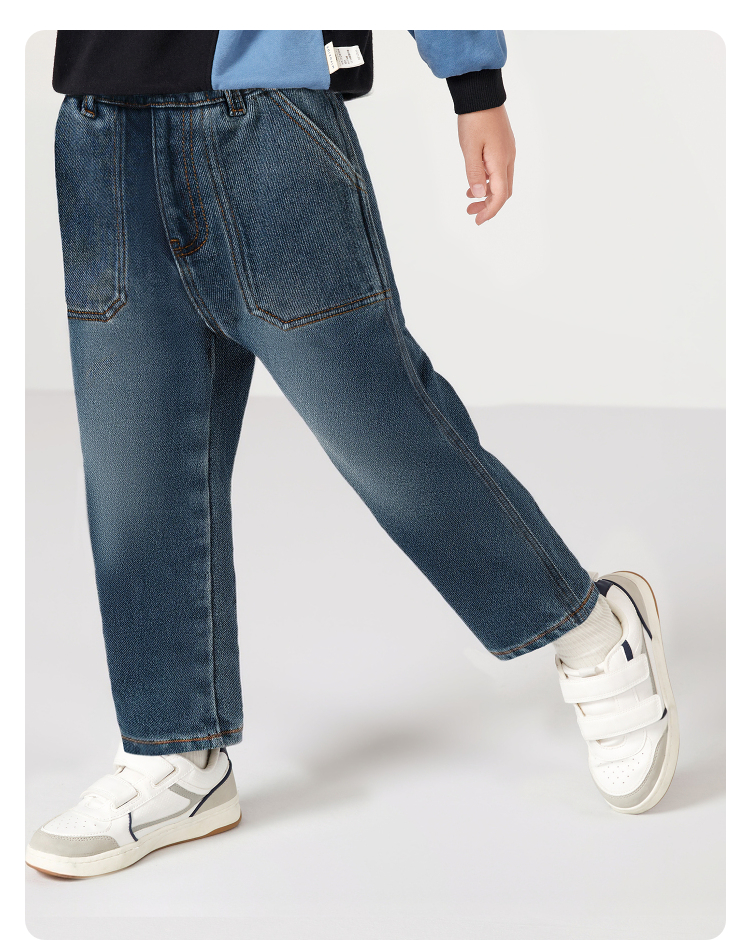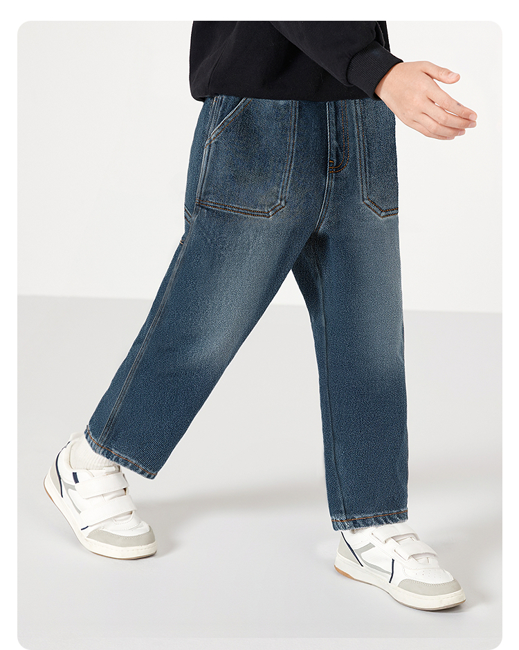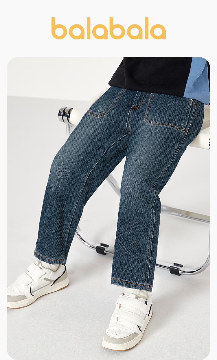 巴拉巴拉童装男童裤子儿童牛仔裤2025冬新款加绒直筒