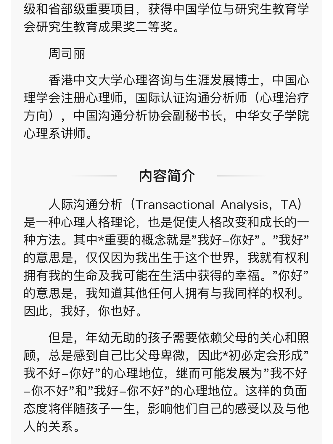 我好你好(了解自我改变人生的人际沟通分析TA)