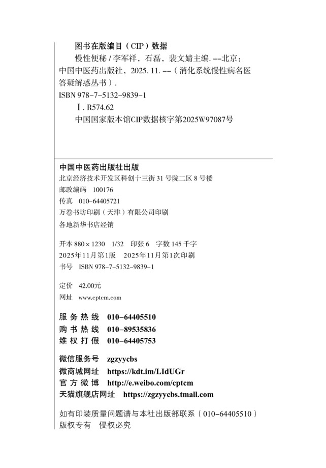 书名:慢性便秘 消化系统慢性病名医答疑解惑丛书