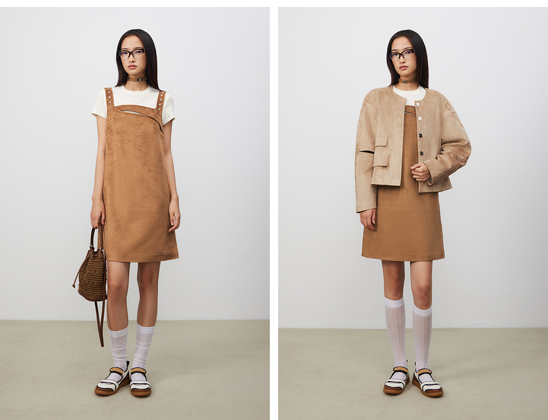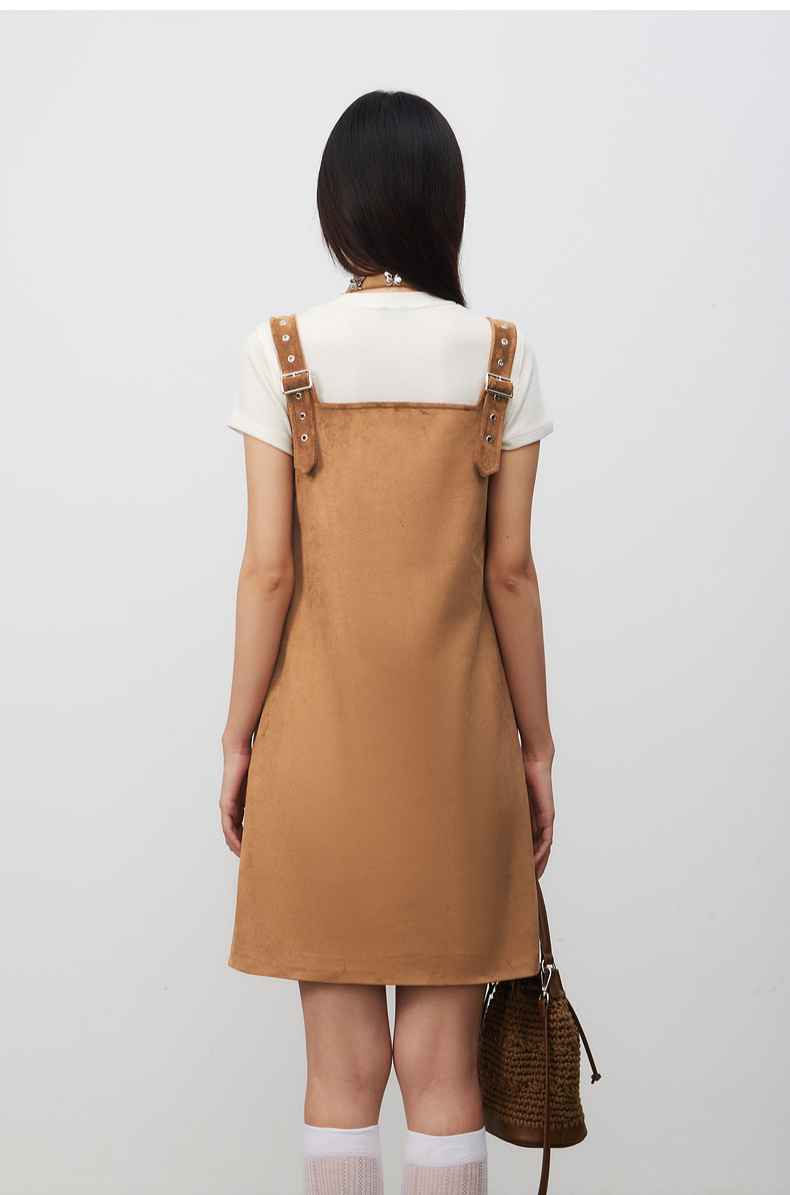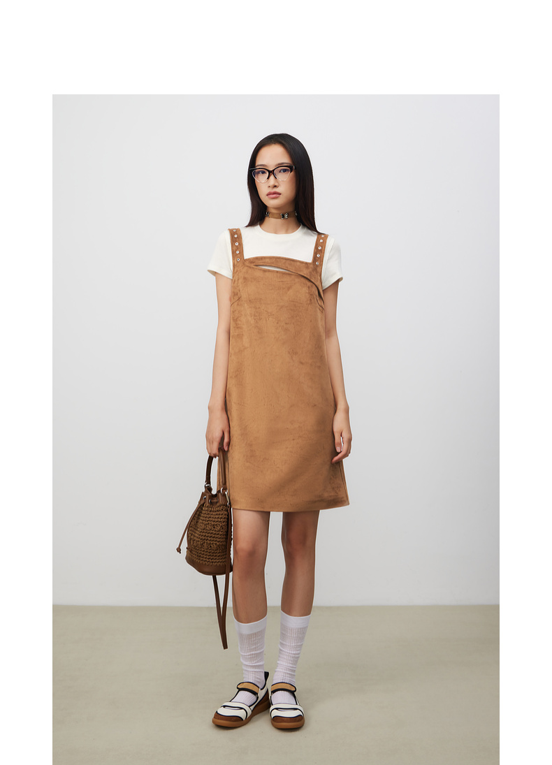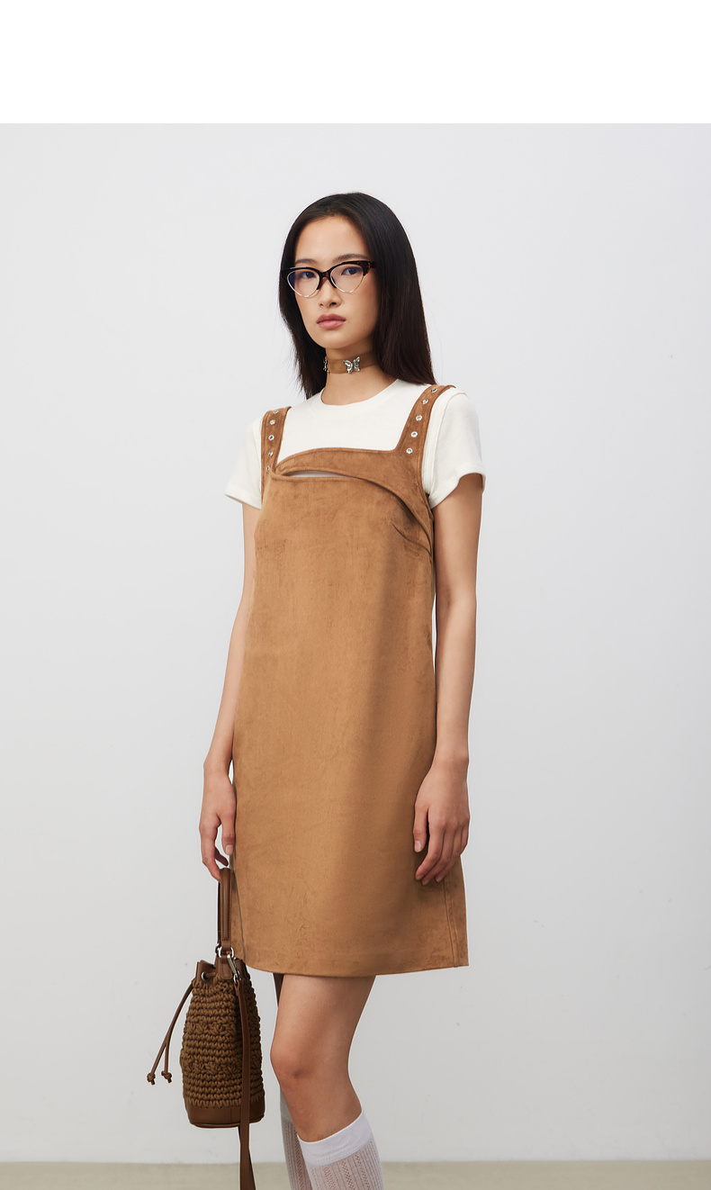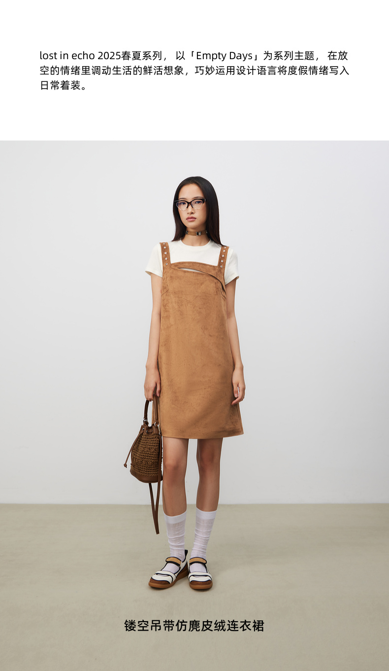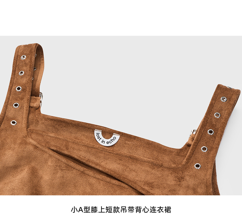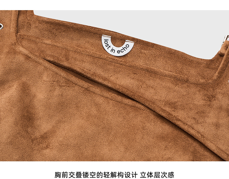 lost in echo2025春夏新款吊带仿麂皮绒复古时尚解构A字连衣裙女