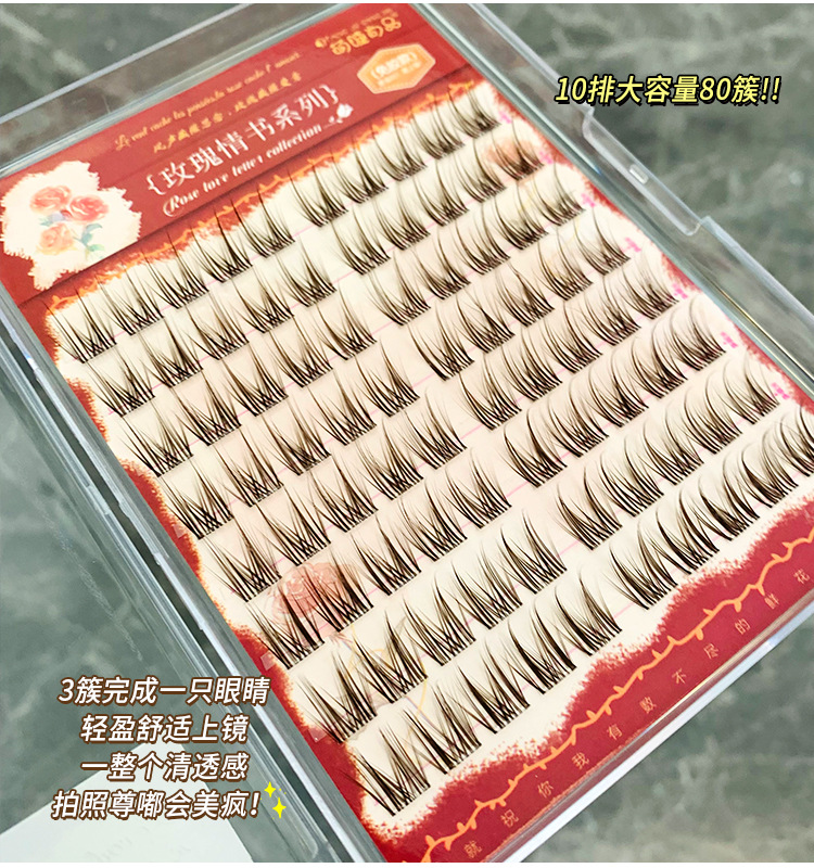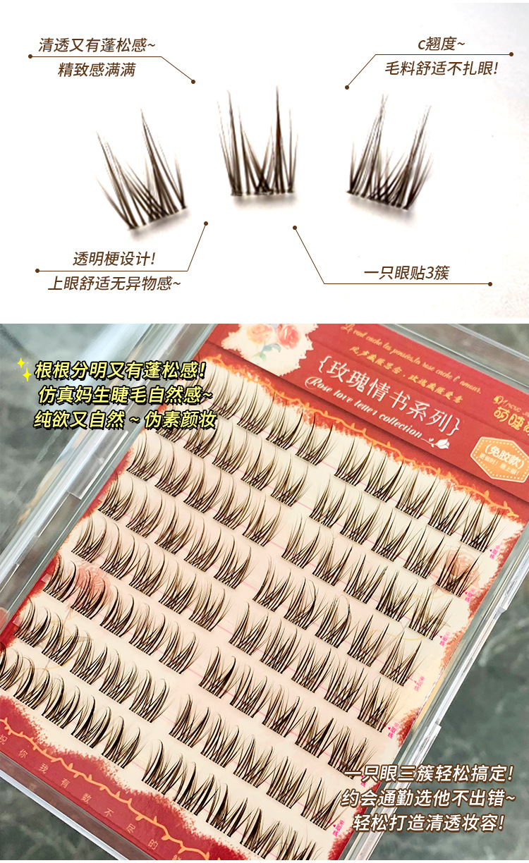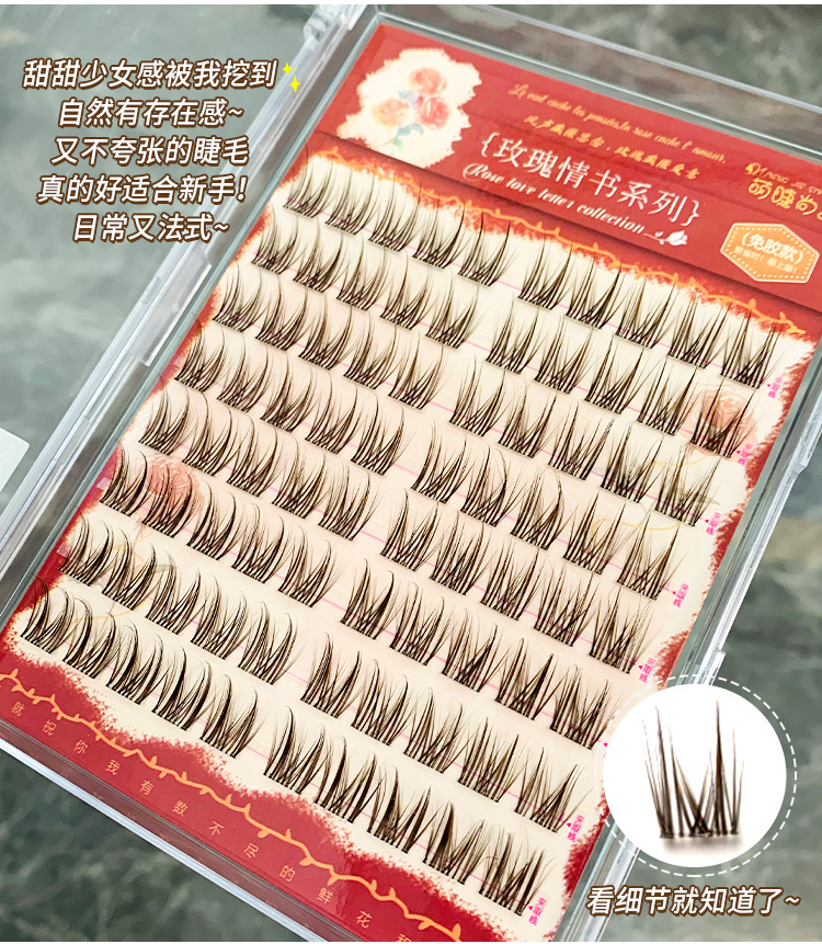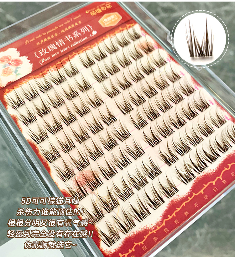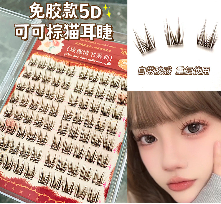 【轻松get美睫店!同款漫画眼】免胶无梗款5D可可棕猫耳睫自粘小恶魔自然浓密单簇眼睫毛。ry