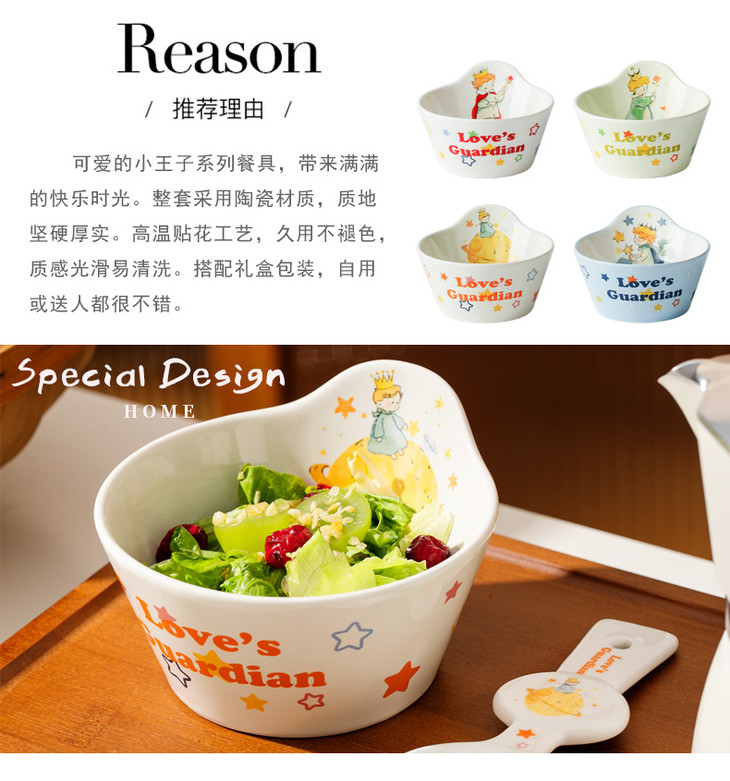 款式一:【小王子系列-碗勺组合】 不仅颜值高,还非常实用 无论是用来盛放美食还是作为装饰 都能为你的餐桌增添一份童话般的浪漫