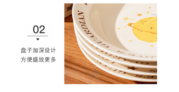 采用高品质的陶瓷制作而成 质地细腻光滑,手感温润 盘口圆润,吃水果或者拿的时候非常舒适 碟子的尺寸大小给小朋友用正好 不仅实用,而且整体造型美观大方 陶瓷的品质使得它们既耐热又不易损坏 经久耐用,可以陪伴使用者度过许多美好的时光