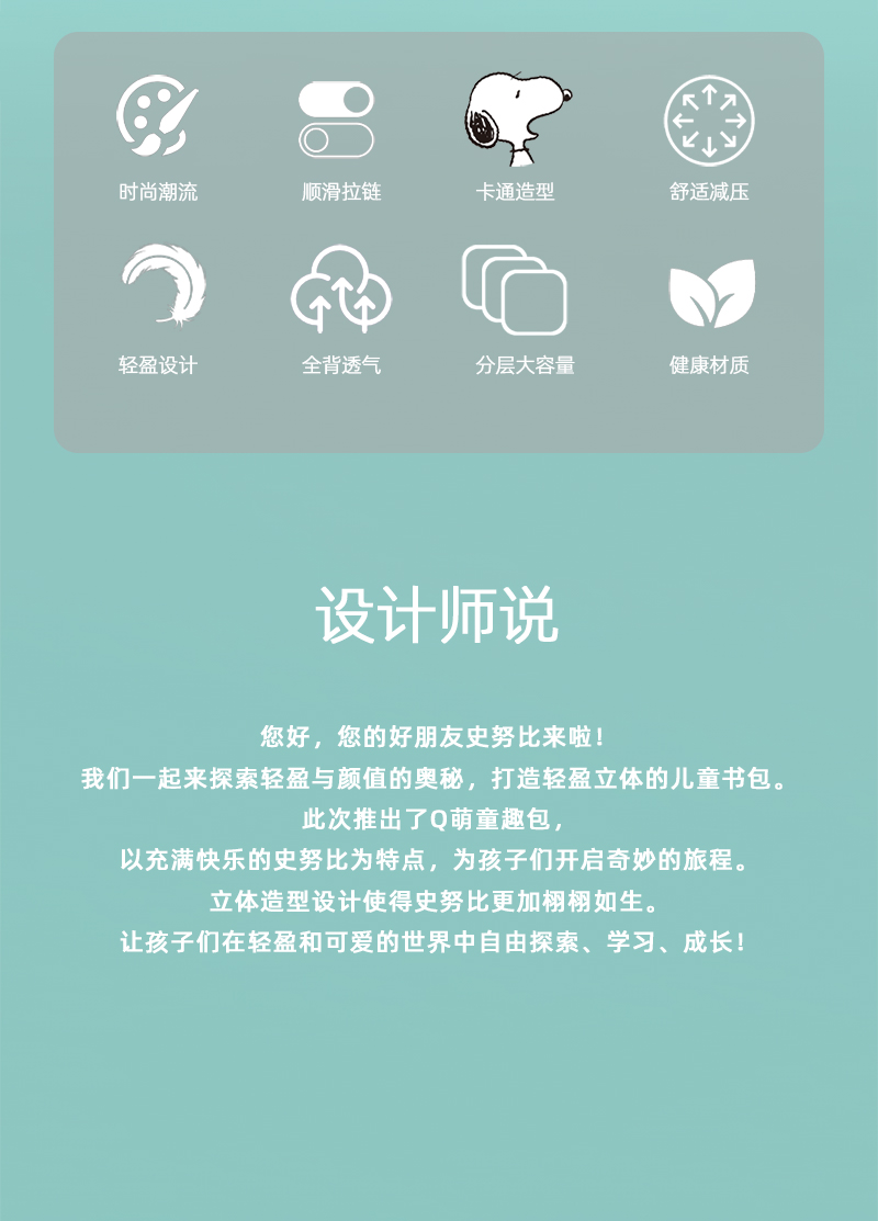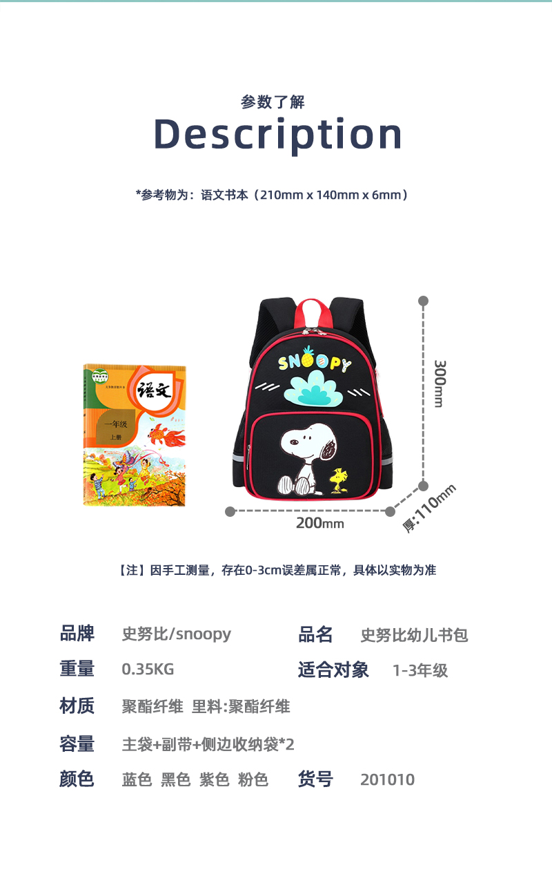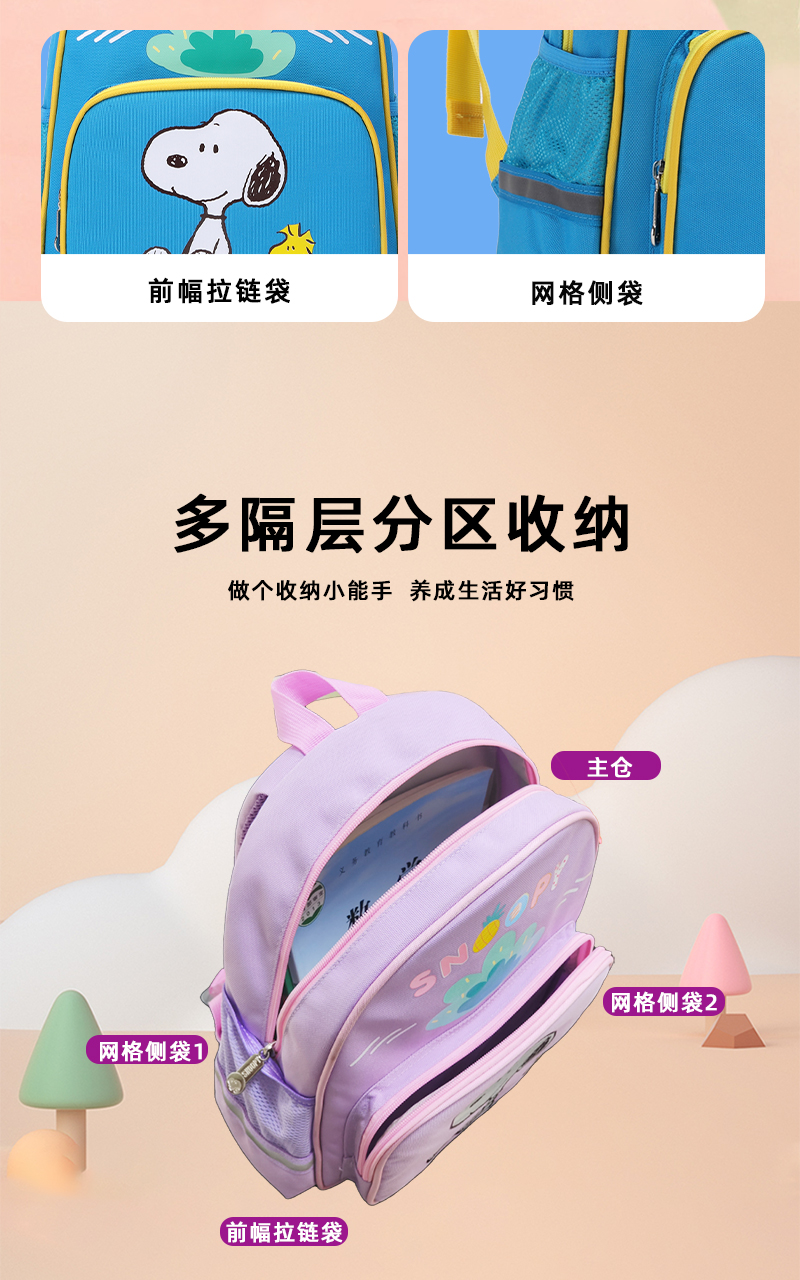 史努比书包幼儿卡通儿童双肩书包大容量护脊防泼水轻便女生女童