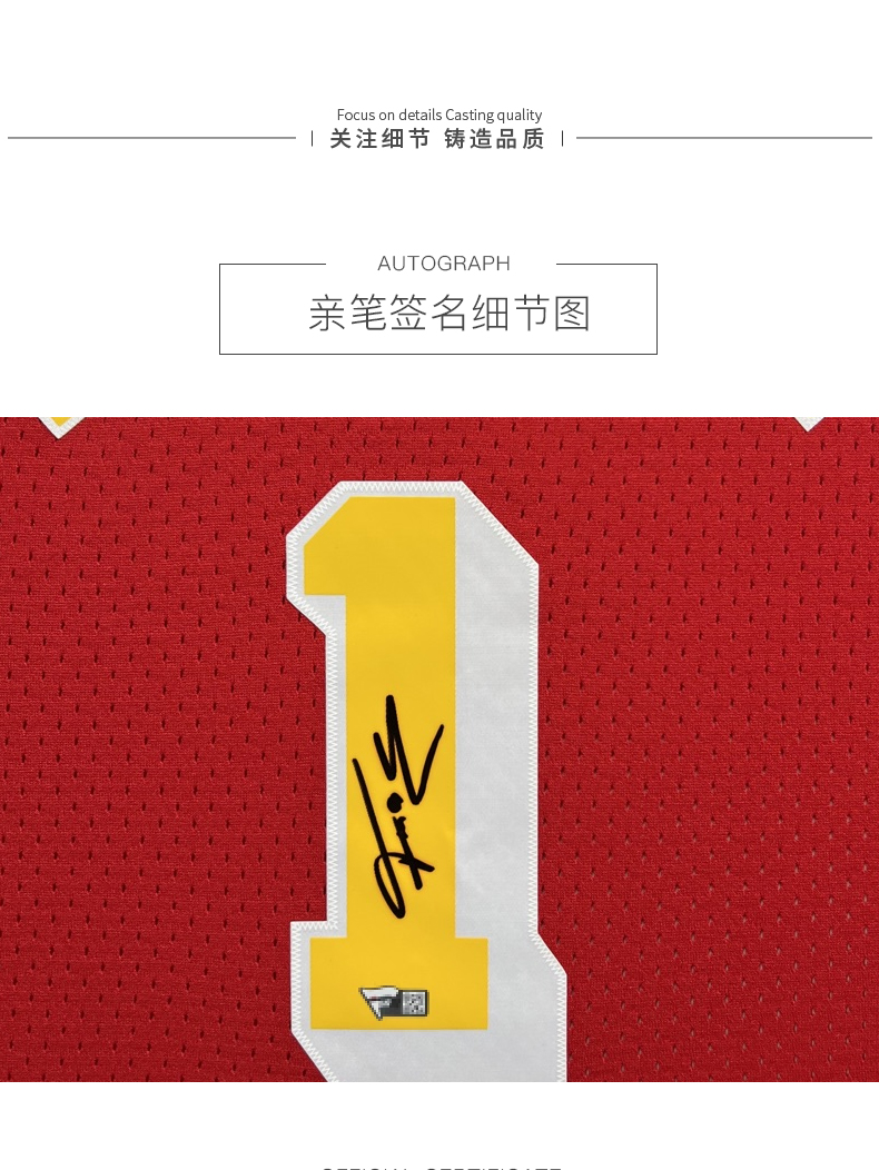 收藏系列 麦迪 火箭队1号红色 亲笔签名球衣