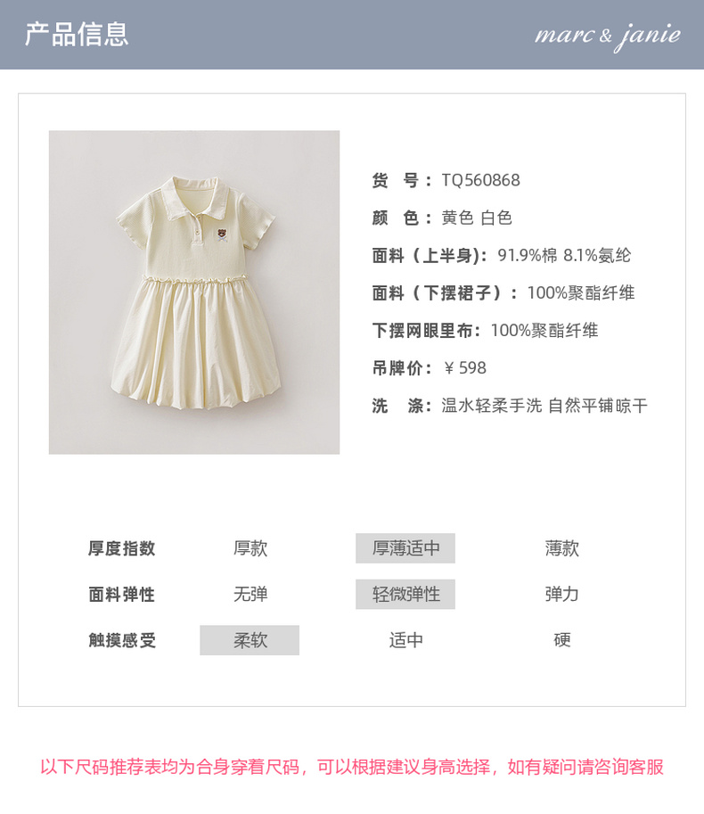 马克珍妮心愿小熊女童POLO花苞裙2026年夏装新款560868