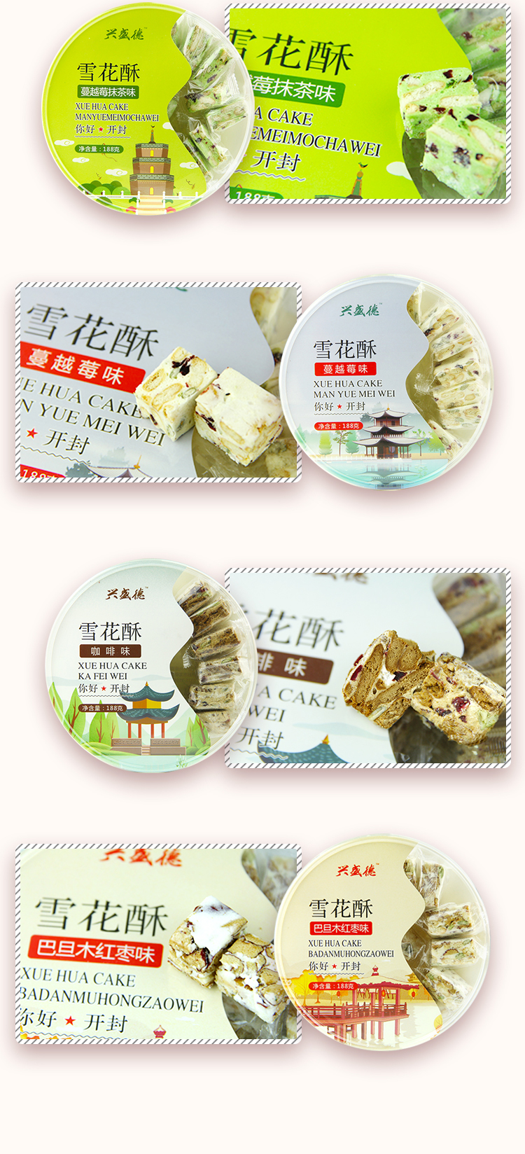 【满60-20】兴盛德糕点188g盒装雪花酥零食小吃