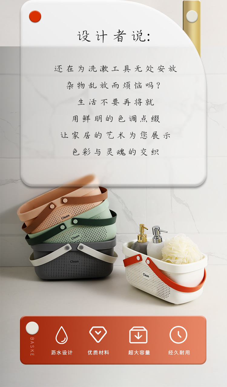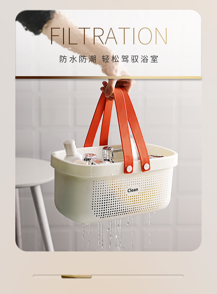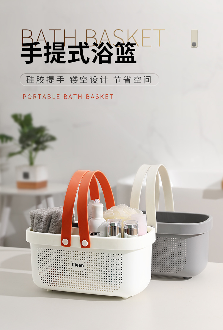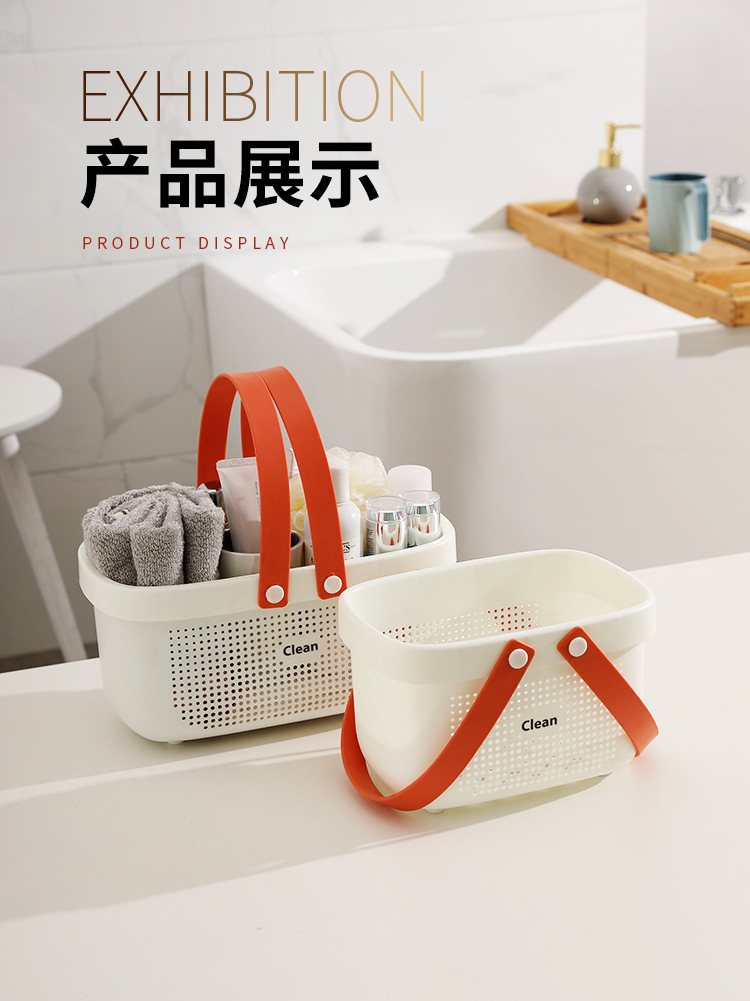 【浴室拒绝凌乱】日系简约手提浴篮,硅胶提手镂空沥水设计,收纳洗发水沐浴露洗漱衣物等,防水防潮轻松整理,加厚承重强,还你一个整齐干净的环境-QQ