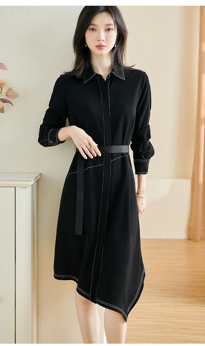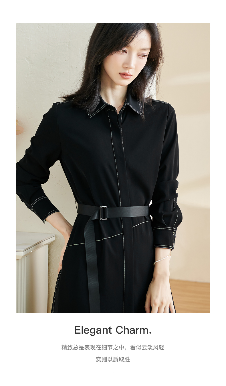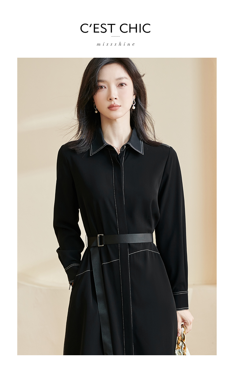 剩S/M/L/XL 米思阳2026春季新款通勤时尚设计感连衣裙系带撞色长袖裙子女2590