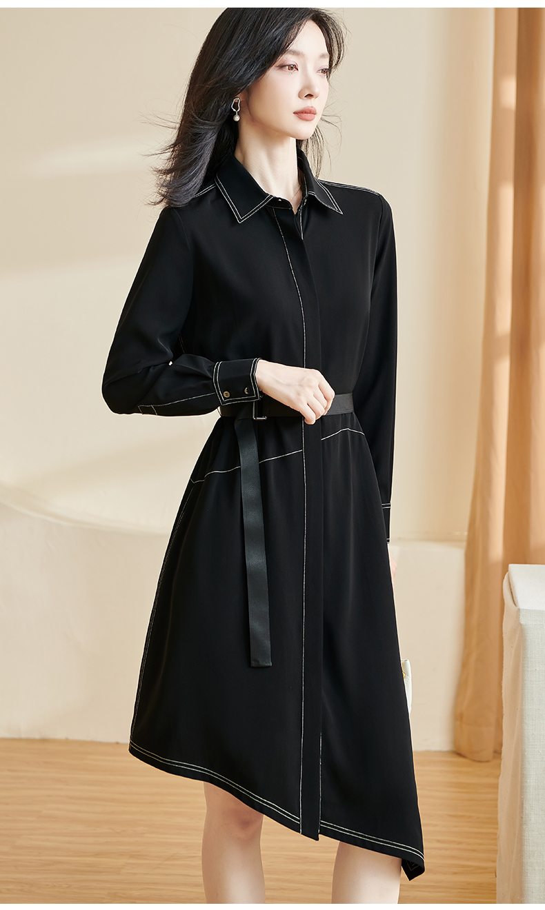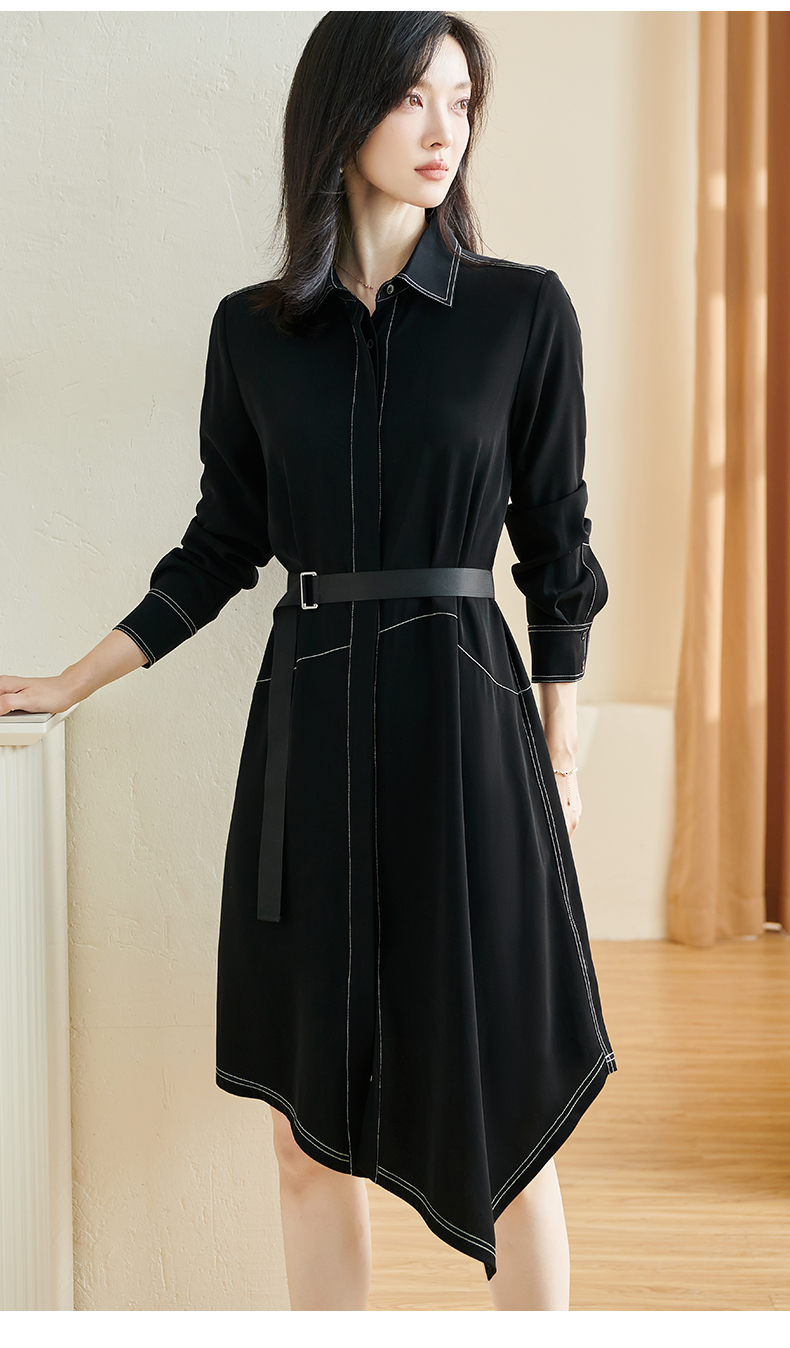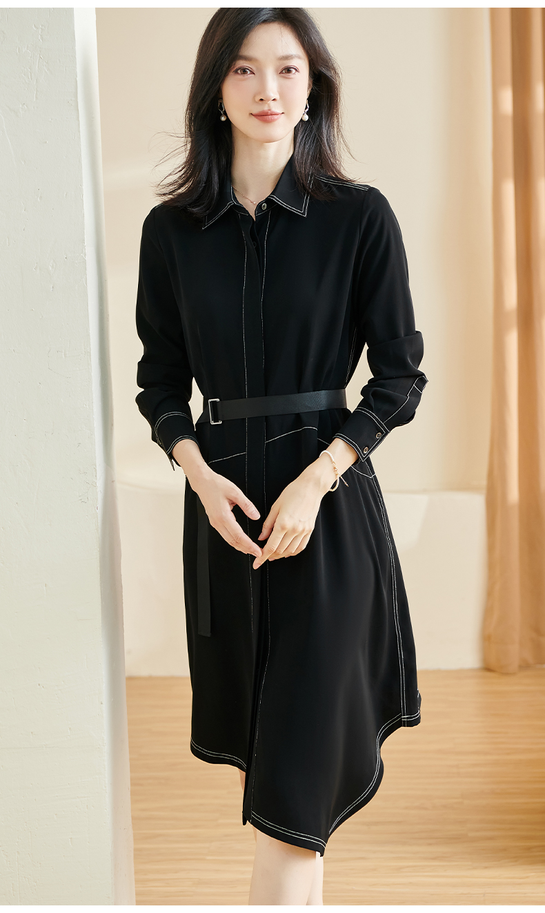 剩S/M/L/XL 米思阳2026春季新款通勤时尚设计感连衣裙系带撞色长袖裙子女2590