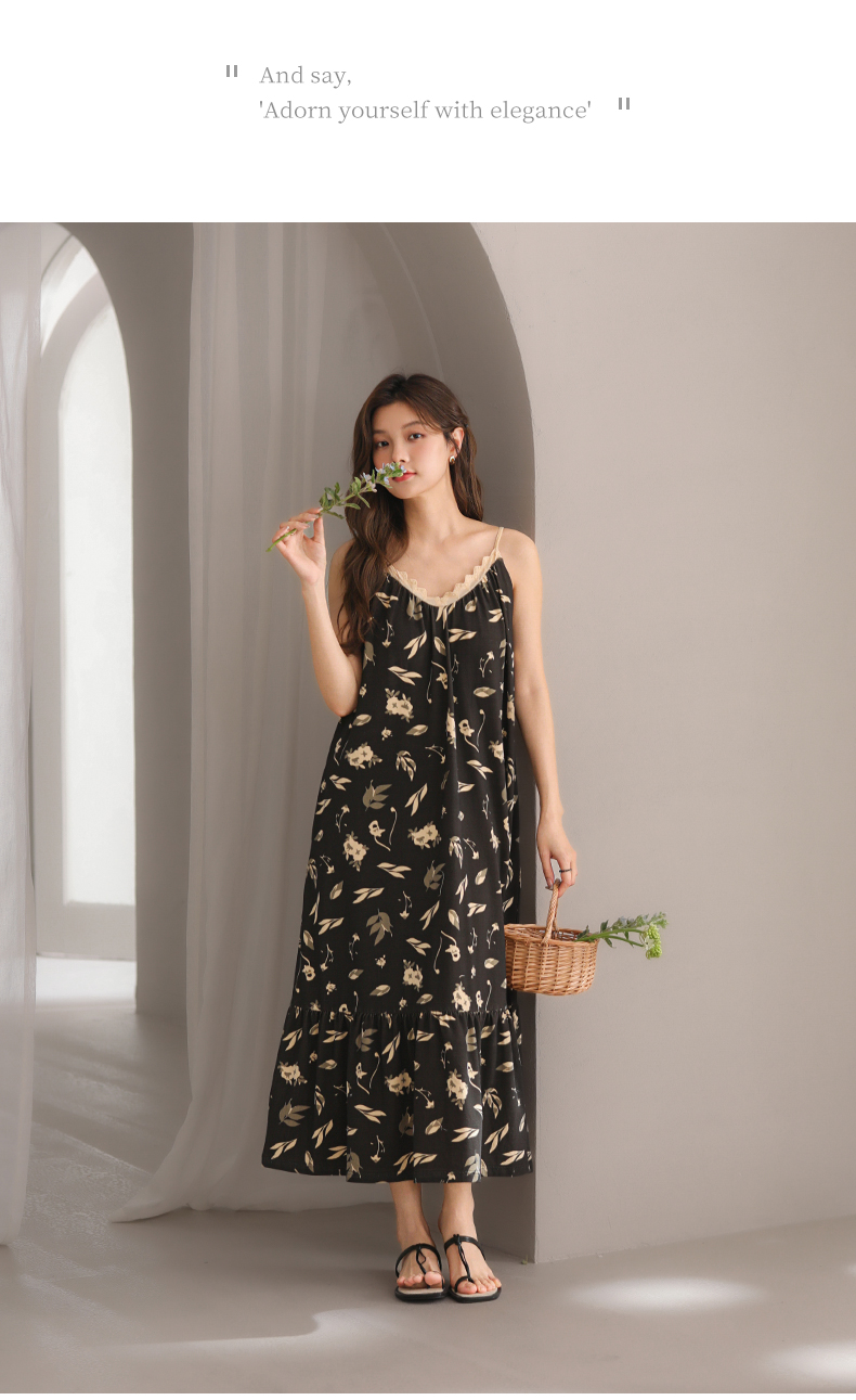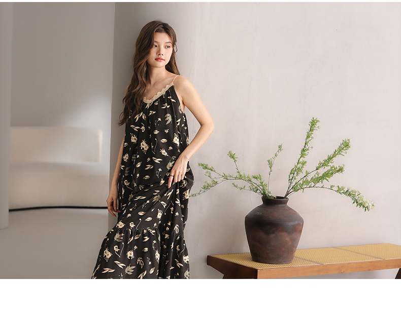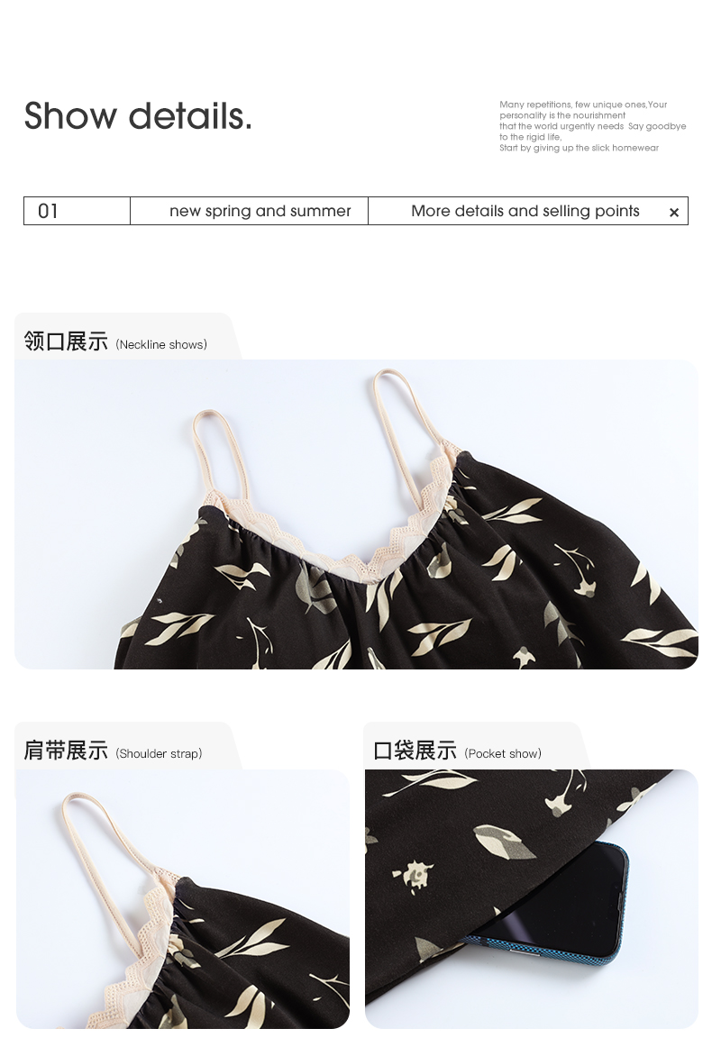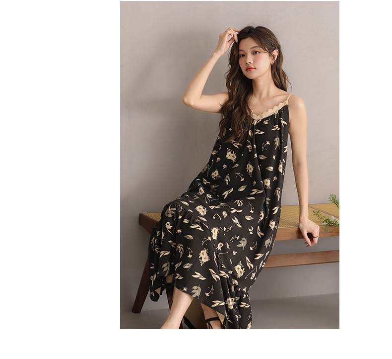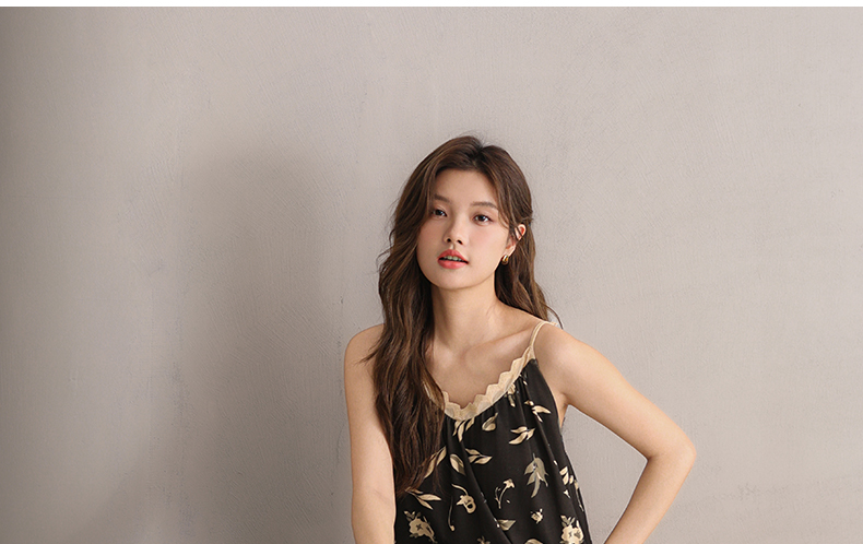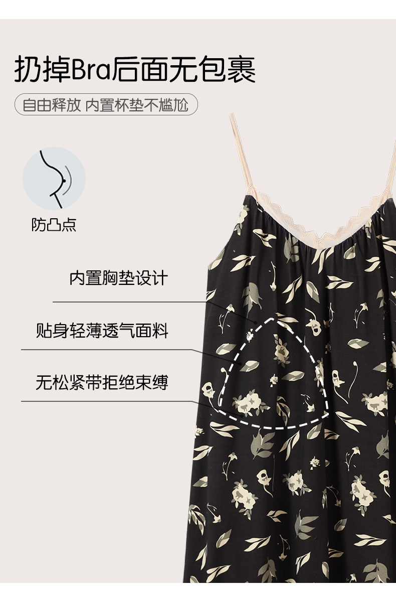 可人儿小众设计新款奥力绵女士睡衣夏季吊带少女带胸垫可外穿睡裙