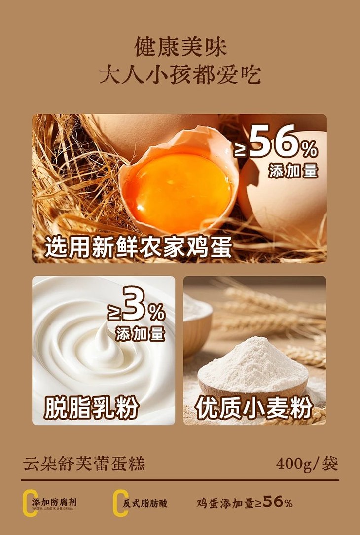 【梦仲瑶云朵舒芙蕾蛋糕400g*2袋】轻轻咬一口,空气感在舌尖融化~蓬松、绵软、duang duang的触感,治愈所有不开心WD