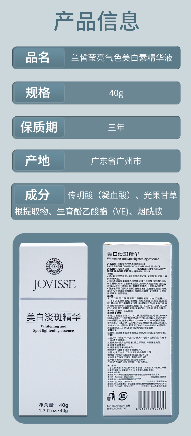 JOVISSE/洁薇丝兰皙莹亮气色美白素精华液*3