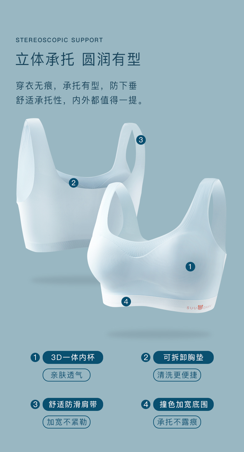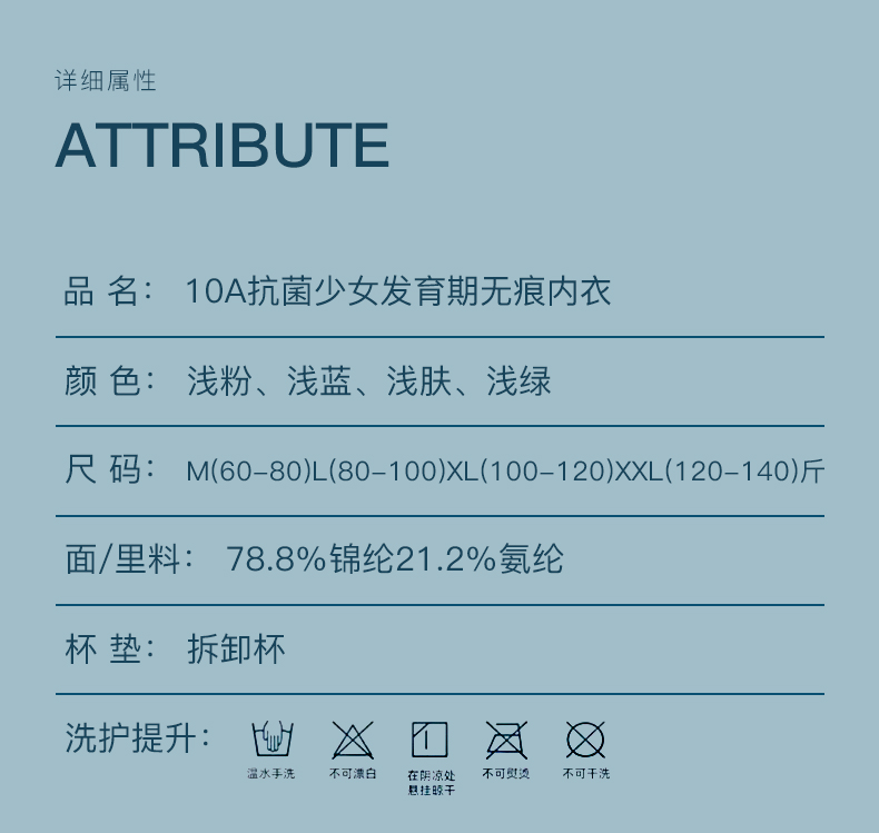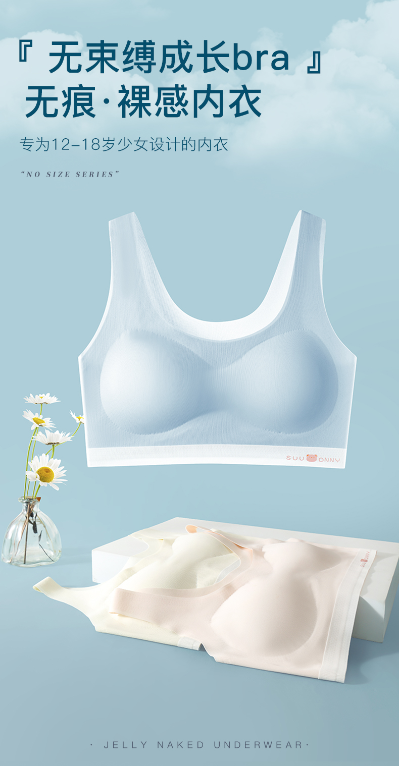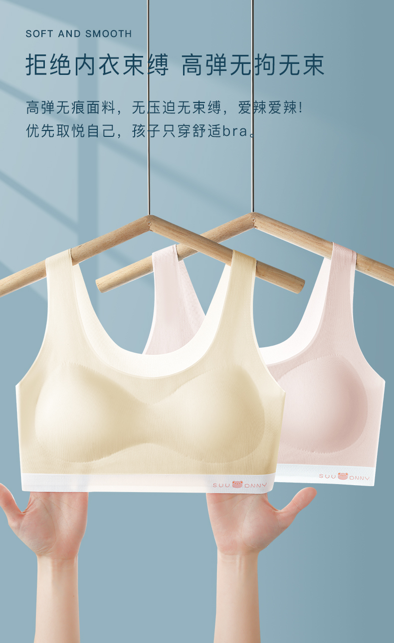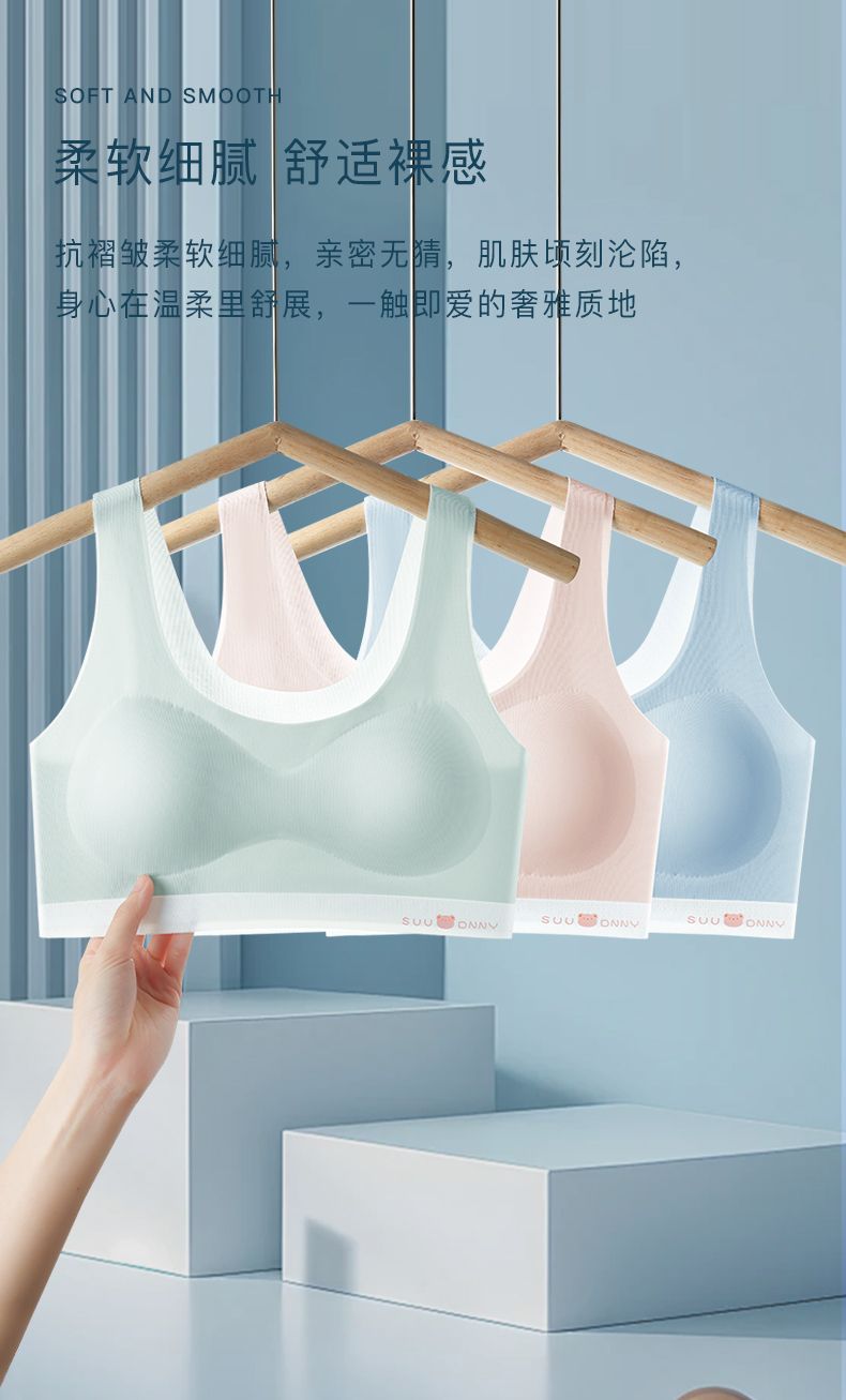 「AILISCOCO10A抗菌发育期无痕内衣」立体版型贴身舒适 零感无痕自然垂顺 为舒适而生不勒 不卷 不透 无束缚成长bra